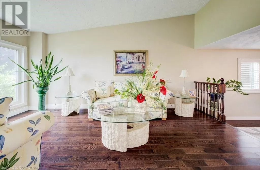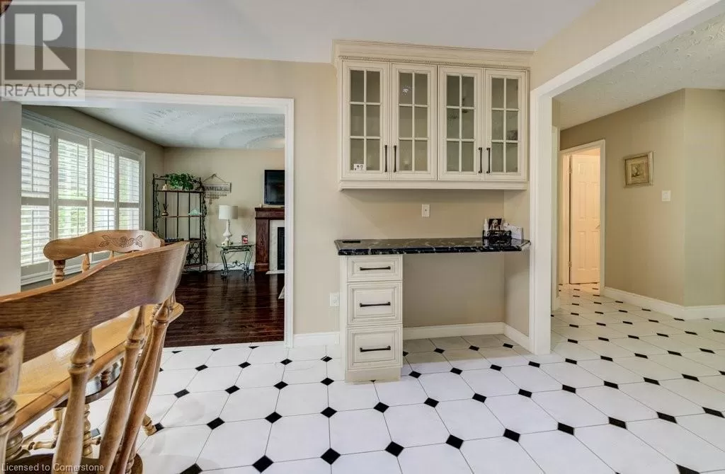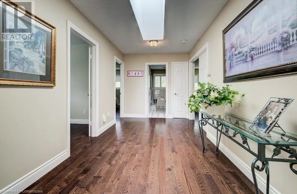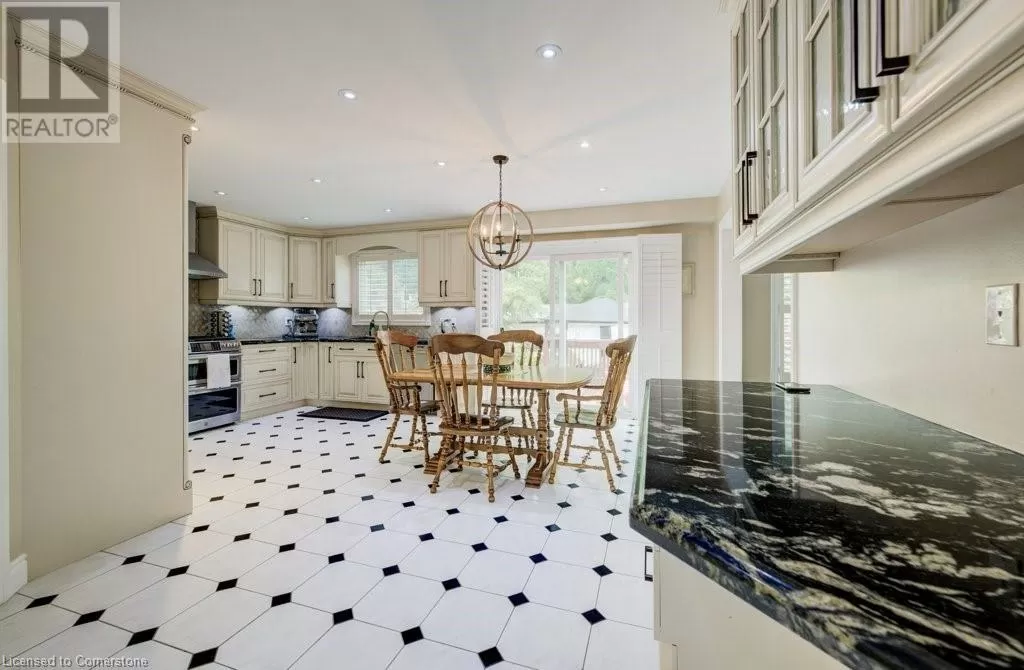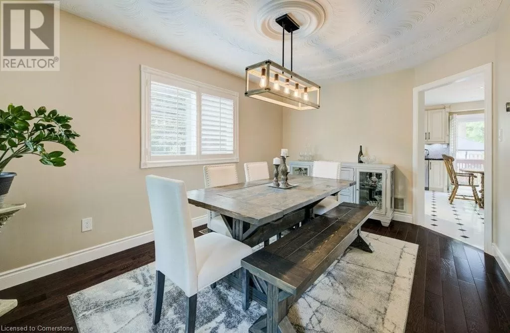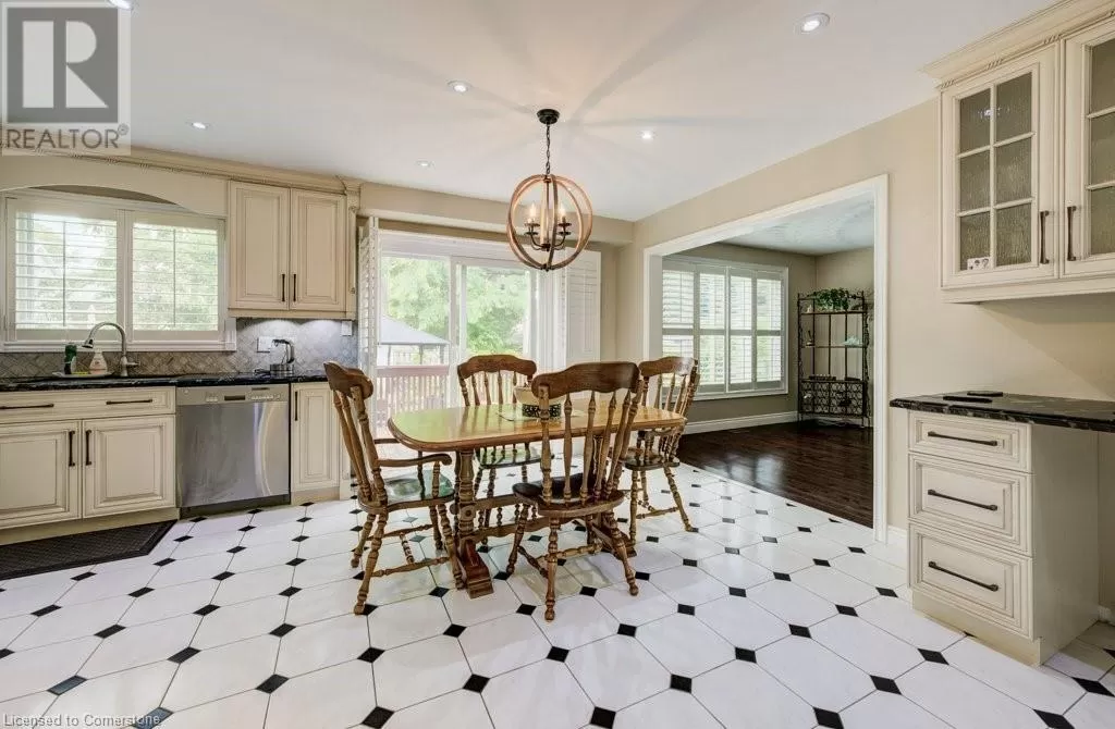 Plains Road to Grand View Ave. Welcome to 1056 Plains View Avenue â Elegance, Comfort & Nature in the Heart of Burlington! Tucked away on a quiet, tree-lined street just steps from the Royal Botanical Gardens, Burlington Bay, and some of the cityâs most scenic nature trails, this stunning 3 +2-bedroom, 4-bathroom home is a perfect blend of sophistication and serenity. As you arrive, you're greeted by a beautifully landscaped front yard and timeless brick exterior. Step inside to a grand double-door entrance and be wowed by the sweeping hardwood staircase and sun-filled foyer with soaring ceilings. The elegant main floor features multiple spacious living areas, ideal for both entertaining and everyday family life. The formal dining room boasts character with custom ceiling details and flows seamlessly into a chef-inspired kitchenâcomplete with granite countertops, premium appliances, classic cabinetry, and a stylish tile backsplash. Upstairs, you'll find 3 well-appointed bedrooms, including a primary suite with ensuite bath and ample closet space. The fully finished lower level offers versatile bonus space with a cozy fireplace, wet bar, office, and additional living areaâideal for guests, teens, or a media room. Step out back to your very own backyard retreatâa private, garden-loverâs paradise with a patio, gazebo, mature trees, and tranquil pond feature. Whether hosting summer gatherings or enjoying your morning coffee under the canopy of trees, this space is pure magic. (id:27476)