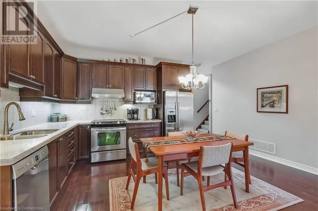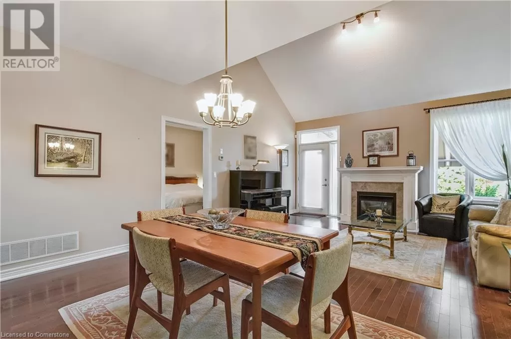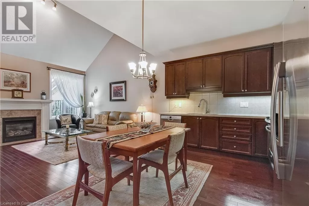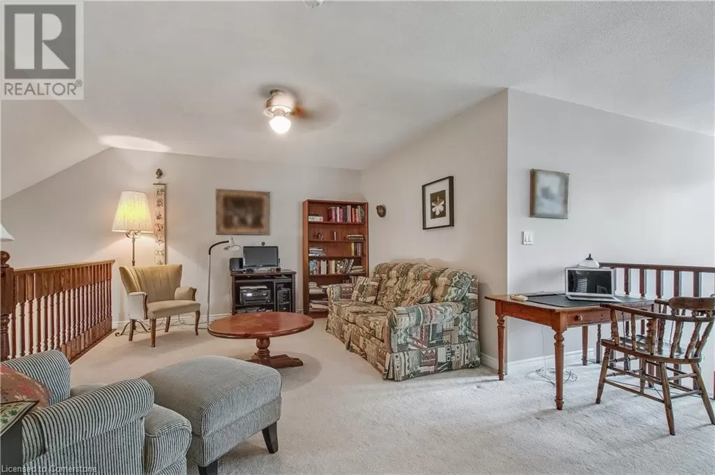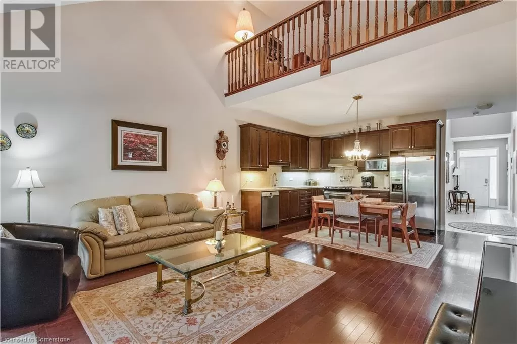 Upper Middle Road to Itabashi Way Highly sought after Bungaloft in the Village of Brantwell, Tansley Woods. The main floor features open concept including living room with fireplace. Is perfect for entertaining your family and guests. Stainless Steel appliances. The living room boasts hardwood floors and access to a very private backyard. Patio has a retractable awning. The main floor also has a primary bedroom with ensuite and walk-in closets. Laundry is on the main level with a secondary bedroom, den or office. Second floor has private bedroom and bath and spacious family room. Unfinished lower level provides storage or workshop. Beautiful property with no rear neighbors for privacy. Book your showings for this wonderful property. (id:27476)