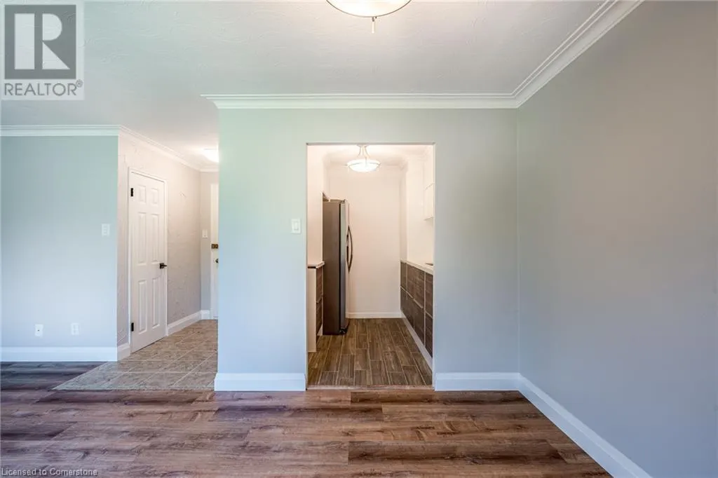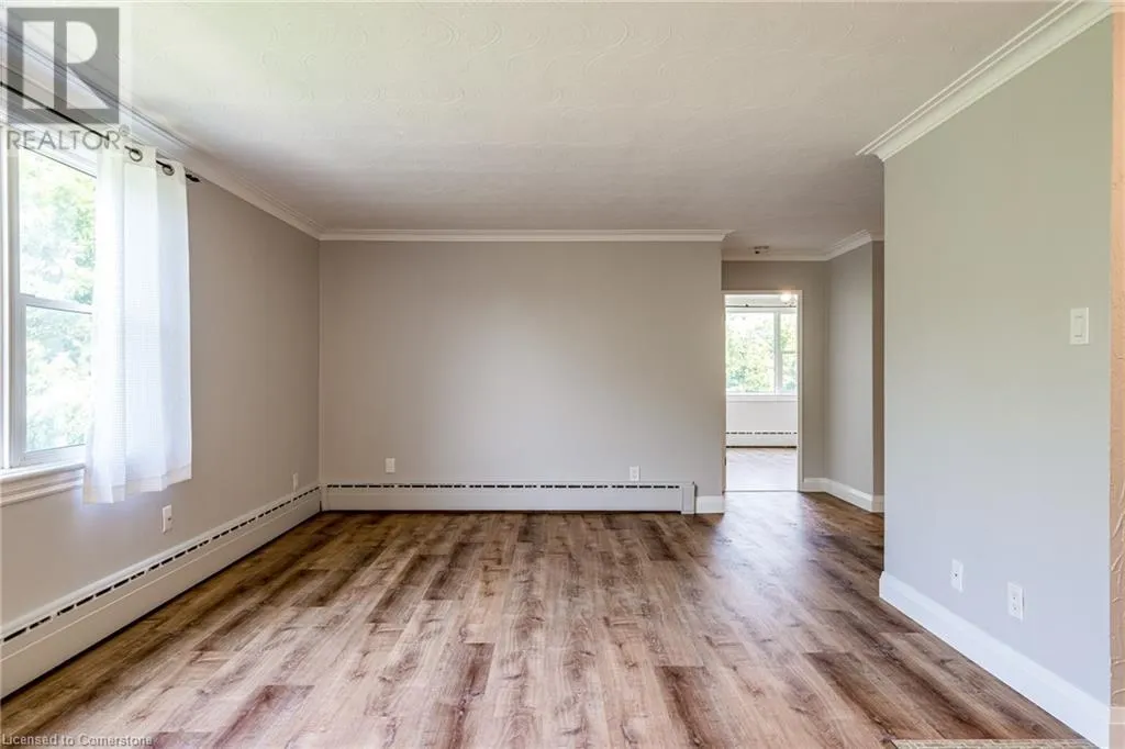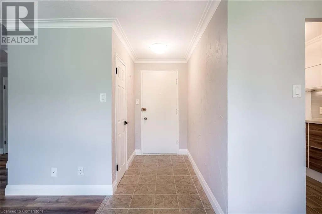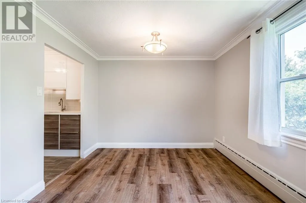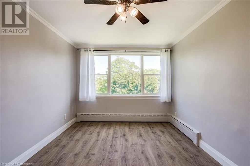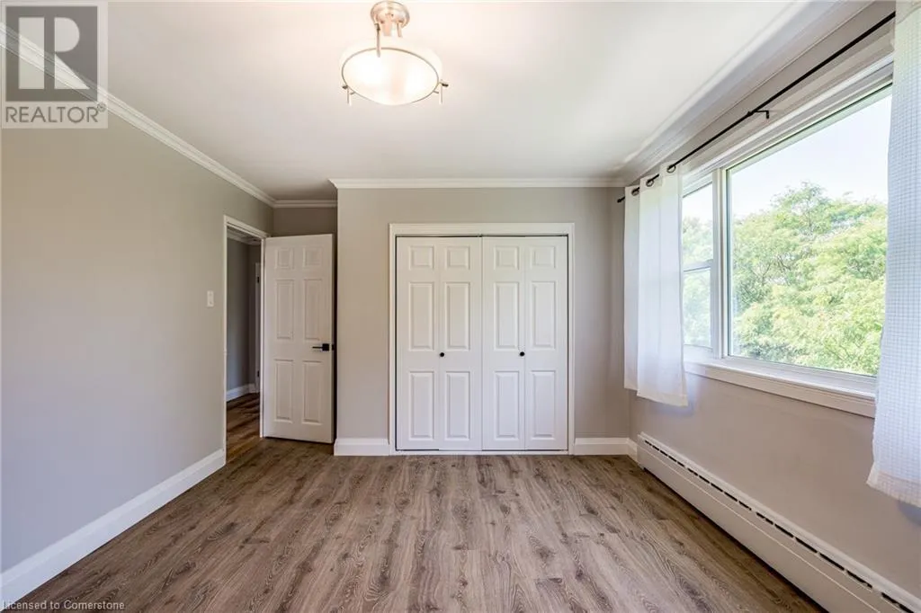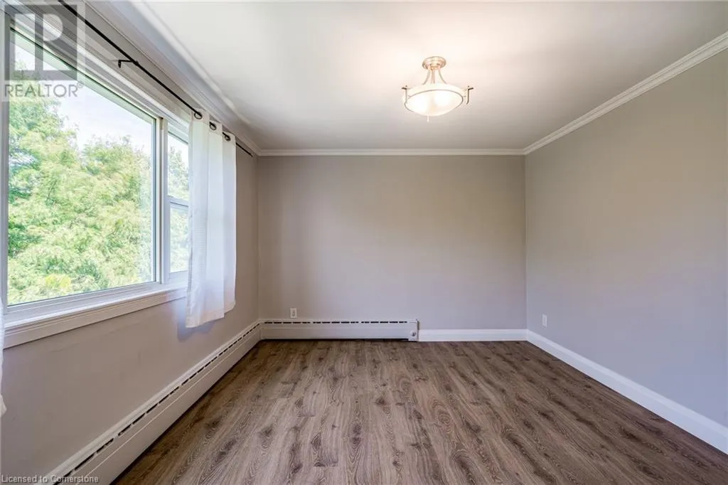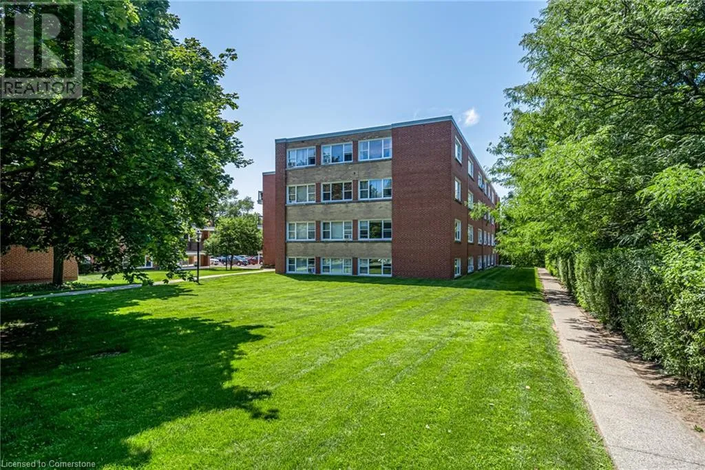 Brant St to Blairholm Ave to Courtland Dr You'll love this beautifully renovated 2-bedroom, 1-bathroom corner condo unit in Burlington's highly sought-after downtown core! Step inside and discover a bright, inviting living space with large windows that let the natural sunlight flow in. The updated kitchen provides stainless steel appliances and lots of cabinet space - plus, benefit from the multiple storage closets within the unit as well. The bedrooms are a great size and have large windows overlooking peaceful green space. Outside, you'll find a dedicated above-ground parking space conveniently located close to the building's entrance door, as well as lush green common areas perfect for relaxing in nature. Living here allows you to embrace the best of Burlington! You're within walking distance to parks, shopping, schools, and the stunning waterfront. Enjoy strolls along Spencer Smith Park while taking in gorgeous Lake Ontario views. The downtown core also offers a rich cultural scene with the Art Gallery of Burlington and the Burlington Performing Arts Centre, plus diverse restaurants and cafes. For commuters, this location offers excellent connectivity since you are just a short walk to Burlington Transit stops, with easy connections to GO Transit stations, plus major highways are also minutes away. This home provides you with the opportunity for an active and fun lifestyle in the heart of Burlington's vibrant downtown. (id:27476)