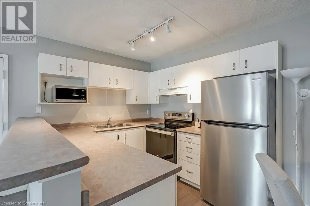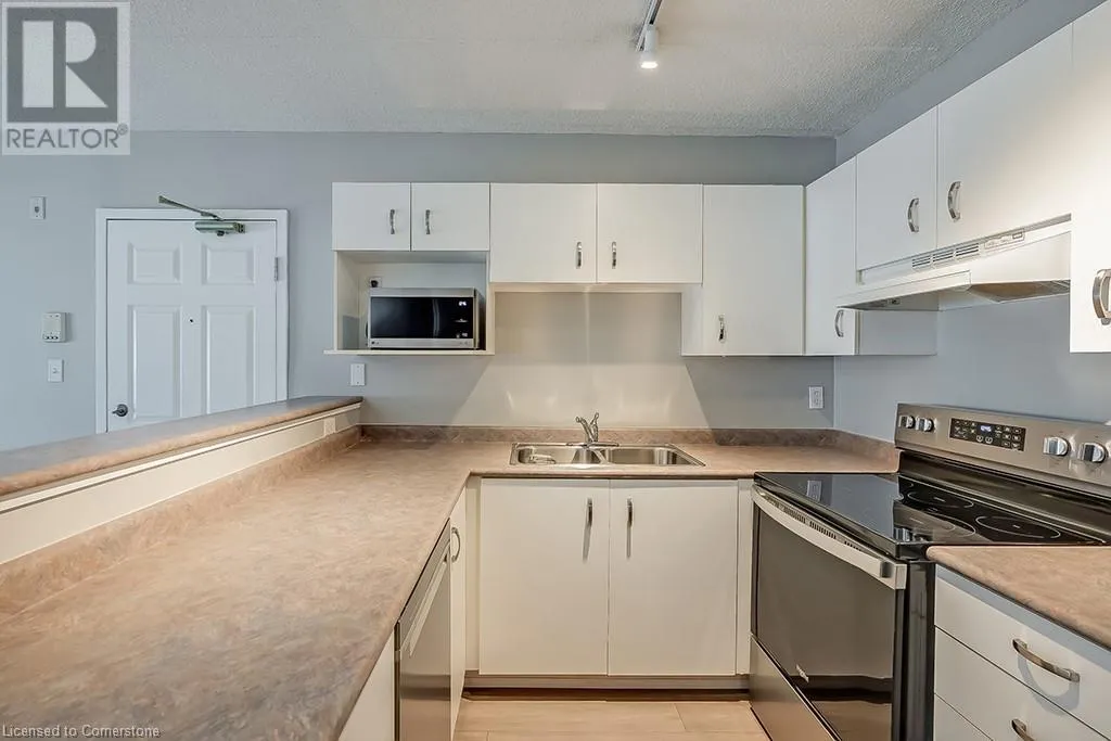 Walkers line & Kilmer Dr Condo Living at its best! Beautiful one bedroom one bathroom ground floor condo with an underground parking space, storage locker and large patio! Spacious open concept floor plan with neutral vinyl flooring throughout. The kitchen features white cabinetry, newer stainless-steel appliances and is open to the dining and living rooms. Enjoy the spacious living room leading to the patio, while relaxing or entertaining family and friends! The spacious primary bedroom features ample closet space and bright windows. Laundry is located in-suite for convenience. Fantastic location- close to restaurants, shopping, highways and all amenities! (id:27476)