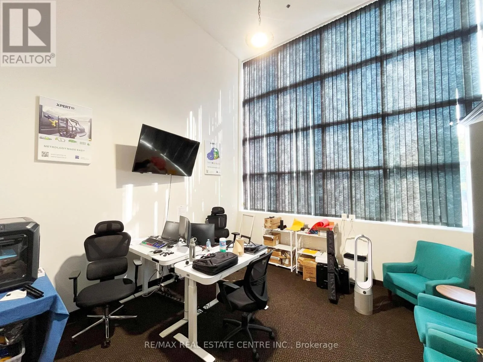 Cross Streets: Appleby Line. ** Directions: S service rd & Appleby Line. Excellent opportunity to own a highly functional and versatile industrial condo unit located in the well-known Twin Towers Commercial Complex, in one of Burlington's most desirable business corridors.Spanning approximately 2,645 square feet, this professionally maintained unit offers the ideal blend of warehouse functionality and office flexibility, making it suitable for a wide range of business operations.The unit features a 19-foot ceiling height and a 14' high x 12' wide drive-in door, perfect for warehousing, shipping, logistics, or light industrial uses. The main floor includes a welcoming lobby, a washroom, and 6 versatile rooms, one of which is configured as a boardroom, making the space ideal for administrative, client-facing, or collaborative work environments.The 2nd level includes a mezzanine with a lobby area, private washroom, and a magazine/storage room, offering extra operational and organizational flexibility.Included with the unit are 2 designated parking spaces, plus ample shared visitor parking, providing convenience for staff, clients, and guests in a clean and professionally managed complex.Zoned BC1, this property permits a wide range of uses including warehousing, professional offices, motor vehicle repair garage, training or education centers, research and development, furniture and fixture production, banquet and catering services, and other light industrial or commercial applications. This makes it a smart option for both investors and owner-users.Located just moments from the QEW, Appleby Line, and major transit routes, the unit offers excellent connectivity and is surrounded by a strong mix of established businesses. A rare opportunity to own in a secure, high-demand commercial-industrial hub. Once it's gone, it cannot be replicated a rare opportunity you don't want to miss (id:27476)