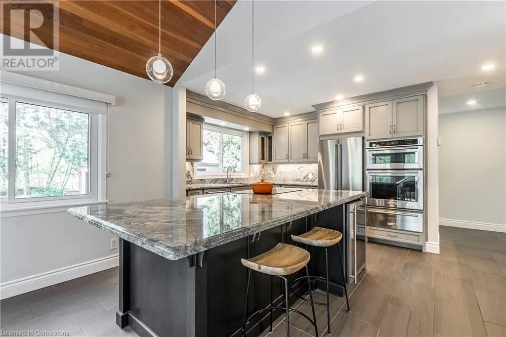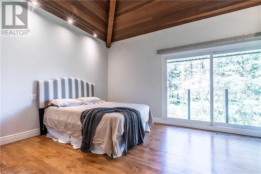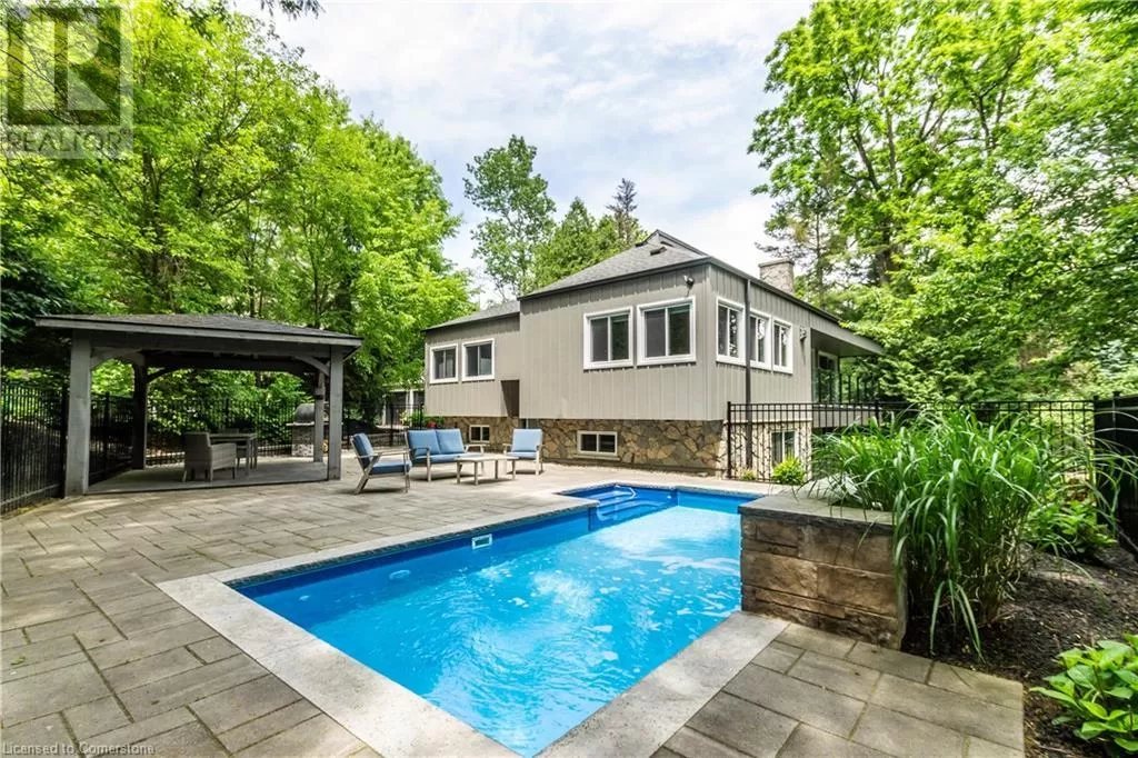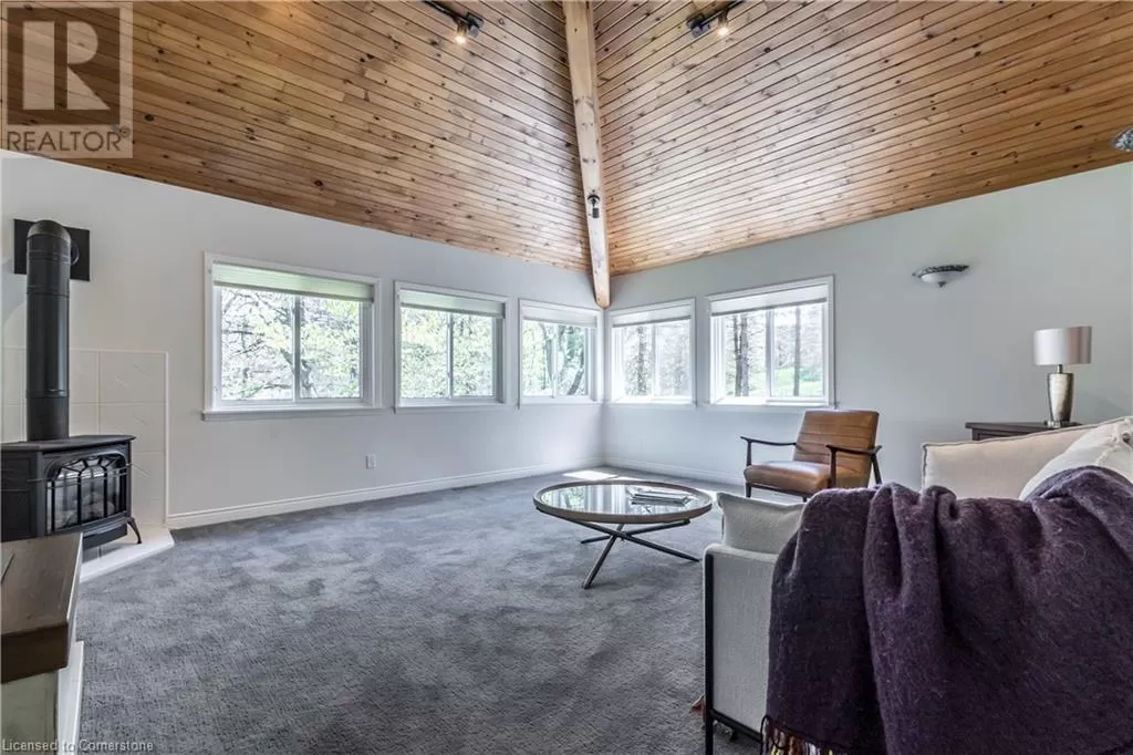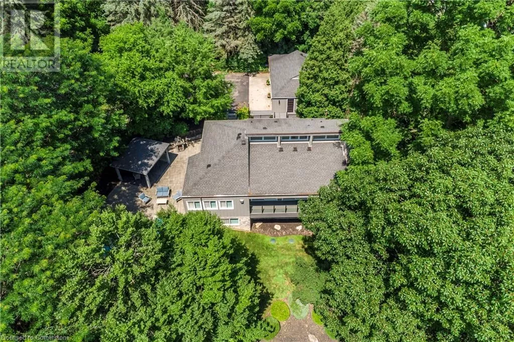Cedar Springs Road to McNiven (south of Derry) Welcome to this stunning architect-designed home nestled in the enchanting village of Kilbride, where modern elegance meets the tranquility of nature. This unique property is a true sanctuary, offering an exceptional blend of comfort, style, and functionality, making it the perfect retreat for discerning buyers. With an abundance of windows throughout the home, the connection to the outdoors is palpable. Experience the beauty of the forested landscape, creating a peaceful backdrop for everyday living. The thoughtful design allows natural light to flood every corner, enhancing the inviting atmosphere. This home features a distinctive layout that sets it apart from the ordinary. The vaulted ceilings in the main living areas amplify the sense of space and grandeur, while the design promotes an effortless flow between the kitchen, dining, & living spaces. The thoughtfully designed main floor boasts a primary bedroom suite complete with an ensuite bathroom, ensuring privacy & comfort. Enjoy the ease of single-level living with the added bonus of a second primary bedroom on the lower level, which features a walkout to the picturesque yard. Culinary enthusiasts will love the oversized kitchen, meticulously renovated in 2017. Equipped with modern appliances, ample counter space, & an abundance of cabinetry, this kitchen is perfect for cooking up culinary masterpieces or entertaining guests. Dive into relaxation with your very own saltwater pool, surrounded by lush greenery. Enjoy leisurely afternoons soaking in the sun or hosting memorable gatherings with family and friends. The serene ambiance and natural beauty create a private paradise right in your backyard. The property includes a spacious three-bay garage, providing plenty of room for vehicles, recreational equipment, and additional storage. This is perfect for hobbyists or those needing extra space for their collections. Surrounded by a stunning forested property, this home is a haven for nature lovers (id:27476)