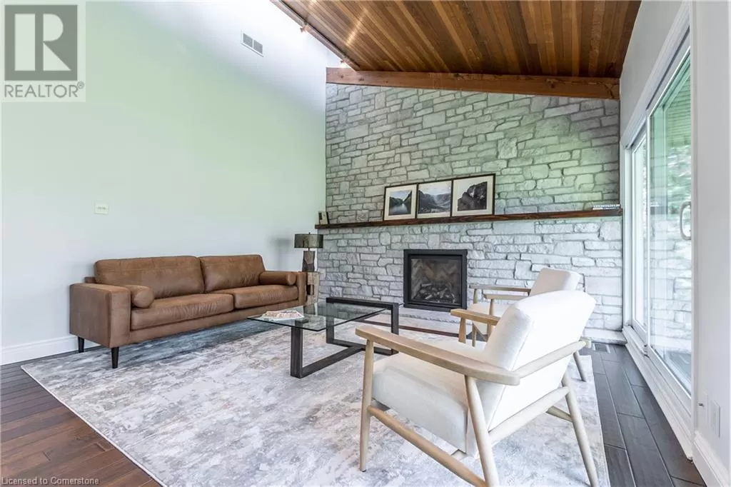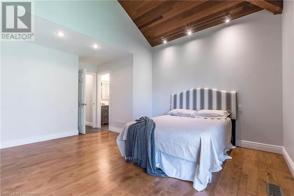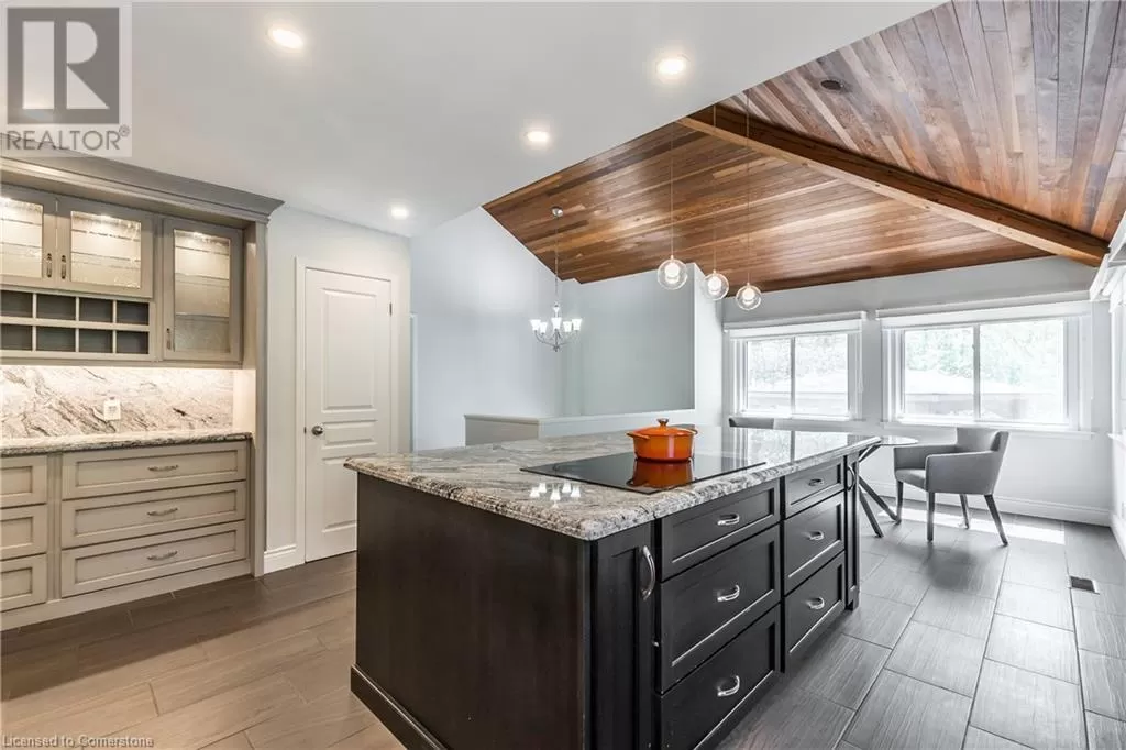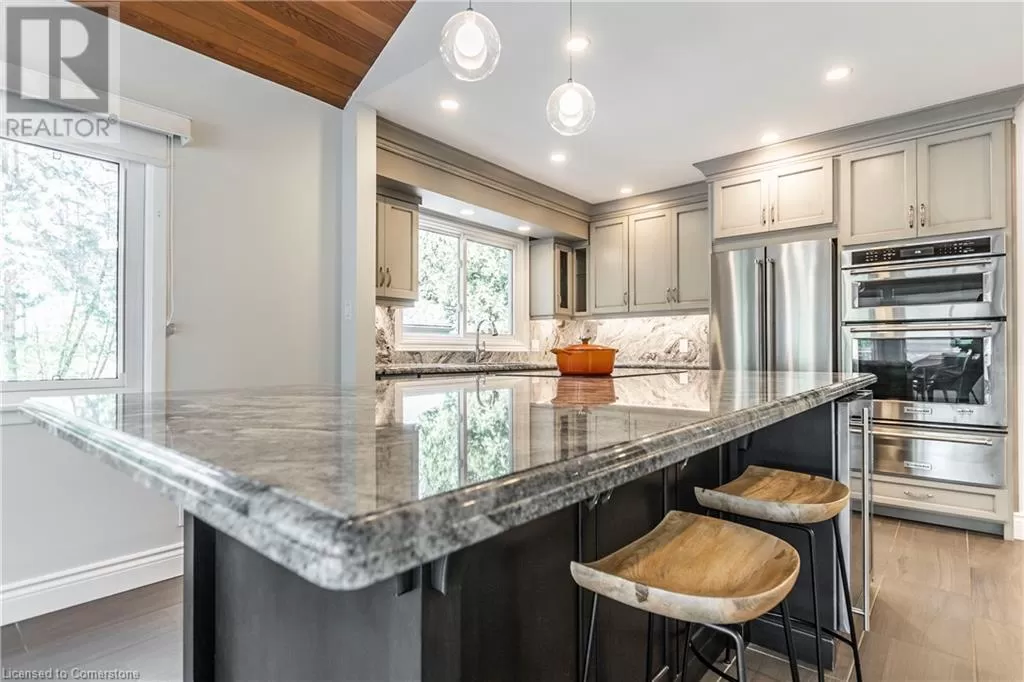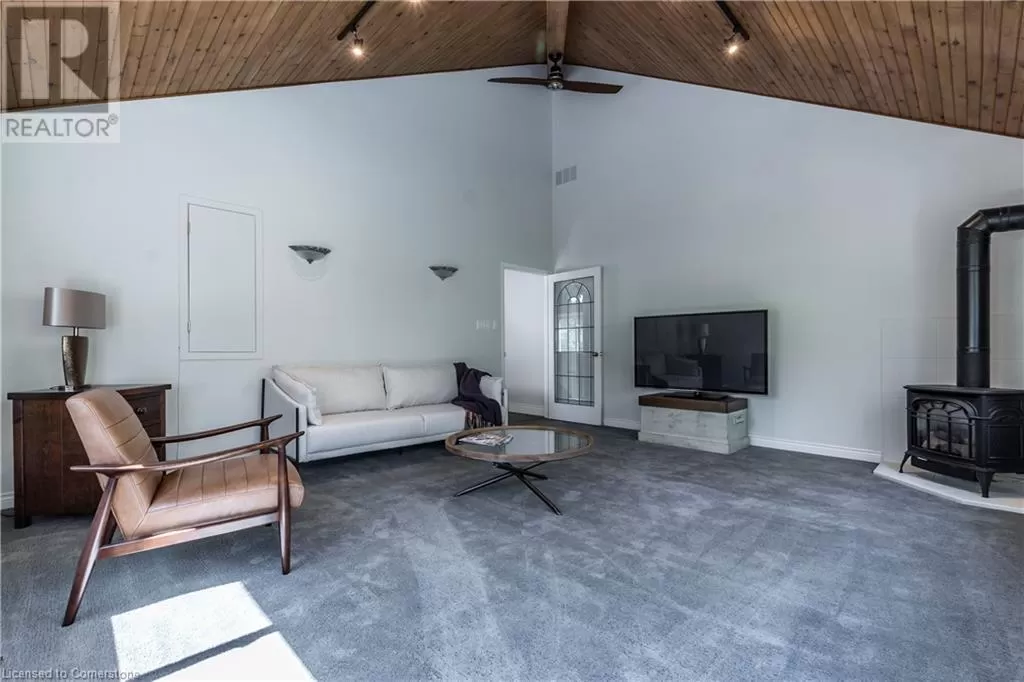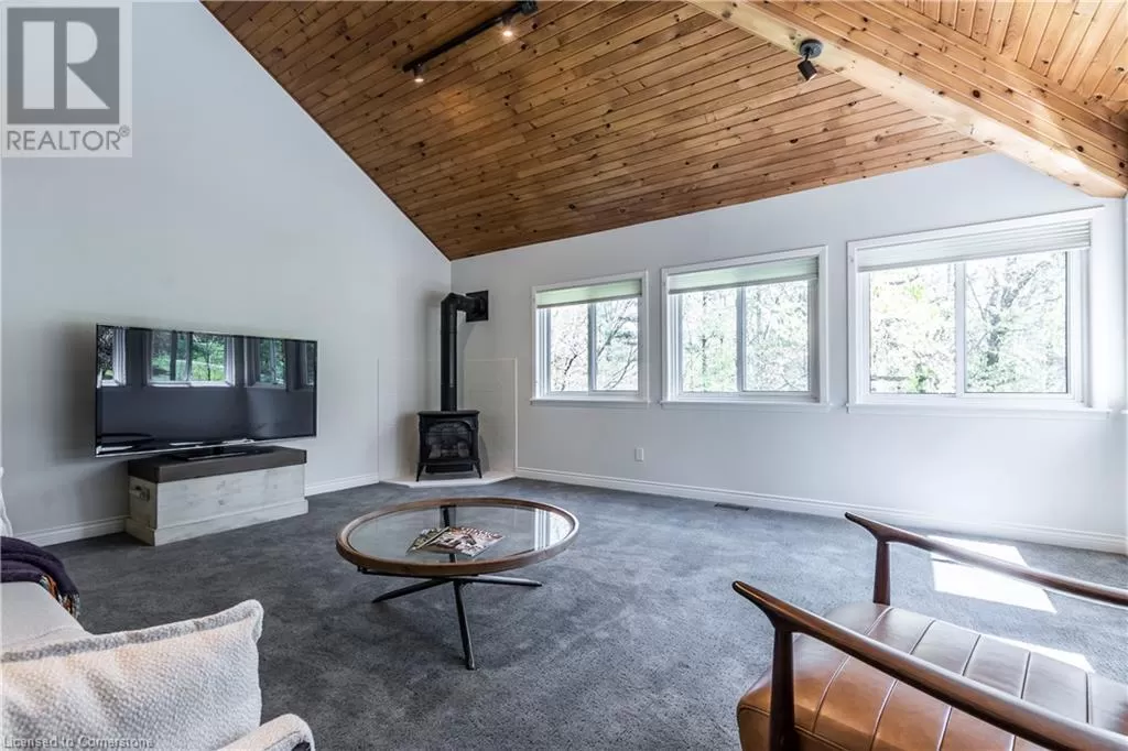 Cedar Springs Road to McNiven (south of Derry) Welcome to this stunning architect-designed home nestled in the enchanting village of Kilbride, where modern elegance meets the tranquility of nature. This unique property is a true sanctuary, offering an exceptional blend of comfort, style, and functionality, making it the perfect retreat for discerning buyers. With an abundance of windows throughout the home, the connection to the outdoors is palpable. Experience the beauty of the forested landscape, creating a peaceful backdrop for everyday living. The thoughtful design allows natural light to flood every corner, enhancing the inviting atmosphere. This home features a distinctive layout that sets it apart from the ordinary. The vaulted ceilings in the main living areas amplify the sense of space and grandeur, while the design promotes an effortless flow between the kitchen, dining, & living spaces. The thoughtfully designed main floor boasts a primary bedroom suite complete with an ensuite bathroom, ensuring privacy & comfort. Enjoy the ease of single-level living with the added bonus of a second primary bedroom on the lower level, which features a walkout to the picturesque yard. Culinary enthusiasts will love the oversized kitchen, meticulously renovated in 2017. Equipped with modern appliances, ample counter space, & an abundance of cabinetry, this kitchen is perfect for cooking up culinary masterpieces or entertaining guests. Dive into relaxation with your very own saltwater pool, surrounded by lush greenery. Enjoy leisurely afternoons soaking in the sun or hosting memorable gatherings with family and friends. The serene ambiance and natural beauty create a private paradise right in your backyard. The property includes a spacious three-bay garage, providing plenty of room for vehicles, recreational equipment, and additional storage. This is perfect for hobbyists or those needing extra space for their collections. Surrounded by a stunning forested property, this home is a haven for nature lovers (id:27476)