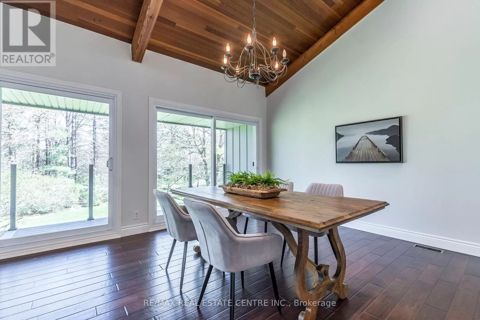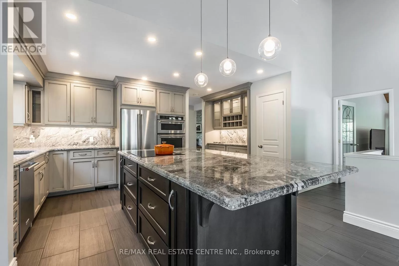Cross Streets: Cedar Springs Road. ** Directions: Cedar Springs Road north to McNiven Turn east onto McNiven. Welcome to this stunning architect-designed home nestled in the enchanting village of Kilbride, where modern elegance meets the tranquility of nature. This unique property is a true sanctuary, offering an exceptional blend of comfort, style, and functionality, making it the perfect retreat for discerning buyers. With an abundance of windows throughout the home, the connection to the outdoors is palpable. Experience the beauty of the forested landscape, creating a peaceful backdrop for everyday living. The thoughtful design allows natural light to flood every corner, enhancing the inviting atmosphere. This home features a distinctive layout that sets it apart from the ordinary. The vaulted ceilings in the main living areas amplify the sense of space and grandeur, while the design promotes an effortless flow between the kitchen, dining, & living spaces. The thoughtfully designed main floor boasts a primary bedroom suite complete with an ensuite bathroom, ensuring privacy & comfort. Enjoy the ease of single-level living with the added bonus of a second primary bedroom on the lower level, which features a walkout to the picturesque yard. Culinary enthusiasts will love the oversized kitchen, meticulously renovated in 2017. Equipped with modern appliances, ample counter space, & an abundance of cabinetry, this kitchen is perfect for cooking up culinary masterpieces or entertaining guests. Dive into relaxation with your very own saltwater pool, surrounded by lush greenery. Enjoy leisurely afternoons soaking in the sun or hosting memorable gatherings with family and friends. The serene ambiance and natural beauty create a private paradise right in your backyard. The property includes a spacious three-bay garage, providing plenty of room for vehicles, recreational equipment, and additional storage. This is perfect for hobbyists or those needing extra space for their collections. Surrounded by a stunning forested property, this home is a haven for nature lovers (id:27476)