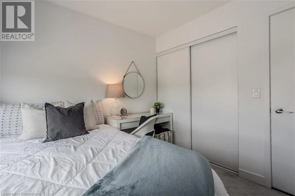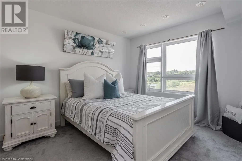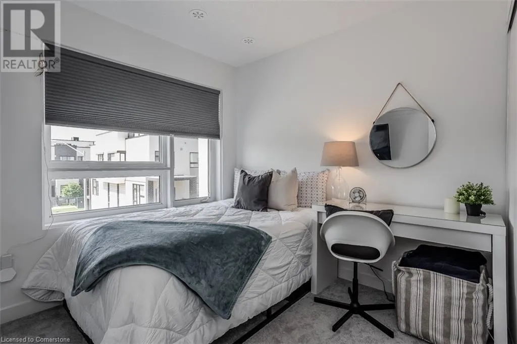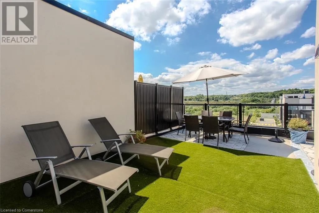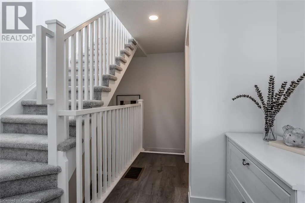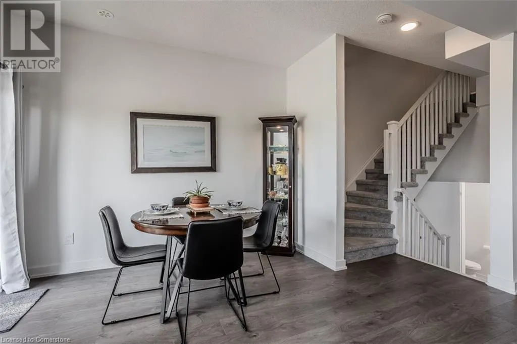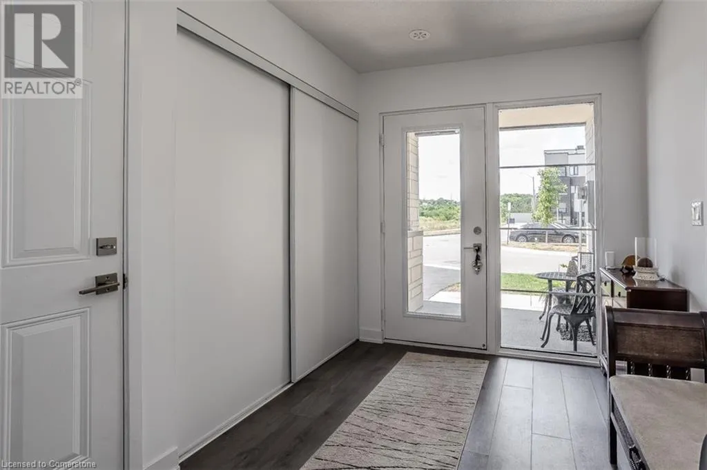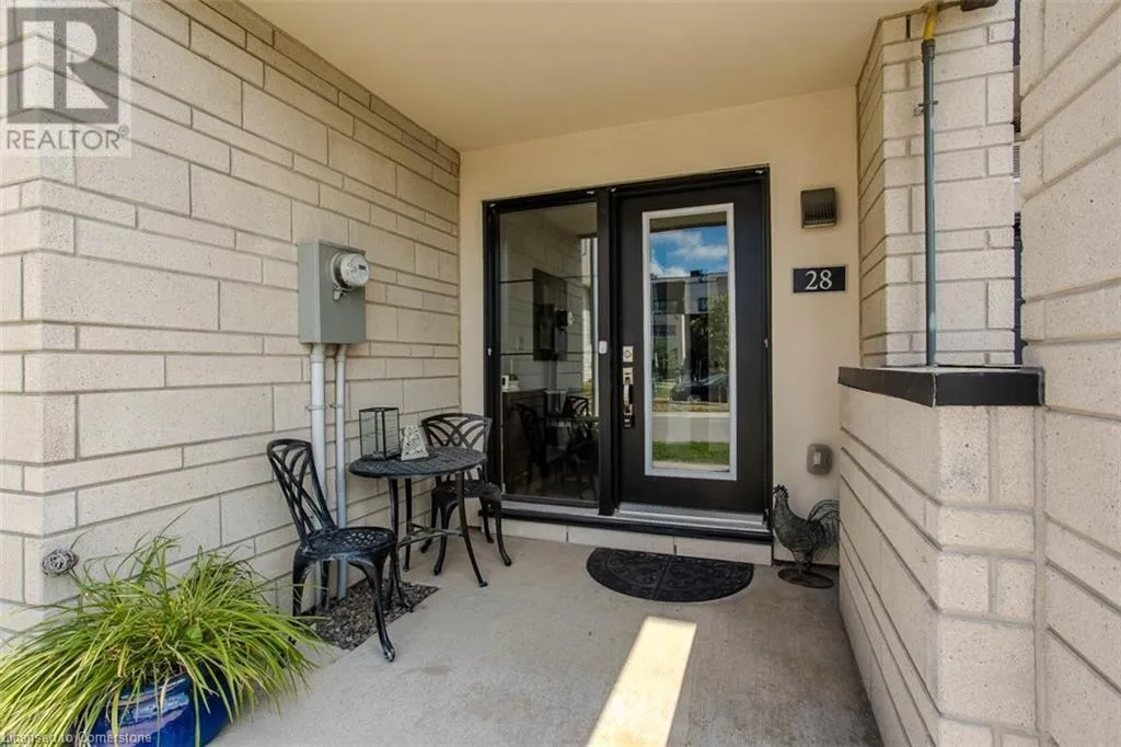 Waterdown Rd & Masonry Crt Welcome to this beautifully designed modern 3-storey townhome, perfectly located just minutes from the lake, downtown Burlington, parks, schools, and convenient transit options including the GO Station. Nestled in a quiet, family-friendly enclave, this pet-friendly home offers the ideal balance of comfort, style, and functionalityâperfect for growing families, young professionals, or anyone looking to enjoy the best of Burlington living. One of the rare highlights of this unit is the 2-car private drivewayâa unique feature that only two homes in the entire complex enjoy, providing unmatched parking convenience for your family and guests. Step into a bright and welcoming front entry with a convenient 2-piece powder room, perfect for guests. The second level showcases a seamless open-concept layout, ideal for both everyday living and entertaining. Wide plank laminate flooring flows throughout the spacious living and dining areas, where large windows and a walkout to your private balcony flood the space with natural light. At the heart of the home, the contemporary kitchen is sure to impressâfeaturing quartz countertops, stainless steel appliances, custom cabinetry, a stylish stacked tile backsplash, and a large island with breakfast bar, built-in microwave, and dishwasher. Upstairs, youâll find a bright and airy primary retreat complete with a 3-piece ensuite boasting an oversized quartz vanity, porcelain tile floors, and a sleek stacked-tile walk-in shower with a glass door. An additional well-sized bedroom and a 4-piece main bathâwith matching finishes and a tub/shower comboâoffer the perfect layout for a growing family, guests, or a home office. Top it all off with a private rooftop terrace offering pond views and a glass railingâan ideal space to relax, dine, or entertain under the open sky. Whether you're looking for your first home or a stylish, low-maintenance space for your family, this thoughtfully designed townhome checks all the boxes. (id:27476)