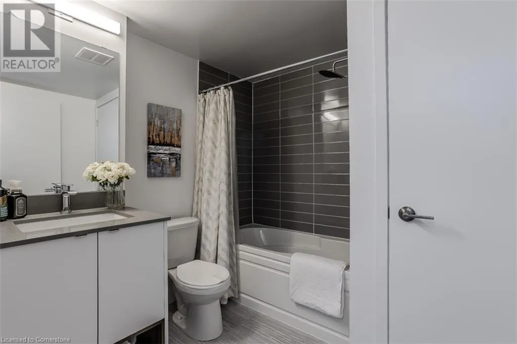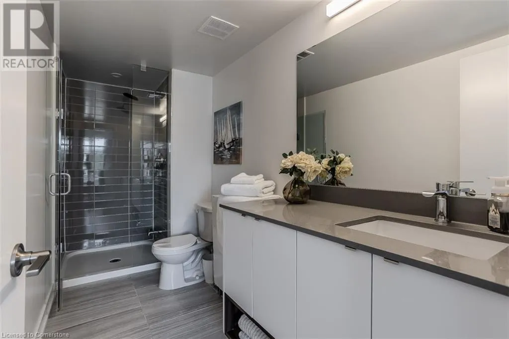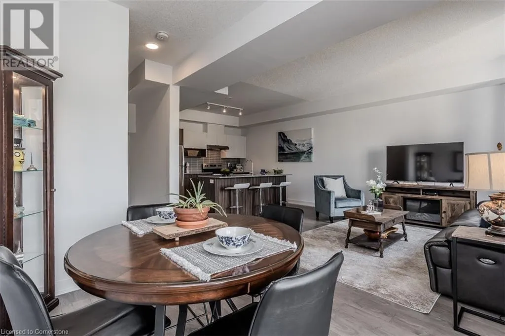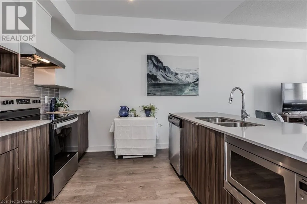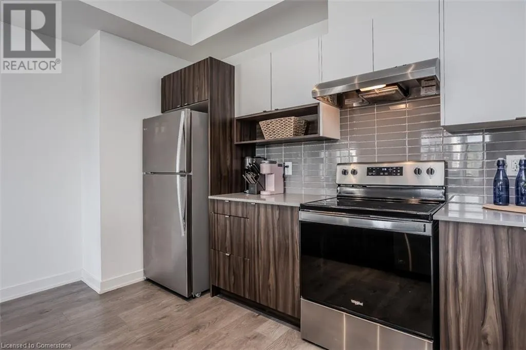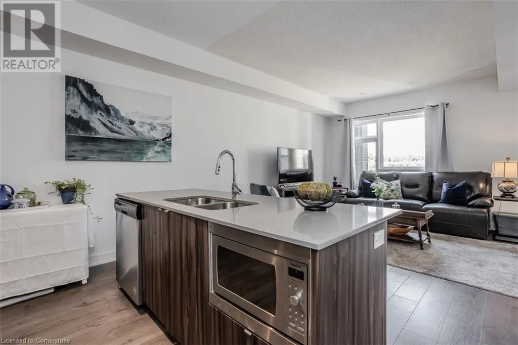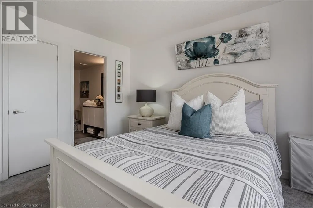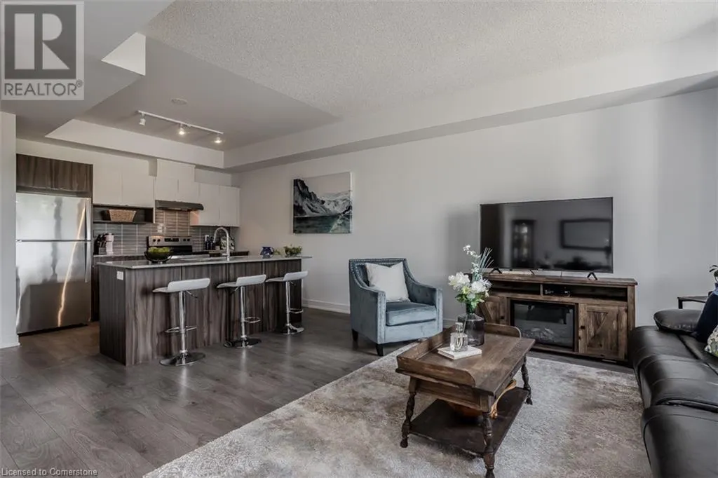 Waterdown Rd & Masonry Crt Welcome to this beautifully designed modern 3-storey townhome, perfectly located just minutes from the lake, downtown Burlington, parks, schools, and convenient transit options including the GO Station. Nestled in a quiet, family-friendly enclave, this pet-friendly home offers the ideal balance of comfort, style, and functionalityâperfect for growing families, young professionals, or anyone looking to enjoy the best of Burlington living. One of the rare highlights of this unit is the 2-car private drivewayâa unique feature that only two homes in the entire complex enjoy, providing unmatched parking convenience for your family and guests. Step into a bright and welcoming front entry with a convenient 2-piece powder room, perfect for guests. The second level showcases a seamless open-concept layout, ideal for both everyday living and entertaining. Wide plank laminate flooring flows throughout the spacious living and dining areas, where large windows and a walkout to your private balcony flood the space with natural light. At the heart of the home, the contemporary kitchen is sure to impressâfeaturing quartz countertops, stainless steel appliances, custom cabinetry, a stylish stacked tile backsplash, and a large island with breakfast bar, built-in microwave, and dishwasher. Upstairs, youâll find a bright and airy primary retreat complete with a 3-piece ensuite boasting an oversized quartz vanity, porcelain tile floors, and a sleek stacked-tile walk-in shower with a glass door. An additional well-sized bedroom and a 4-piece main bathâwith matching finishes and a tub/shower comboâoffer the perfect layout for a growing family, guests, or a home office. Top it all off with a private rooftop terrace offering pond views and a glass railingâan ideal space to relax, dine, or entertain under the open sky. Whether you're looking for your first home or a stylish, low-maintenance space for your family, this thoughtfully designed townhome checks all the boxes. (id:27476)