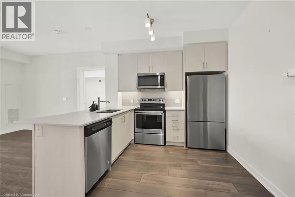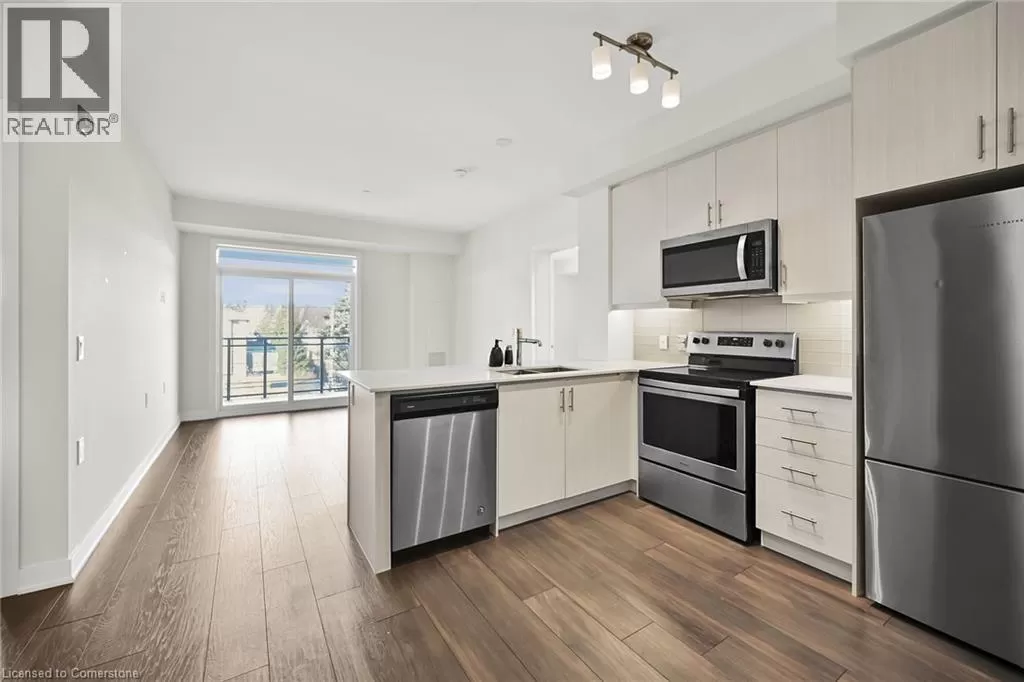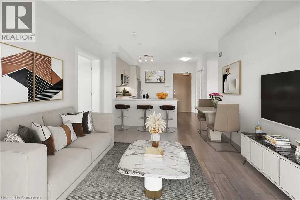 QEW to Plains Rd E in between King Road and Waterdown Rd, 5 minutes from Mapleview Mall and GO train Step into Affinity by RosehavenâAldershotâs stylish spot where convenience, comfort, and modern vibes live their best lives. Perfect for first-time buyers, downsizers, or anyone who's over the whole âcutting grass and shoveling snowâ thing. This 2-bed, 2-bath charmer serves up 900 sq. ft. of open-concept goodness, complete with a custom kitchen, Corian countertops, stainless steel appliances, and enough prep space to convince everyone you're absolutely starring in your own cooking show. Commuter? Youâll love the GO Station just minutes away. Foodie? Steps to restaurants. Shopaholic? Your walletâs trembling already. This building is not shy about amenitiesâthink gym, yoga studio, rooftop terrace with BBQs & fireplace, billiards, and a slick party room. Plus: elevator, same-floor locker, pet-friendly neighbors who will show you dog pics before you even ask. Whether youâre starting fresh or simplifying life, this condo wraps it all in one stylish, low-maintenance package. Your only job? Move in, kick back, and enjoy the vibes. (id:27476)