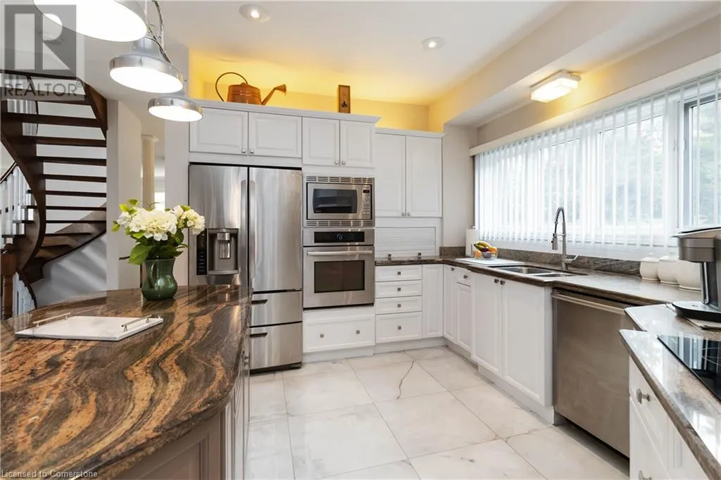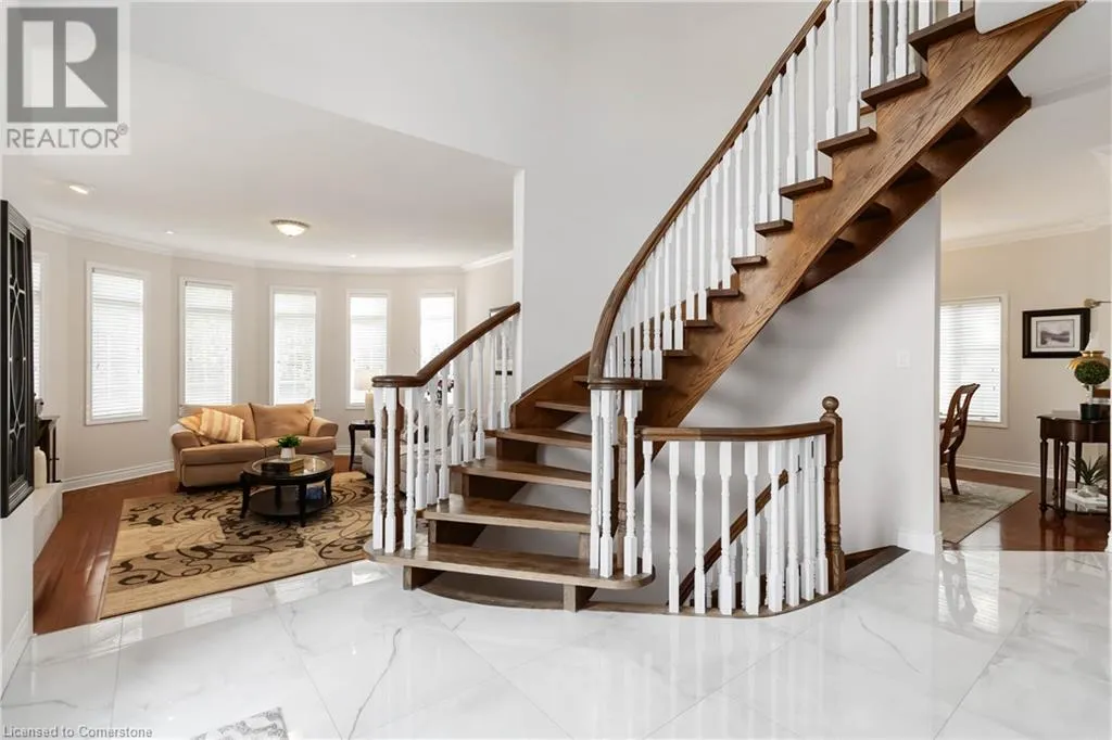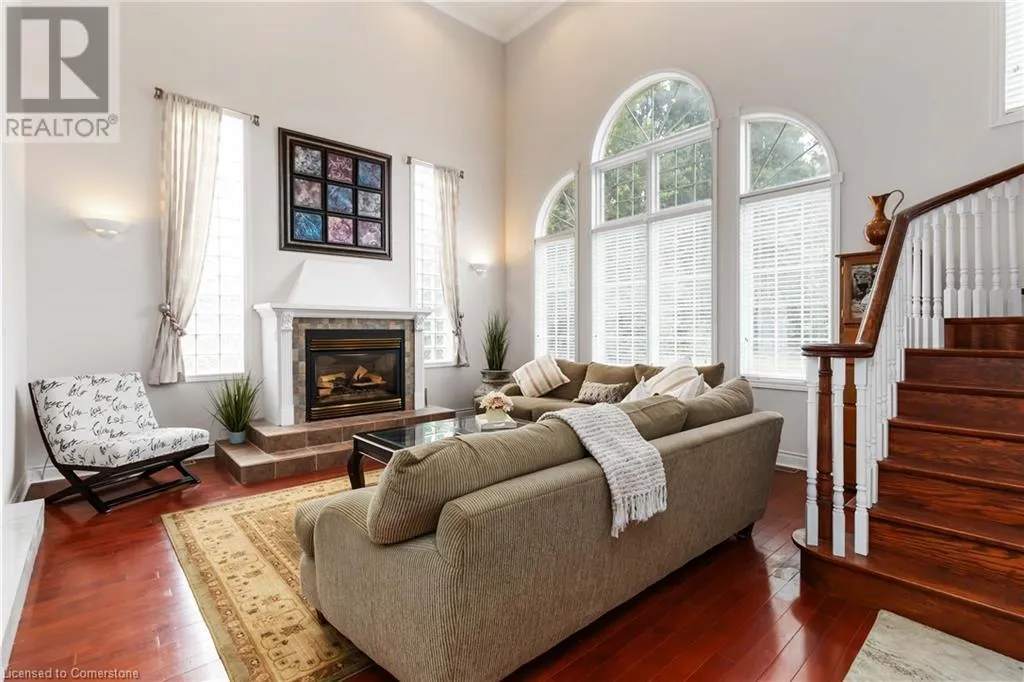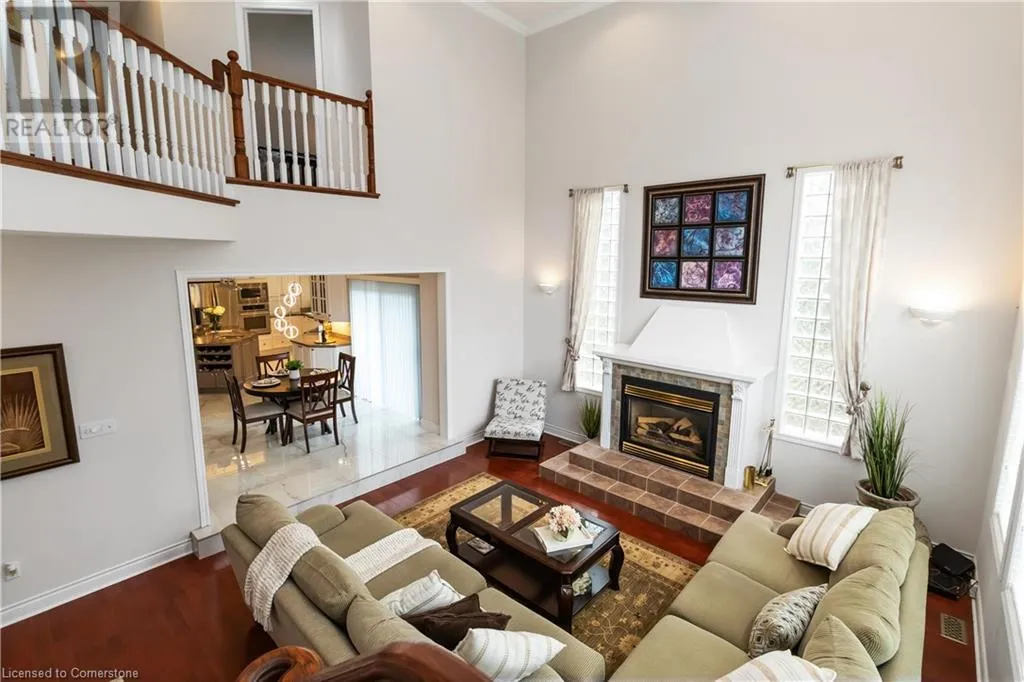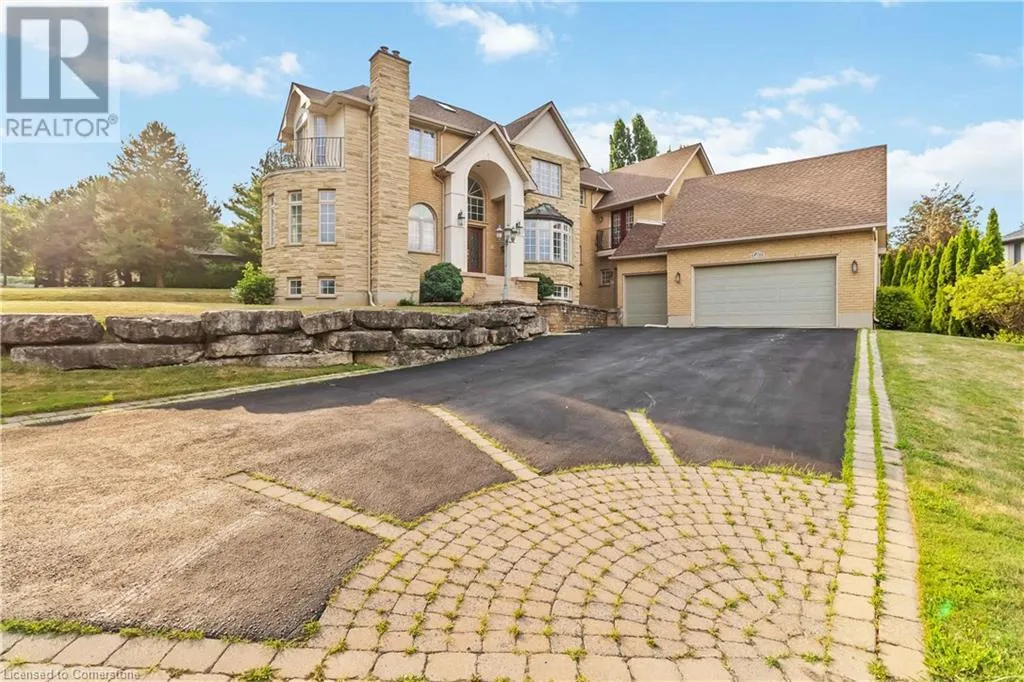 Heading North on Brant St, Turn left onto Hazelton Blvd., then right onto Somerset Dr. The home is located right corner of Somerset Dr. & Tamworth Crt. Welcome to 1401 Tamworth Court, a luxurious gem nestled in the highly sought-after Upper Tyandaga neighborhood of Burlington. Situated on a serene cul-de-sac, this custom-built estate evokes the grandeur of a castle, offering Aprox 3,850 square feet of refined living space. With four generously sized bedrooms and two and a half bathrooms, this home is designed to impress. Architectural highlights include vaulted ceilings, two dramatic circular staircases, two balconies, crown moldings, Hardwood floors, and three cozy fireplaces. The chefâs kitchen is a dream come true, featuring Carrera marble flooring, premium stainless steel appliances, granite countertops, a center island with a wine rack and second sink, and sliding patio doors that open to the backyard deck. Hardwood floor in a spacious dining room area, while wall-to-ceiling windows flood the home with natural light and offer scenic views. A study room and two-piece bathroom complete the main floor. The partially finished 1,600+ square foot basement presents endless possibilities for customization, including potential for an multi-generational living, home theatre, or personal gym. Outside, composite decking, creating an expansive outdoor oasis perfect for entertaining or relaxing. A triple car garage, nine-car driveway, and a generous 177' x 161' corner lot further elevate the grandeur of this estate. Price TO SELL AT $2,290,000âmotivated seller! This remarkable home seamlessly blends luxury, comfort, and convenience, located just minutes from golf courses, parks, schools, hospitals, public transit, and ski areas. Donât miss your chance to own this one-of-a-kind property in one of Burlingtonâs most prestigious enclaves. Please allow 24 hours irrevocable on all offers. (id:27476)