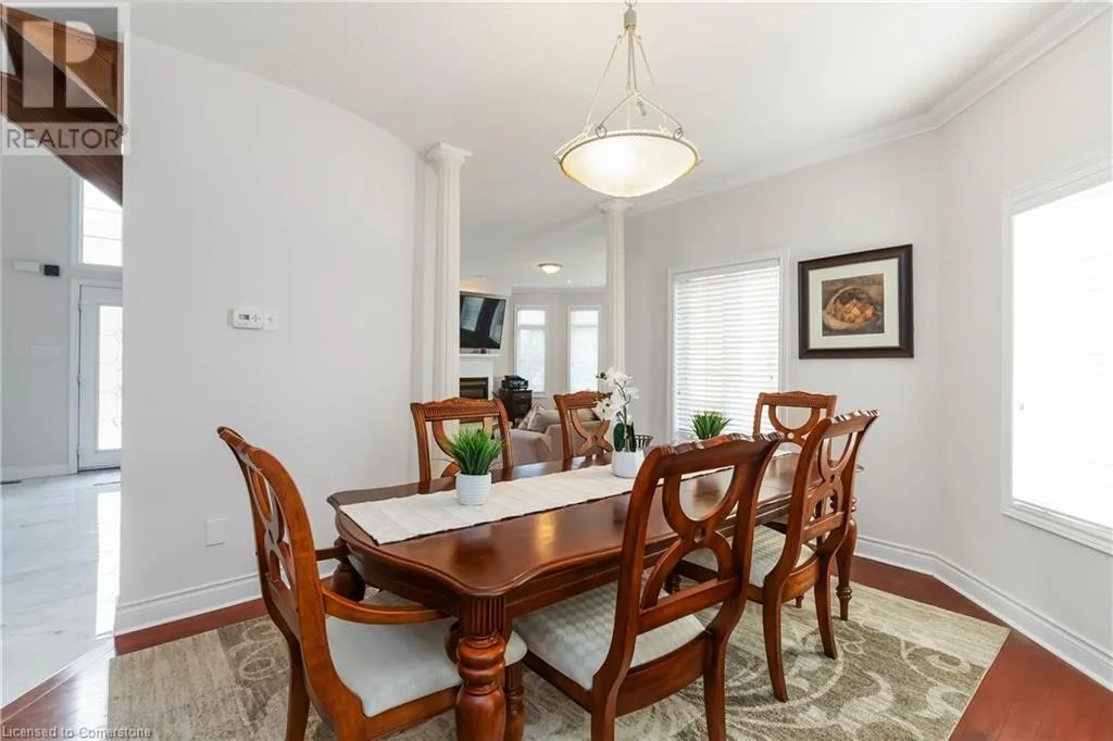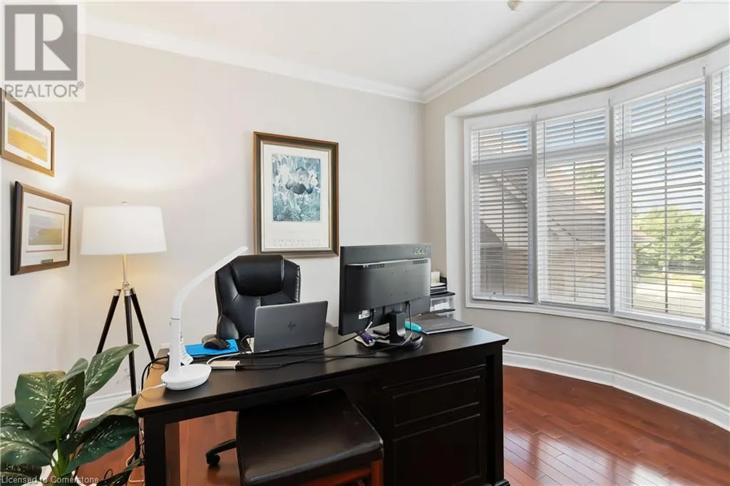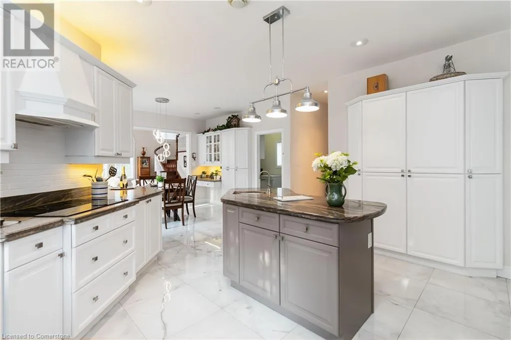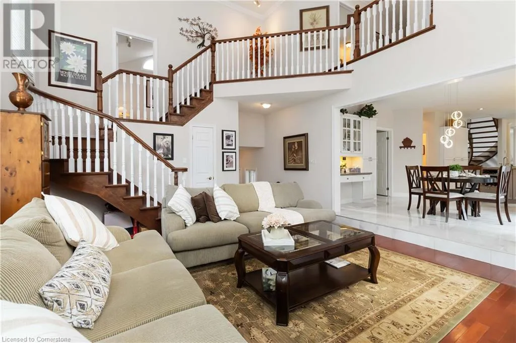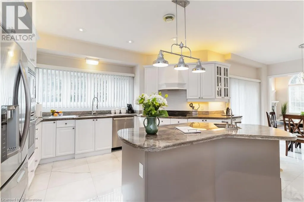 Heading North on Brant St, Turn left onto Hazelton Blvd., then right onto Somerset Dr. The home is located right corner of Somerset Dr. & Tamworth Crt. Welcome to 1401 Tamworth Court, a luxurious gem nestled in the highly sought-after Upper Tyandaga neighborhood of Burlington. Situated on a serene cul-de-sac, this custom-built estate evokes the grandeur of a castle, offering Aprox 3,850 square feet of refined living space. With four generously sized bedrooms and two and a half bathrooms, this home is designed to impress. Architectural highlights include vaulted ceilings, two dramatic circular staircases, two balconies, crown moldings, Hardwood floors, and three cozy fireplaces. The chefâs kitchen is a dream come true, featuring Carrera marble flooring, premium stainless steel appliances, granite countertops, a center island with a wine rack and second sink, and sliding patio doors that open to the backyard deck. Hardwood floor in a spacious dining room area, while wall-to-ceiling windows flood the home with natural light and offer scenic views. A study room and two-piece bathroom complete the main floor. The partially finished 1,600+ square foot basement presents endless possibilities for customization, including potential for an multi-generational living, home theatre, or personal gym. Outside, composite decking, creating an expansive outdoor oasis perfect for entertaining or relaxing. A triple car garage, nine-car driveway, and a generous 177' x 161' corner lot further elevate the grandeur of this estate. Price TO SELL AT $2,290,000âmotivated seller! This remarkable home seamlessly blends luxury, comfort, and convenience, located just minutes from golf courses, parks, schools, hospitals, public transit, and ski areas. Donât miss your chance to own this one-of-a-kind property in one of Burlingtonâs most prestigious enclaves. Please allow 24 hours irrevocable on all offers. (id:27476)