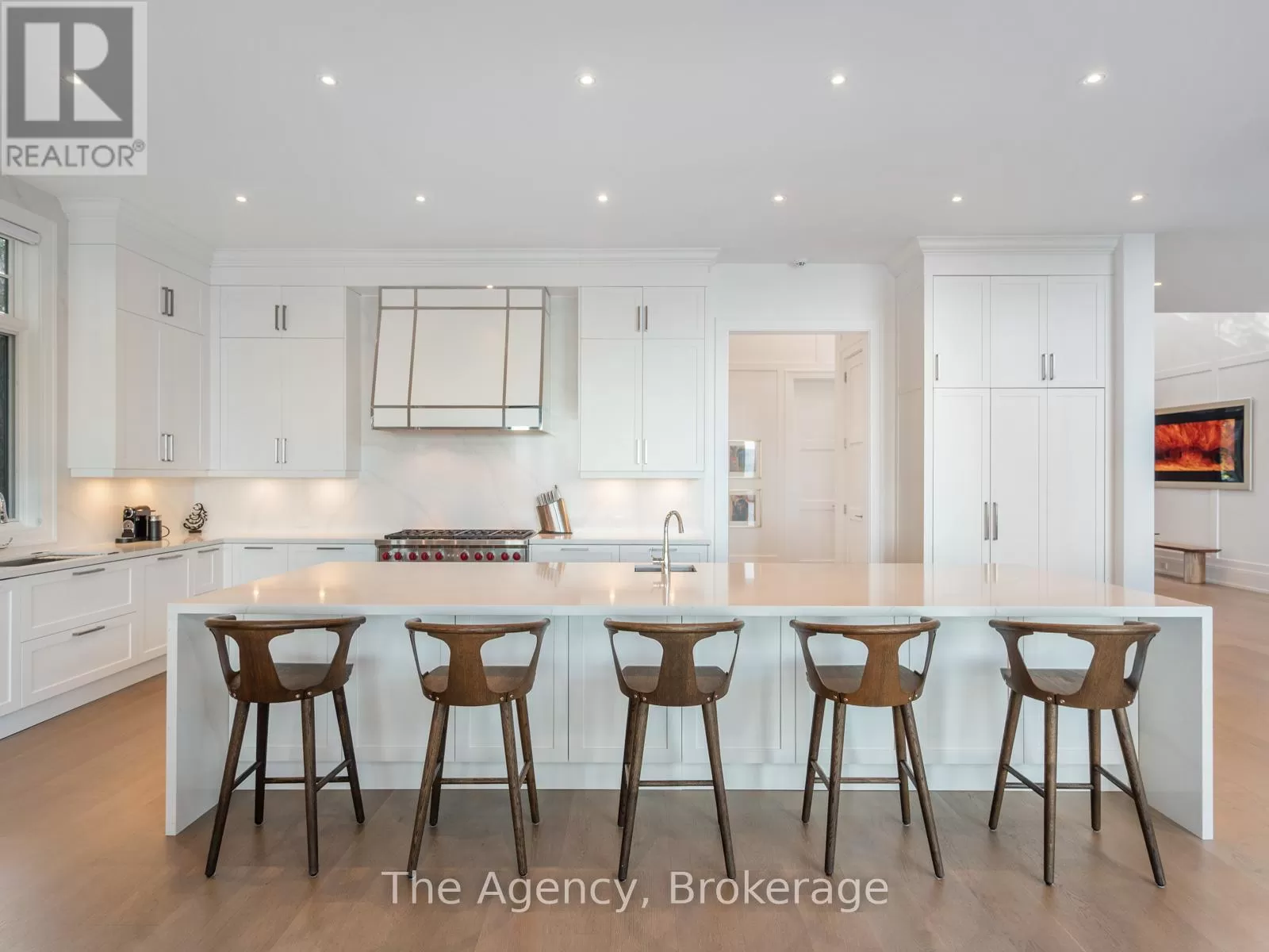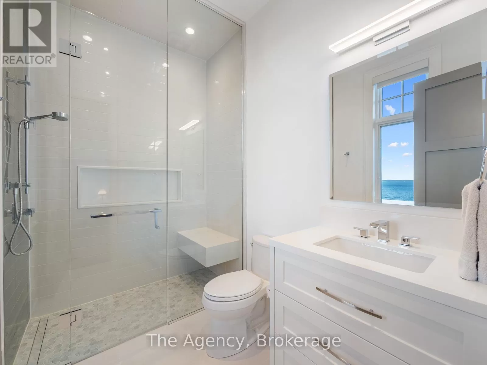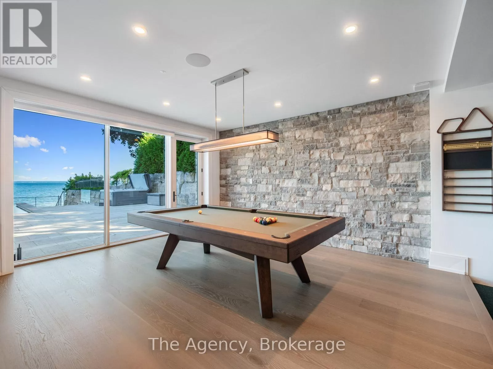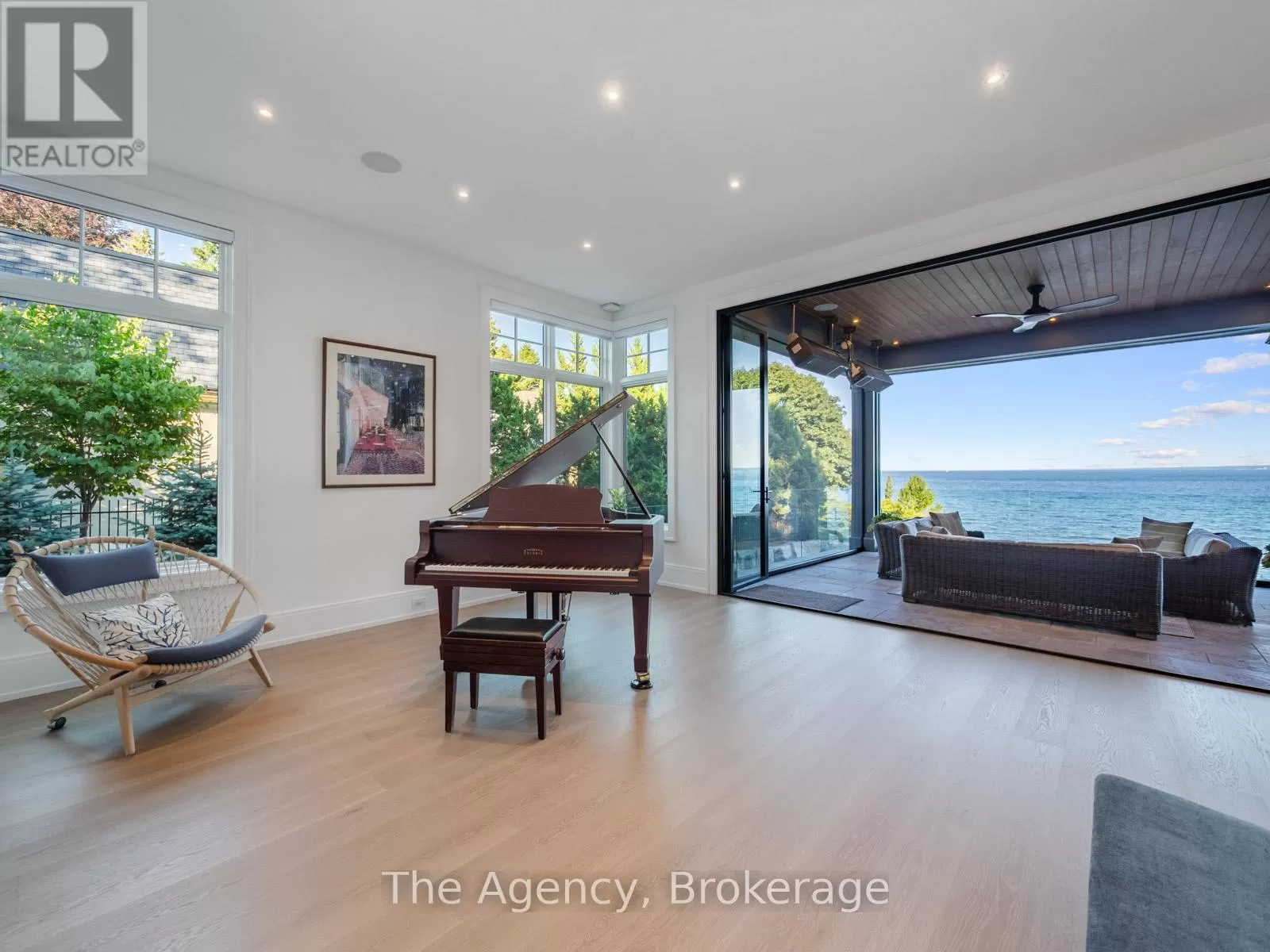 Lakeshore/Secord The Haven. A rare waterfront estate on a private laneway in South Burlington. Set on nearly of an acre with 103 ft of shoreline and full riparian rights, this property offers privacy, direct lake access, 11,417 Sq ft of living space and a lifestyle that feels like a luxury resort without leaving home. Inside, the lake takes centre stage. Floor to ceiling windows in the great room frame the view, anchored by 22-foot ceilings, a dramatic full-height stone fireplace, and a skylight that floods the space with light. A second living room provides another place to unwind, while a private office with 18-foot beamed ceilings and a stone feature wall inspires focus. Designed by architect David Small and built by Rock Cliff Custom Homes, this home is a masterclass in craftsmanship and elegance. Details like radiant heated floors throughout and a heated driveway ensure year-round comfort. Three outdoor terraces extend the living space. One includes a full outdoor kitchen with built-in BBQ, fridge, and bar sink; another is heated and screened for cooler nights. An additional custom stone patio sits at the waters edge. The backyard is a showstopper. An infinity edge pool appears to spill into the lake, while a private tennis court adds to the resort feel. Inside the kitchen features a large quartz island, Sub- Zero, Miele, and Wolf appliances, and custom cabinetry. A generous mudroom and main-floor laundry offer everyday function. Upstairs are four bedrooms, each with its own ensuite. The primary suite enjoys panoramic lake views, a spa-like ensuite, and a custom dressing room with center island. A second laundry room is also on this level. The walk-out lower level includes a lounge and bar, wine cellar, golf simulator, gym with lake views, sauna, tiered theatre, guest suite, and 3 additional bathrooms. An oversized 4-car tandem garage completes the home. Just minutes to downtown Burlington and a short drive to Toronto and Niagara, this is lakeside living without compromise. (id:27476)