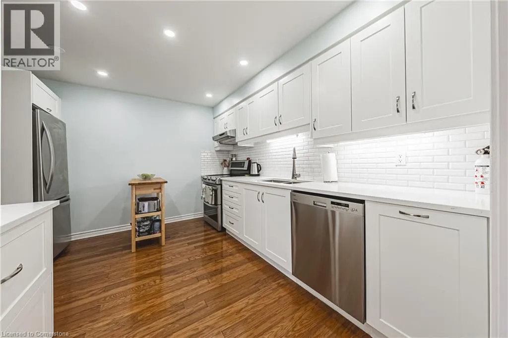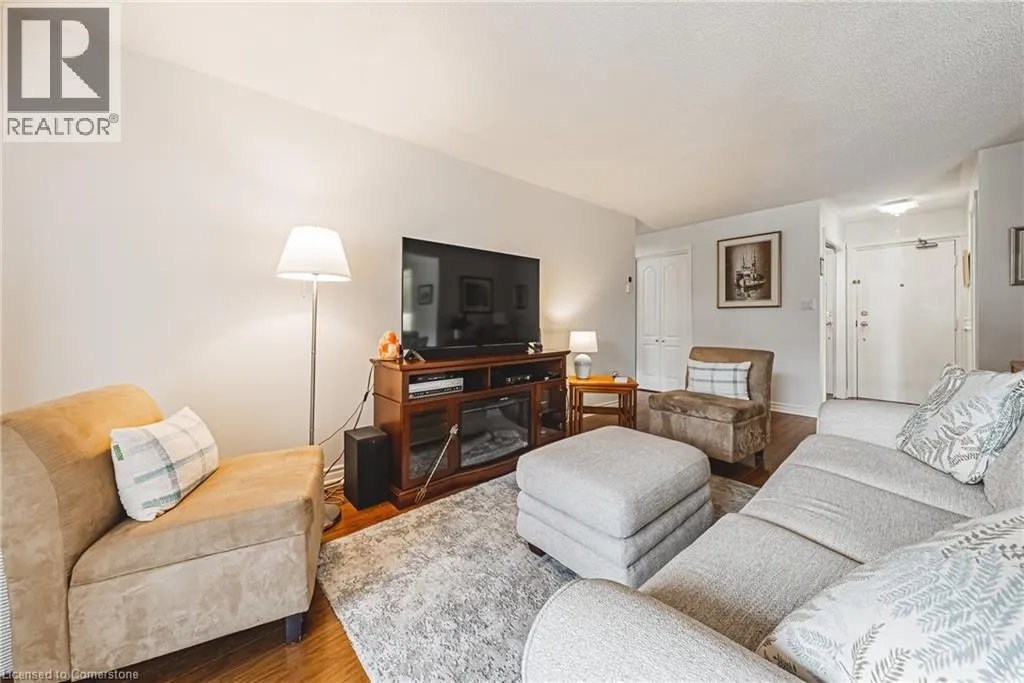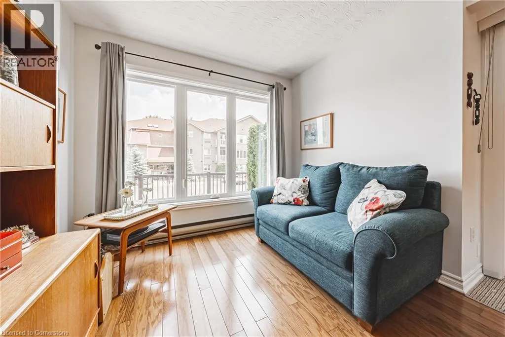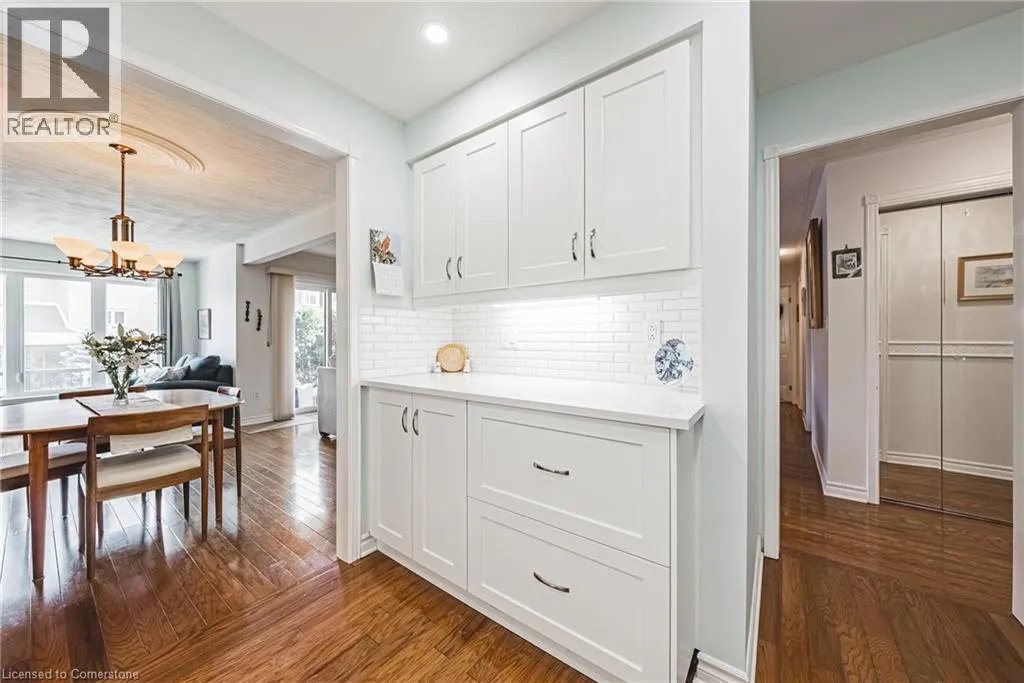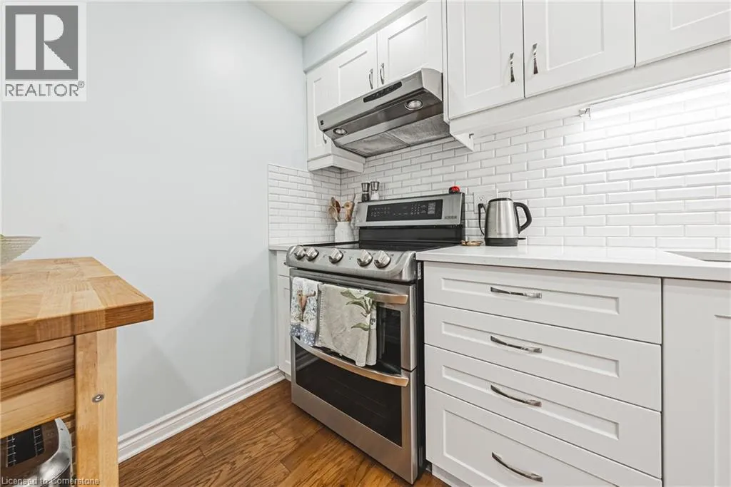 Guelph Line to Pinemeadow Drive Spacious 2 Bed, 2 Bath Main Floor Condo with Private Patio Welcome to this bright and beautifully maintained main floor condo offering 2 spacious bedrooms and 2 full bathrooms. Enjoy the convenience of sliding glass doors leading to your own private patio -- perfect for morning coffee or evening relaxation. The updated kitchen (â22) features stunning white cabinetry, timeless subway tile backsplash, sleek quartz countertops, and generous storageâdesigned to impress and function beautifully. The open-concept layout flows from the dining area and additional sitting space into a spacious, light-filled living room, ideal for entertaining or relaxing. The primary bedroom boasts a walk-in closet and a private ensuite complete with an oversized glass shower for a spa-like experience. Additional highlights include: Mitsubishi ductless heating/cooling unit (â18); In-suite laundry (washer & dryer â21); One designated parking space, plus ample visitor parking This lovely unit offers the perfect combination of comfort, accessibility, and location. Set in a quiet, well-maintained low-rise building, walking distance to shopping, restaurants, parks and public transit, with quick access to major highways. Room sizes are approximate. Main-floor living at its finest. (id:27476)