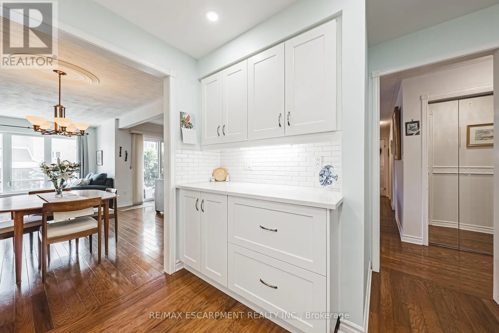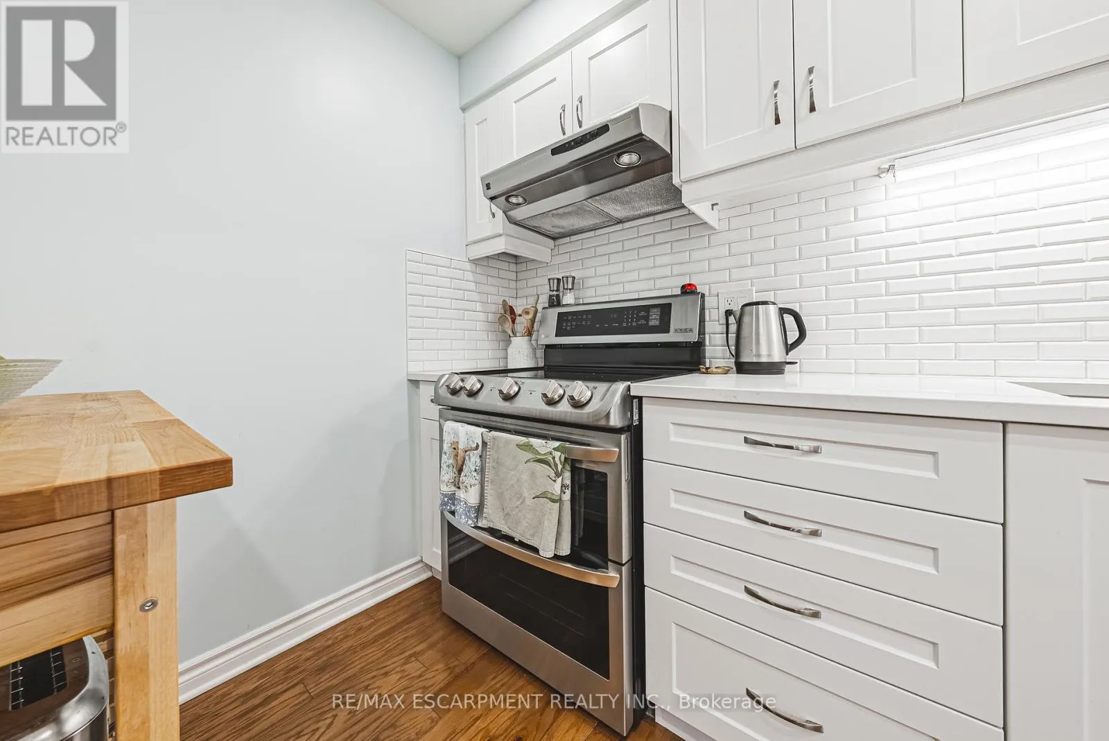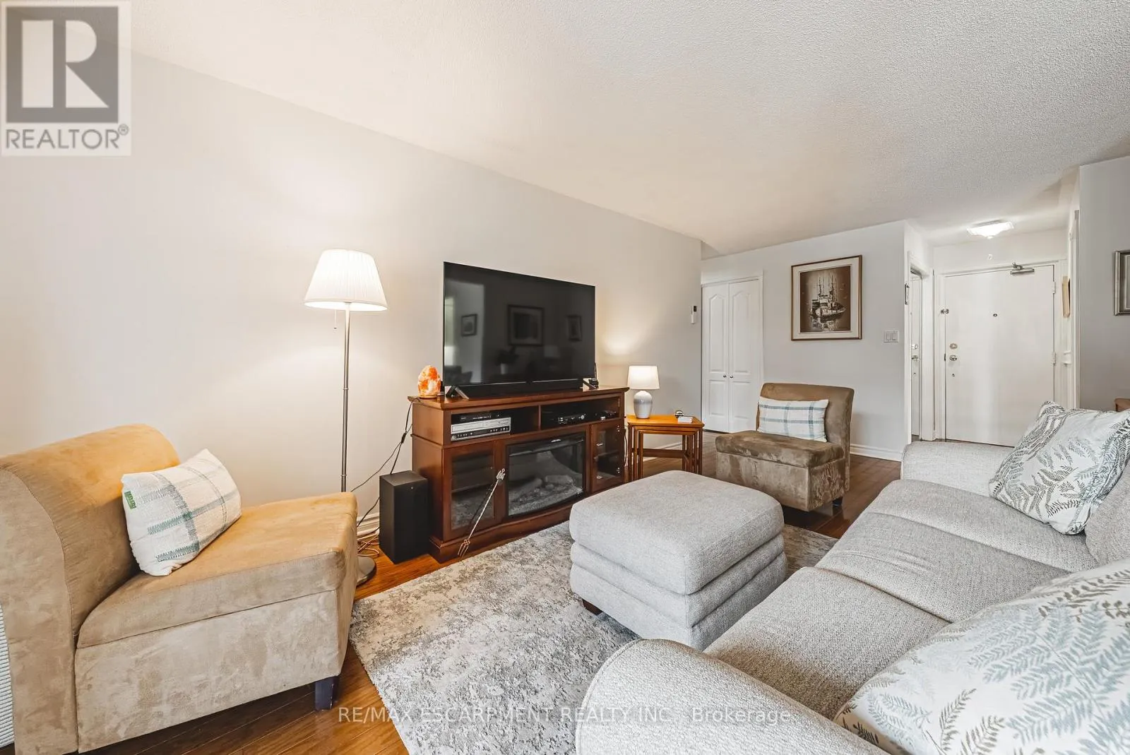 Guelph Line Spacious 2 Bed, 2 Bath Main Floor Condo with Private Patio. Welcome to this bright and beautifully maintained main floor condo offering 2 spacious bedrooms and 2 full bathrooms. Enjoy the convenience of sliding glass doors leading to your own private patio -- perfect for morning coffee or evening relaxation. The updated kitchen (22) features stunning white cabinetry, timeless subway tile backsplash, sleek quartz countertops, and generous storage - designed to impress and function beautifully. The open-concept layout flows from the dining area and additional sitting space into a spacious, light-filled living room, ideal for entertaining or relaxing. The primary bedroom boasts a walk-in closet and a private ensuite complete with an oversized glass shower for a spa-like experience. Additional highlights include: Mitsubishi ductless heating/cooling unit (18); In-suite laundry (washer & dryer 21); One designated parking space. This lovely unit offers the perfect combination of comfort, accessibility, and location. Set in a quiet, well-maintained low-rise building, walking distance to shopping, restaurants, parks and public transit, with quick access to major highways. Room sizes are approximate. Main-floor living at its finest. (id:27476)