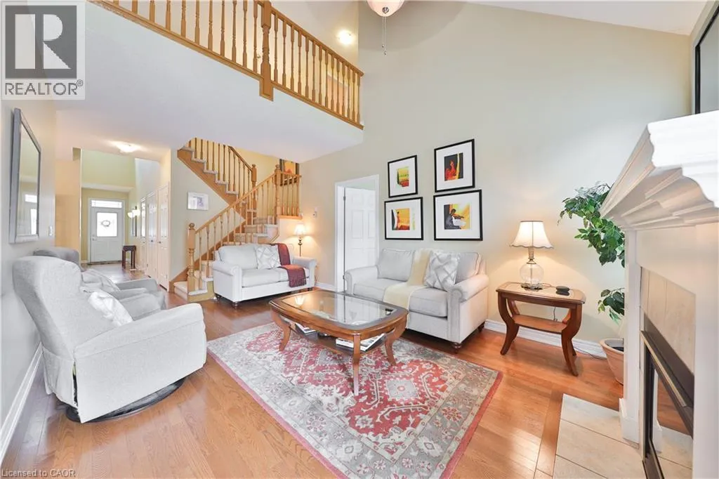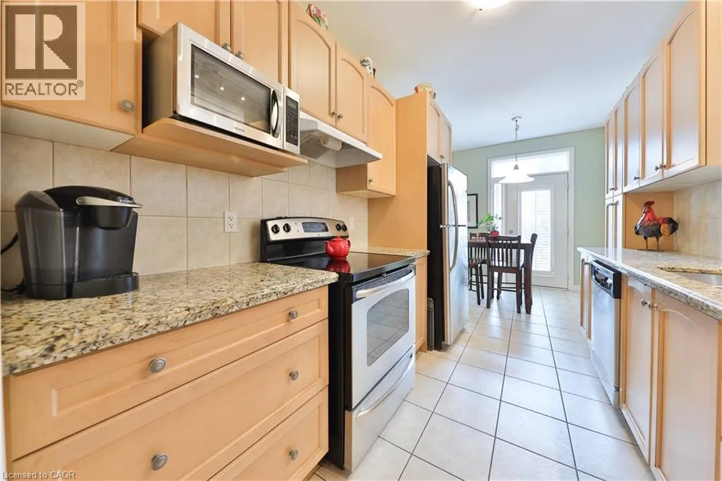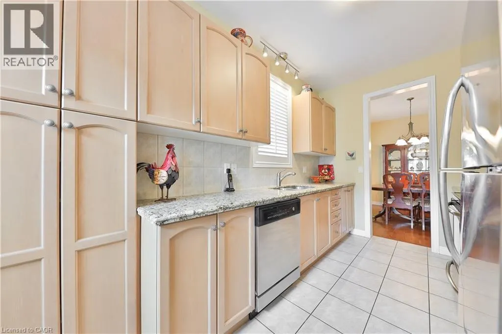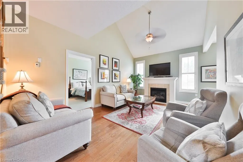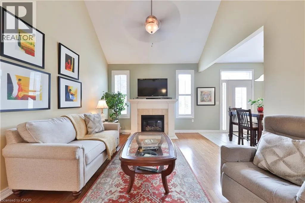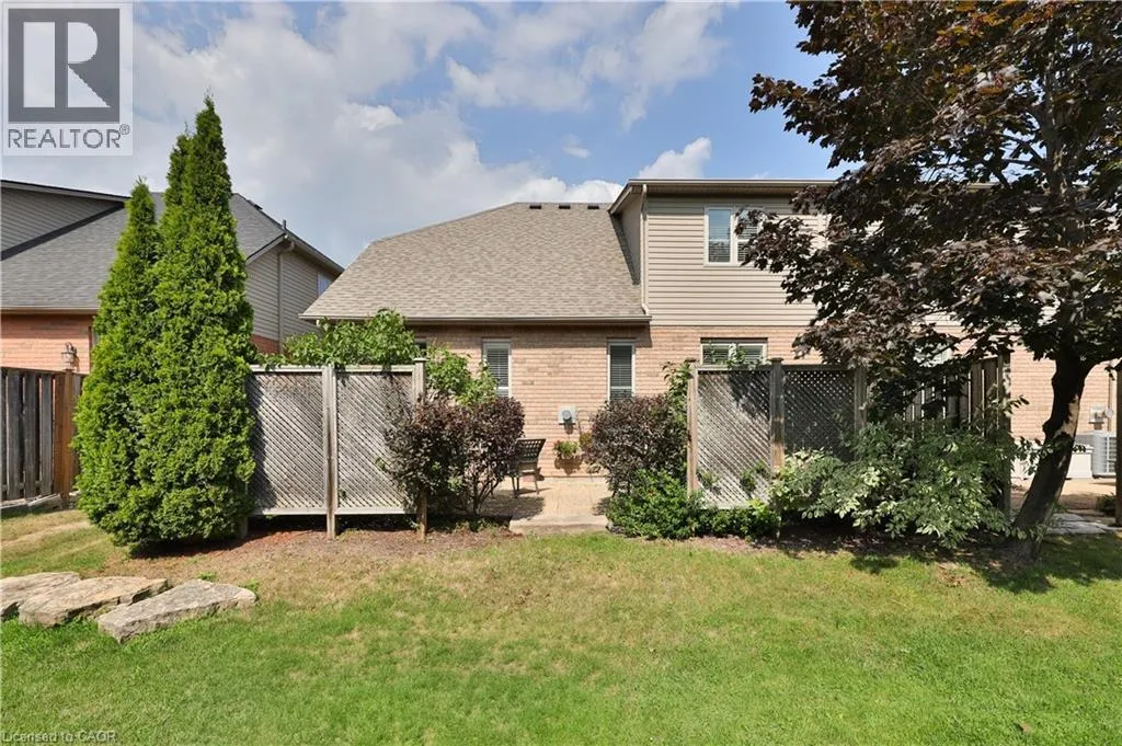 Upper Middle Road to Itabashi Way Welcome to this stunning bungaloft townhome, set within one of Burlingtonâs most desirable lifestyle communities. Combining comfort and convenience, this residence offers total parking for 4 vehicles, a landscaped front yard framed by mature trees, and an automatic garage with inside entry. Its location is idealâjust steps from scenic parks, vibrant shopping, and dining options, all with effortless access to major highways for commuting or weekend getaways. Inside, youâll find gleaming hardwood floors flowing throughout the main level, creating a warm, cohesive feel. The eat-in kitchen is both stylish and functional, featuring granite countertops, ample cabinetry, a tile backsplash, and stainless steel appliances. A walkout leads directly to your private backyard retreat, perfect for al fresco dining or relaxing with friends. The living room, highlighted by a soaring vaulted ceiling and cozy gas fireplace, offers an inviting space to gather, while the dining room provides a refined setting for entertaining. The main floor primary suite enhances everyday ease with its walk-in closet and 3pc ensuite, making it a perfect haven at dayâs end. A versatile home officeâeasily convertible to an additional bedroomâand a 2pc bathroom complete this level. Upstairs, a bright and airy loft area offers flexible living potentialâideal as a lounge, reading nook, or creative workspace, accompanied by a spacious bedroom with walk-in closet and a full 4pc bathroom. The lower level, currently unfinished, features a bathroom rough-in and unlimited potential to design the space of your dreams, whether thatâs a gym, media room, or additional living quarters. The private backyard is a true extension of the home, with an aggregate patio bordered by lush cedars for privacy. A sprinkler system, maintained by the condo, ensures effortless upkeep. This is more than a homeâitâs an opportunity to embrace a vibrant, well-connected lifestyle in a fantastic community. (id:27476)