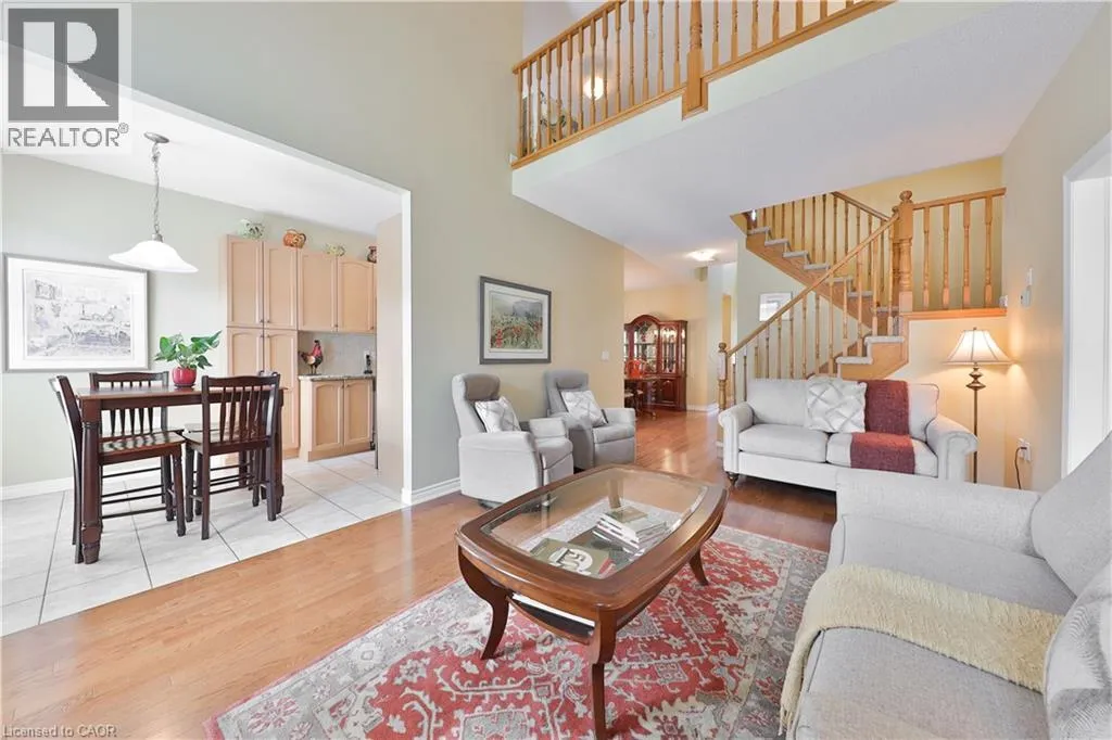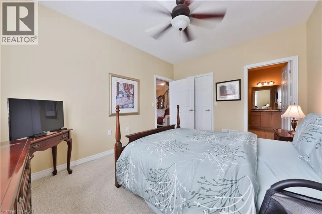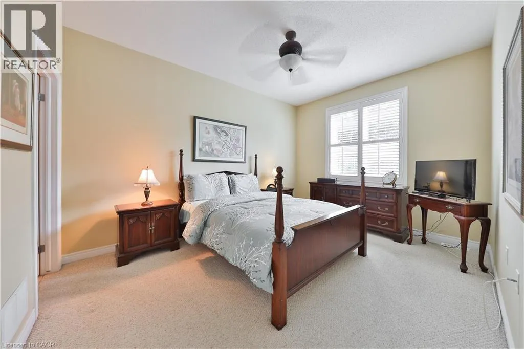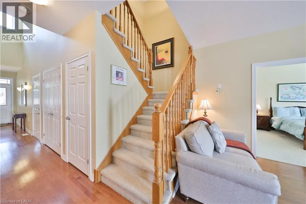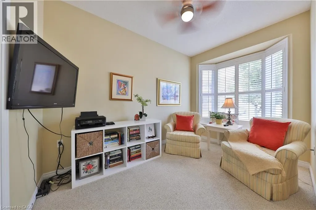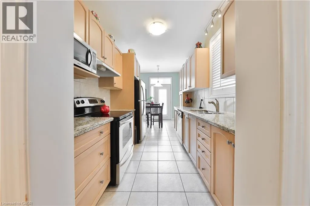 Upper Middle Road to Itabashi Way Welcome to this stunning bungaloft townhome, set within one of Burlingtonâs most desirable lifestyle communities. Combining comfort and convenience, this residence offers total parking for 4 vehicles, a landscaped front yard framed by mature trees, and an automatic garage with inside entry. Its location is idealâjust steps from scenic parks, vibrant shopping, and dining options, all with effortless access to major highways for commuting or weekend getaways. Inside, youâll find gleaming hardwood floors flowing throughout the main level, creating a warm, cohesive feel. The eat-in kitchen is both stylish and functional, featuring granite countertops, ample cabinetry, a tile backsplash, and stainless steel appliances. A walkout leads directly to your private backyard retreat, perfect for al fresco dining or relaxing with friends. The living room, highlighted by a soaring vaulted ceiling and cozy gas fireplace, offers an inviting space to gather, while the dining room provides a refined setting for entertaining. The main floor primary suite enhances everyday ease with its walk-in closet and 3pc ensuite, making it a perfect haven at dayâs end. A versatile home officeâeasily convertible to an additional bedroomâand a 2pc bathroom complete this level. Upstairs, a bright and airy loft area offers flexible living potentialâideal as a lounge, reading nook, or creative workspace, accompanied by a spacious bedroom with walk-in closet and a full 4pc bathroom. The lower level, currently unfinished, features a bathroom rough-in and unlimited potential to design the space of your dreams, whether thatâs a gym, media room, or additional living quarters. The private backyard is a true extension of the home, with an aggregate patio bordered by lush cedars for privacy. A sprinkler system, maintained by the condo, ensures effortless upkeep. This is more than a homeâitâs an opportunity to embrace a vibrant, well-connected lifestyle in a fantastic community. (id:27476)