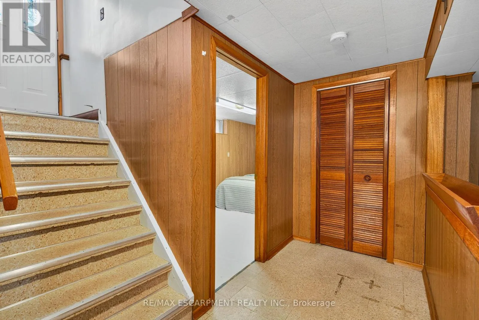 Plain Rd W to Danforth Ave, before North Shore Blvd W Welcome to 961 Danforth Avenue, a beautifully maintained bungalow in Aldershots sought-after, family-friendly community. Step inside to a bright, spacious family room flowing into a spotless eat-in kitchen with solid wood cabinets and ceramic tile flooring. The main level offers three generous bedrooms with ample closets, a four-piece bathroom, and original hardwood floors throughout. The fully finished basement expands your living space with a fourth bedroom, a three-piece bathroom, a large recreation room with bar and cozy fireplace, plus a second kitchen, perfect for an in-law suite with private side entrance. Enjoy parking for up to 6 vehicles, a handy storage shed, and a peaceful location close to parks, schools, and transit. Move-in ready and full of potential! RSA. (id:27476)