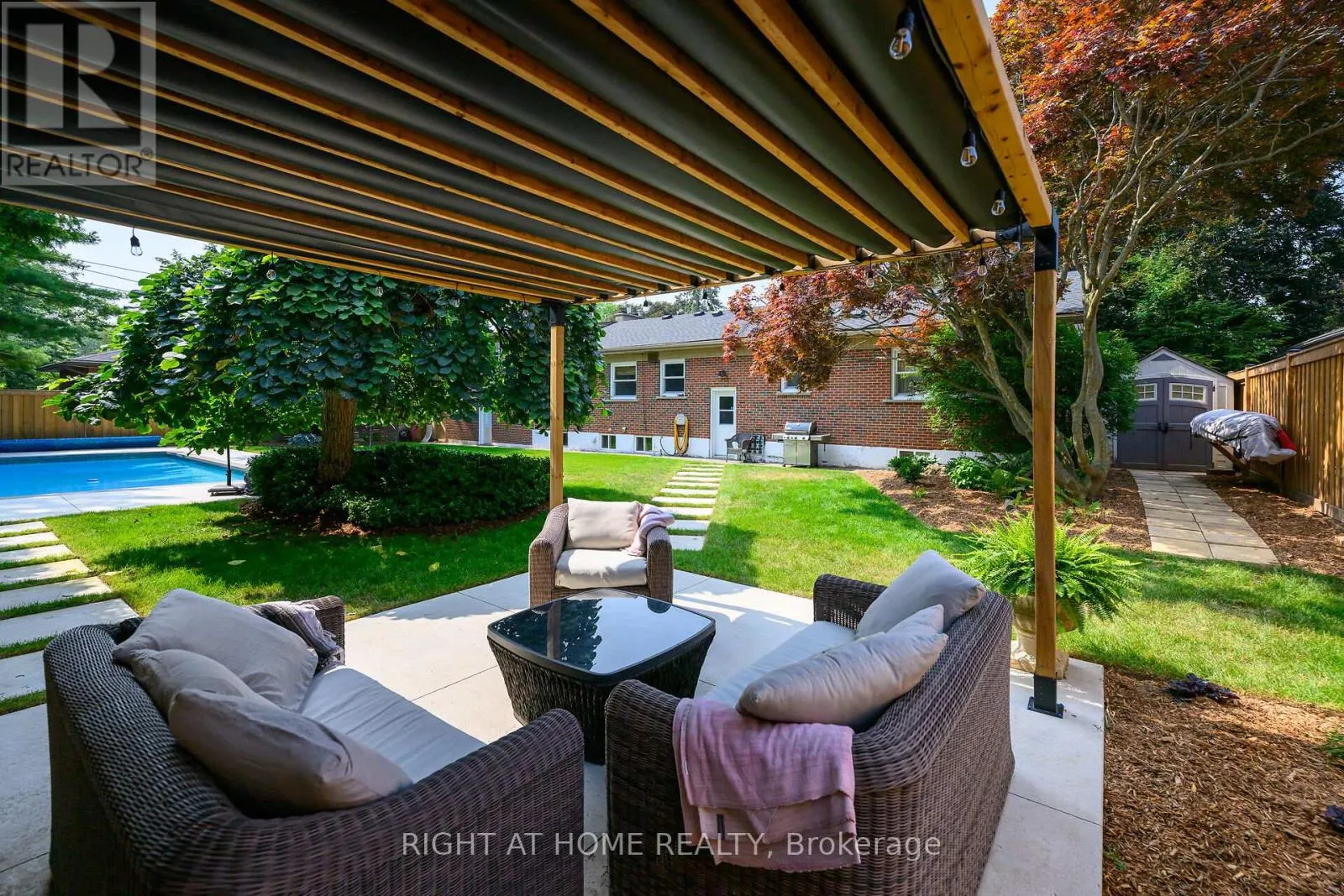 Cross Streets: Ellengale & King. ** Directions: Ellengale to Gayne. Welcome to this beautifully updated, 5 bedroom, 4 bathroom, sprawling ranch home offering over 3700 sq ft of living space. Ideally situated on an expansive 96 x 124 ft, private, tree lined lot in a quiet, coveted south Aldershot neighbourhood. The quality finishings, functional layout, stunning grounds and desirable location make this a rare find. Step inside to the welcoming foyer which leads to the open concept living room and dinning room featuring hardwood floors, stone fireplace and picture windows. The kitchen feels like your own bistro complete with Wolf range, lots of counter space, plenty of storage with 2 large pantries, ample cupboards, dine-in area and a spectacular view of the backyard. A chefs dream space to create. The spacious split floor plan is ideal for families. The primary suite with a private den, and a gorgeous updated spa bathroom, a second bedroom plus a powder room are at one end of the home. At the other end, three additional generous sized bedrooms and a newly updated 3 pc bathroom. The incredible backyard is where memories are made. Lounging around the in-ground pool, relaxing under the custom pergola, or entertaining family and friends, its like having a private 5 star resort. The lower level of the home offers so much space and versatility. A huge rec room with fireplace and custom bar, 3 pc bathroom, office, den, laundry, workout room and loads of storage including a cedar lined closet. There are three separate entrances to the lower level, the perfect set up for an in-law suite. Fully fenced yard. Double garage with inside entry. Located near Lake Ontario, walking and biking trails, parks, schools and downtown Burlingtons shops and restaurants. Commuting is easy with quick access to the GO train and major highways. 655 Gayne offers an abundance of space and an idyllic lifestyle. All you need to do is unpack and enjoy. Full list of the features and updates available upon request. (id:27476)