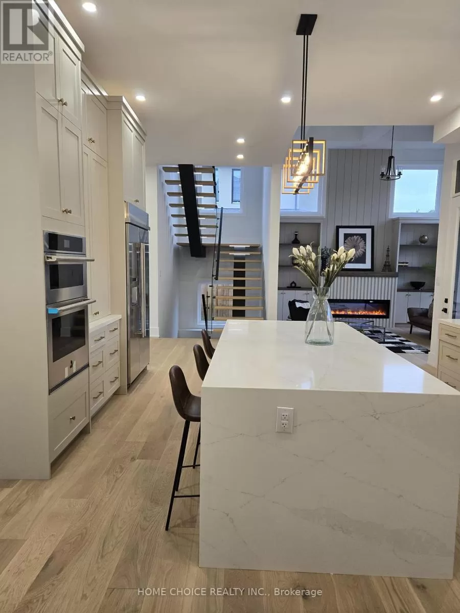 Tuck / Spruce Welcome to your future custom-built dream home with 5000 SF of living space, Tarion warranty, walking distance to lake, top rated schools & across Breckon Park.Exterior (Interlocked driveway alongside lights, Stone address Ledge, Landscape, Automatic Sprinklers , Black windows)Main Floor (11' ceiling, HW floor, Office/Study room, dining room, Solid core Berkley doors) Chefs Kitchen (built in woodwork, Fluted range hood & Island, Lights under cabinets, Jenn air appliances, Built in microwave/oven, Glass wine hutch, Appliance garage with sliding doors, Lazy Susan, Garbage bins, Painted shaker doors, Dove tail drawers, Servery, Quartz, Multi-functional sink, Pot filler, walk in pantry) Family Room (14 ceiling, Built in cabinetry, Huge windows, 72 fireplace, Fluted wall panel, storage)-Powder room (Black toilet, Ceiling height tiles, H/E vanity & faucet) Outdoor Living Space (Huge covered patio, Stoned Gas fire place, Pizza oven, BBQ, Fridge space, Faucet & sink, Glass railings, Stone window wells)Stairs (Floating modern stairs with black beams, LED lights under each step, Glass railing)Basement (Walkout separate entrance, 10 ceiling, Bedroom, Full washroom, Huge windows, Living room with fireplace, Bar, Entertainment area, floor to ceiling glass wall Gym, Sauna, Home Theater, Storage room)Top floor (10 ceiling, chandeliers, 48 skylight, Linen closet) Master BR1 (Double door, Accent wall, Walk in closet) Master WR1 (Double vanity, H/E sink & faucet, Free standing faucet & tub, Niches with LED lights, curb less shower with glass door, Ceiling height tiles, wall mounted blk toilet) - BR 2 (Facing park, Custom closet, attached WR) WR2 (H/E vanity & faucet, wall mounted Blk Toilet, Curb less shower with lights in niche) BR3 & BR4 (facing park, huge windows, custom closets), Jack & Jill WR (Blk Tlt, H/E sinks/faucets with double vanity, Glass shower with lights in niche)Smart home features smart switches, EV car charger, exterior cameras. (id:27476)