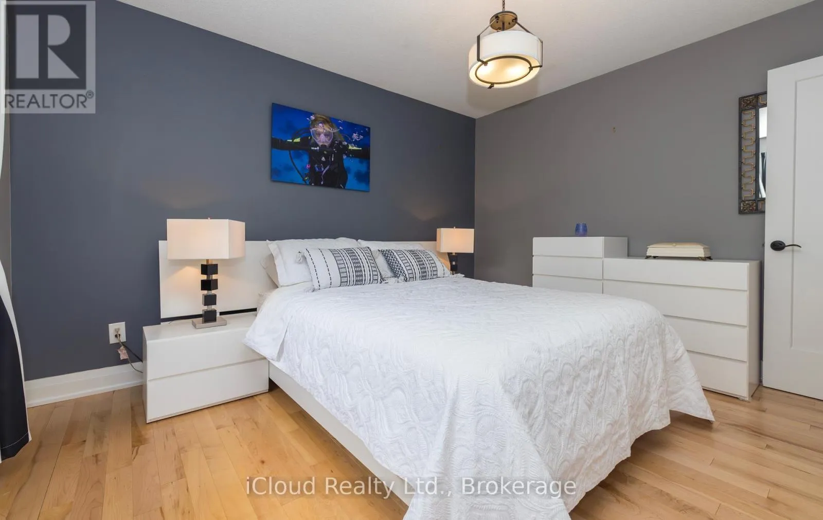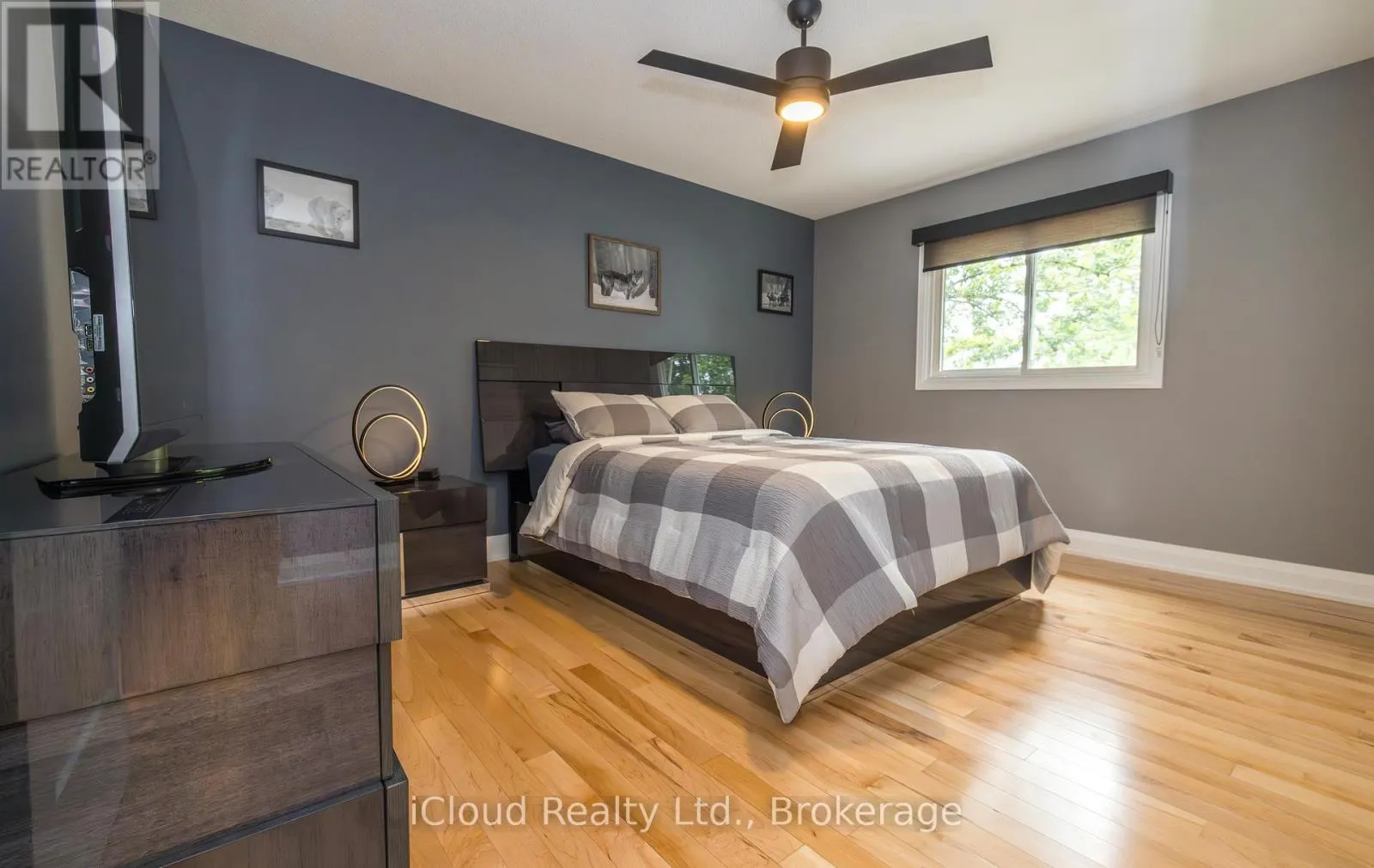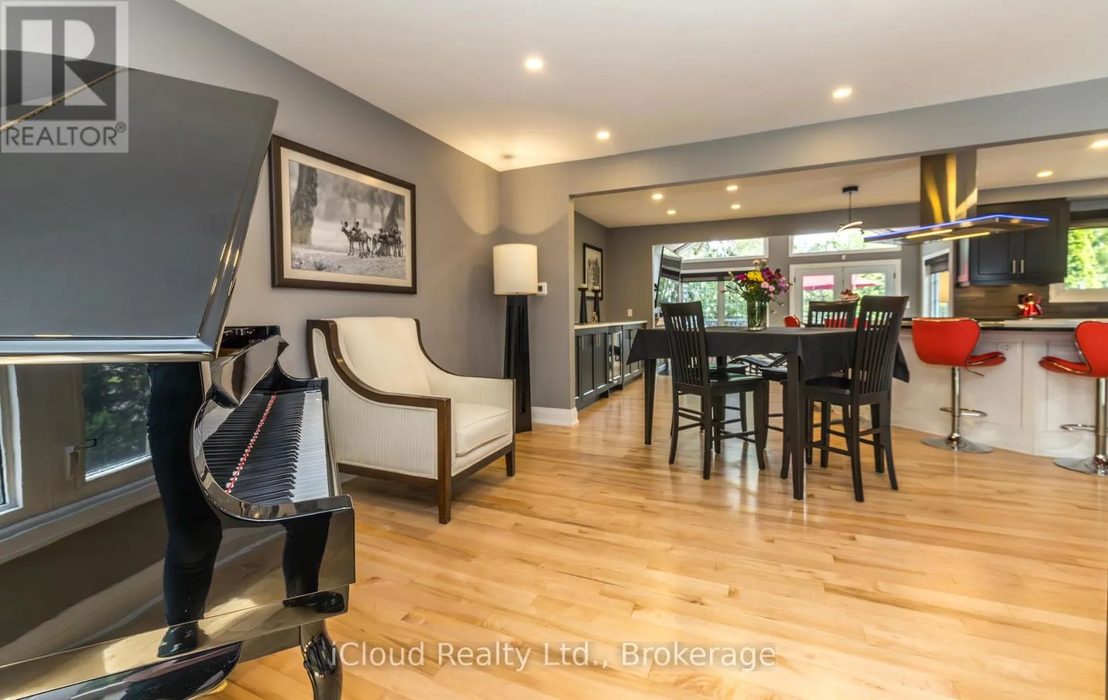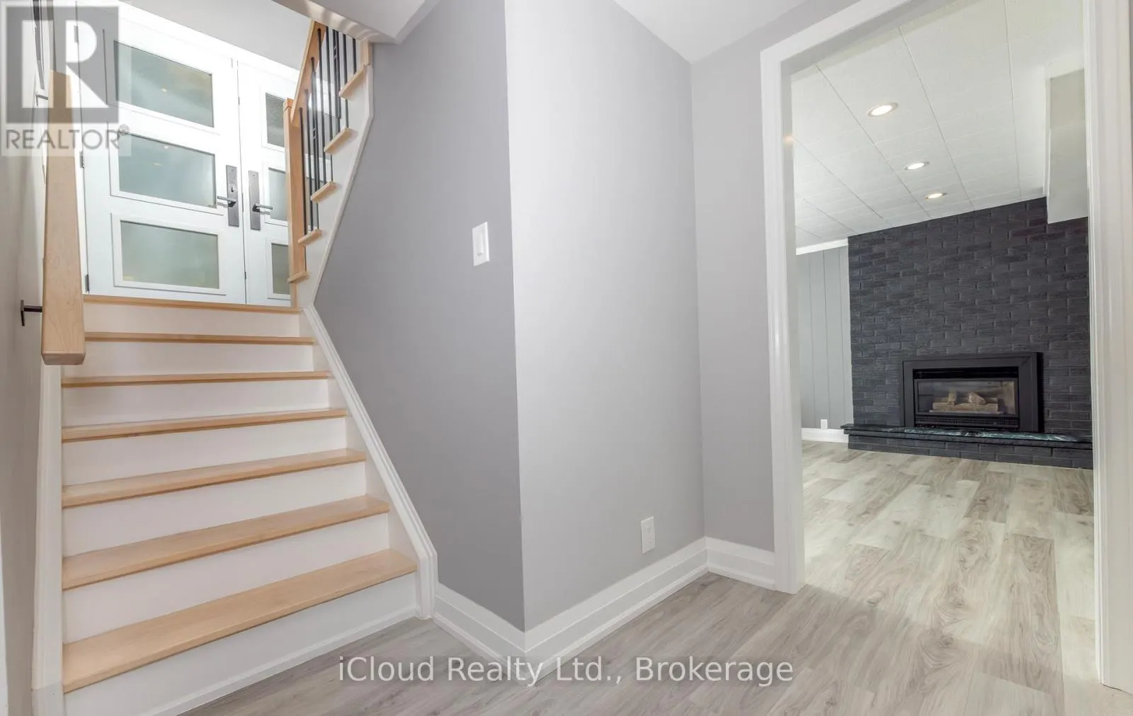 Cross Streets: Guelph Line & Mountain Grove Ave. ** Directions: Guelph Line to Mountain Grove. This upgraded, move-in-ready bungalow delivers over 1,500 sq. ft. of main floor living, combining modern comfort with timeless design. A striking sunken living room addition showcases cathedral ceilings, expansive windows with blackout blinds, and an abundance of natural light, an inviting space for both everyday living and entertaining. At the centre of the home is a chef's kitchen designed for style and function. Granite countertops, a gas cooktop, premium stainless steel venting, and built-in appliances set the stage, while an oversized island with a two-tone finish pairs cappuccino cabinetry with a crisp white breakfast bar. Extra-deep custom cabinets provide smart storage and organization. Maple hardwood flooring and LED pot lights run throughout the main level, complemented by two gas fireplaces that add warmth and character. The fully renovated lower level (2025) includes a sleek 3-piece bath, a large recreation room, and a versatile area perfect for a home office or fourth bedroom. Curb appeal is equally impressive, with double front doors, updated garage doors (2021), and a heated garage finished with epoxy flooring (2025), plus a dedicated workshop/hobby space. Outdoor living is elevated with a low-maintenance composite deck (2024) featuring a sunken hot tub and a new cover for year-round enjoyment. Major updates provide peace of mind: high-efficiency furnace (2020), oversized 5-ton A/C (2022), ProLine commercial-grade water heater (2020), 50-year fibreglass shingles (2012), and exterior sunshades (2020). Set close to parks, top schools, shopping, and transit, this home offers a rare blend of style, thoughtful upgrades, and lasting value. (id:27476)
