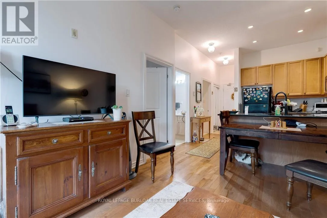 Cross Streets: Dryden & Upper Middle. ** Directions: Upper Middle to Dryden. Welcome to Times Square Condos! This bright and inviting 1 bedroom + Den main floor condo has so much to offer, including peaceful ravine views right outside your window. Inside, you'll find 9.5' ceilings, hardwood floors, pot lights, and a granite countertop kitchen that's perfect for everyday living. The generous den makes a great home office, study space, or even a small guest room, and the extra-wide bathroom adds comfort and convenience. You'll also enjoy 1 parking spot located close to the elevator and a locker for extra storage. The building is well cared for, with low fees and great management. Located close to Bronte Creek Provincial Park, schools, shopping, dining, and quick highway access, it's the perfect spot for both nature lovers and commuters. A wonderful opportunity to own in a great community. (id:27476)