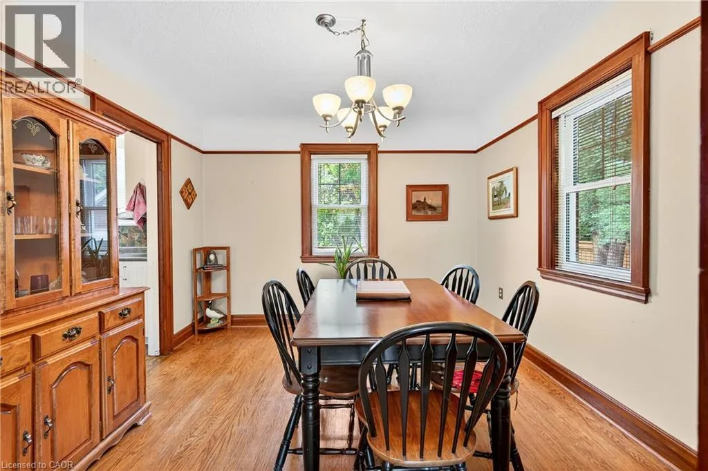 Take Plains Rd to King Rd Welcome to 1025 King Rd, Burlington â where opportunity meets comfort. This charming all-brick 1.5-storey detached home sits proudly on an oversized 60 x 140 ft lot, offering exceptional versatility for families and investors alike. With a separate basement walk-up featuring its own kitchen, bedroom, and full bath, this property is perfectly suited for an in-law suite or an income-generating rental unit. The main level blends classic character with modern functionality, featuring a welcoming living and dining area, a bright kitchen with direct walkout to a spacious deck, and a cozy den ideal for a home office or reading nook. A main-floor bedroom and full bath provide added accessibility and convenience. Upstairs, two additional bedrooms and another full bath create a comfortable retreat for family living. Outside, the detached garage and massive triple-wide driveway offer parking for 7+ vehicles â ideal for families, hobbyists, or guests. The large backyard invites endless possibilities for entertaining or future expansion. Perfectly located near parks, schools, shopping, and major routes, this property offers the best of Burlington living. Whether youâre seeking a forever home or a smart investment with multi-generational or rental potential, 1025 King Rd delivers both lifestyle and long-term value. (id:27476)