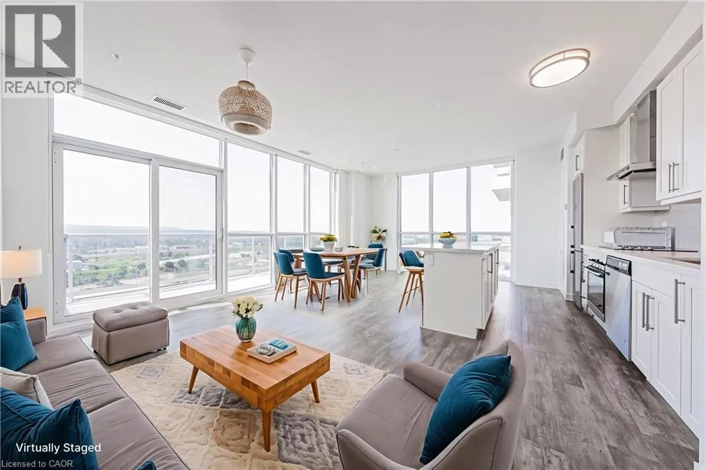 Fairview in bewtween Brant and Guelph Line A SOPHISTICATED Corner unit condo in the highly sough-after Paradigm Gran - unit #2001! This espansive 2 bedroom, 2 bathroom, 2 car Tandem parking, this condo offers approximately 1039 sq ft of contemporary living space and is located on the 20 storey hig-h-rise known as Paradigm Grand Condo's in the Brant/Fairview area of Burlington. Designed with style and comfort in mind, the unit features northeast exposure, letting in ample natural light. Upgraded Sleek finishings including quartz countertops, upgraded cabinetry and stainless-steel appliances, flooring thru-out! Prime location adjacent to Burlington Go Station, making citywide commuting effortless! Quick and easy access via QEW. 403 and 407, simplifying regional travel..Mere steps from downtown Burlington, offering boutique shopping, international dining, waterfront trails, Spencer Smith Park, and lifestyle amenities. Close proximity to Burlington Centre Mall and large retailers like Walmart - enabling everyday convenience. Residents at Paradigm Grand enjoy an impressively curated array of resort-style amenities: Indoor pool, hot tub, sauna, fully equipped fitness centre, half court basketball gym, outsoor terrace with BBQ and lounge areas, dog park and wash stations for pet owners, multiple party rooms, guest suites, theatre room, kids' playroom, games room and more. 24 hour concierge, secure key-fob access, video surveillance and controlled entry systems - ensuring safety and elevated lifestyle. (id:27476)