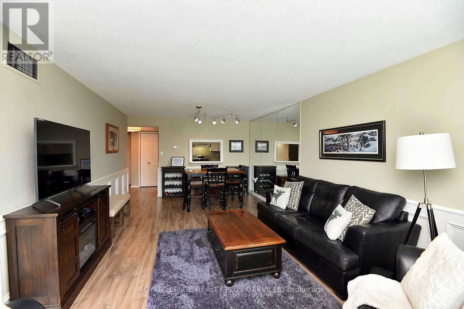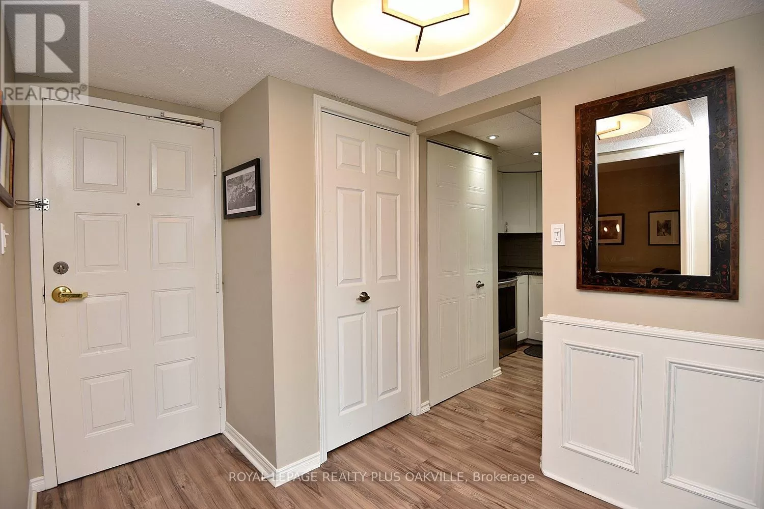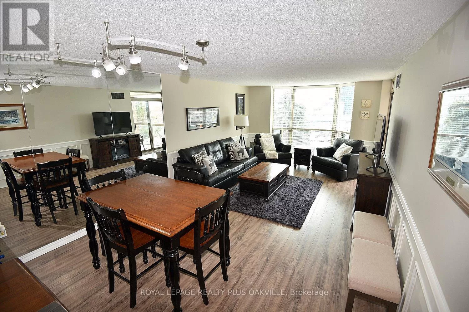 Cross Streets: Lakeshore/Maple Ave. ** Directions: Lakeshore Rd. East/West of Maple Ave. Welcome to this stunning 1-bedroom plus DEN condo, provides 910 sq. ft. of thoughtfully designed living space. The spacious bedroom comes complete with a walk-in closet and the DEN provides flexibility for a home office or guest space. The bright and inviting living and dining area plus the private balcony is perfect for enjoying your morning coffee or unwinding after a long day. The updated kitchen features modern finishes, while fresh paint and updated light fixtures add a contemporary touch throughout the unit. With in-suite laundry and an updated furnace and A/C (2023), this condo provides both convenience and comfort. Beyond the unit, the building provides an array of fantastic amenities, including an outdoor pool, BBQ area and gazebo, as well as a gym, sauna, car wash, games room, and a party room with a full kitchen. Situated in an unbeatable location, this condo is just a short walk to the Waterfront, Spencer Smith Park, and The Art Gallery of Burlington. You'll also find yourself steps away from trendy shops, popular restaurants, and directly across from Jo Brant Hospital. Move-in ready and waiting for you to enjoy don't miss this incredible opportunity! (id:27476)