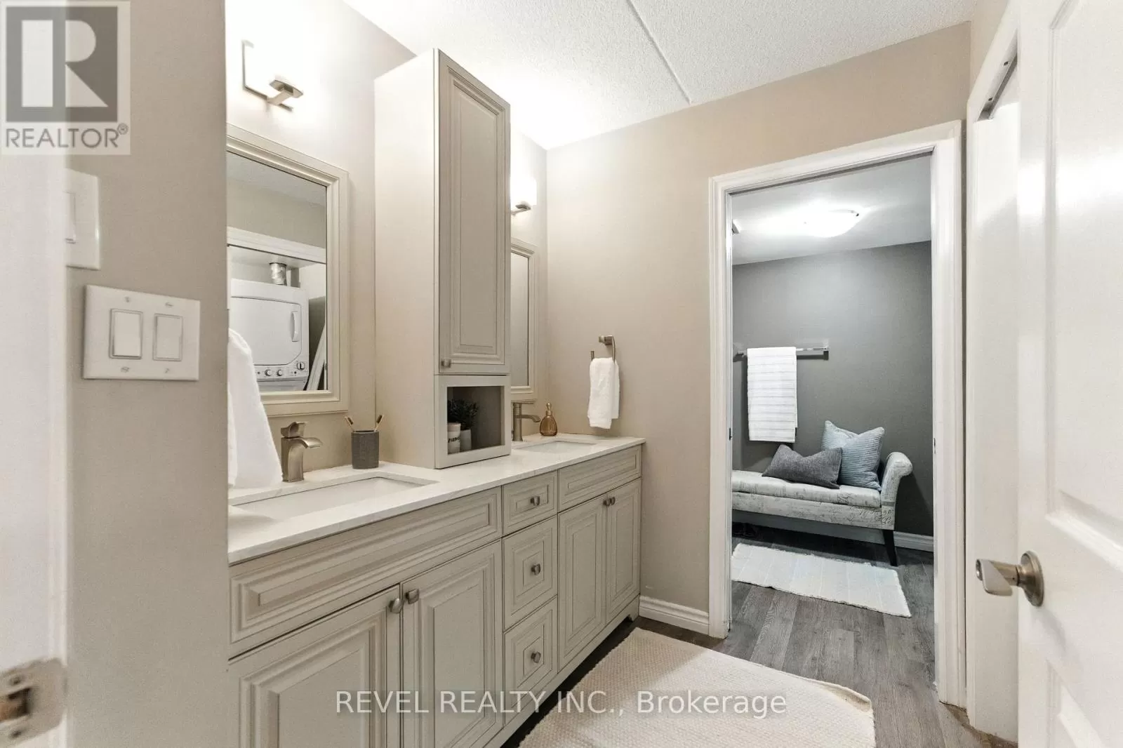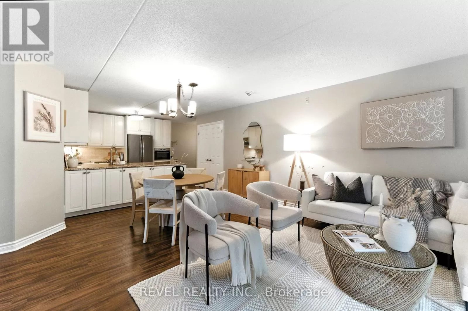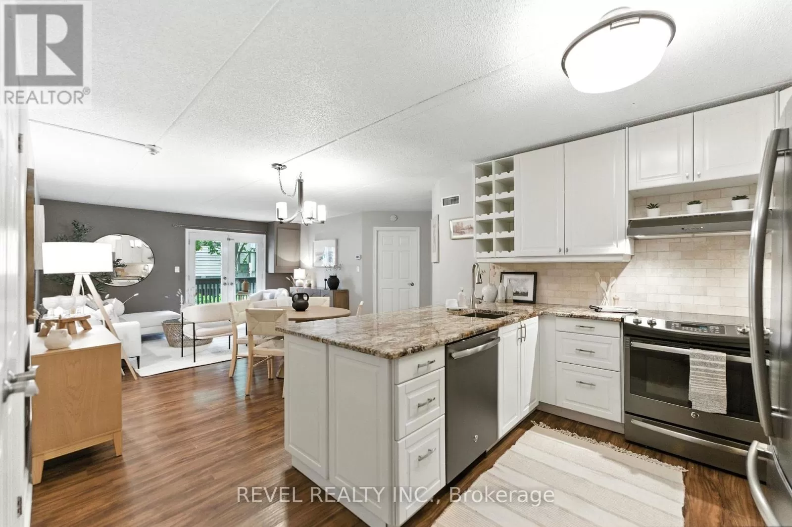 Upper Middle and Cleaver Welcome to Headon Forest! This beautifully updated ground-floor 2-bedroom, 1-bathroom condo in one of Burlingtons most desirable communities. Ideal for retirees or those seeking stair-free living, this bright and spacious unit features an upgraded kitchen with stainless steel appliances, built-in wall oven, granite countertops, and additional cabinetry for extra storage. The modern 4-piece bathroom includes a double sink vanity with granite counters. Enjoy the convenience of two parking spaces one underground and one surface spot plus immediate or flexible closing options. A perfect blend of comfort, style, and accessibility! (id:27476)