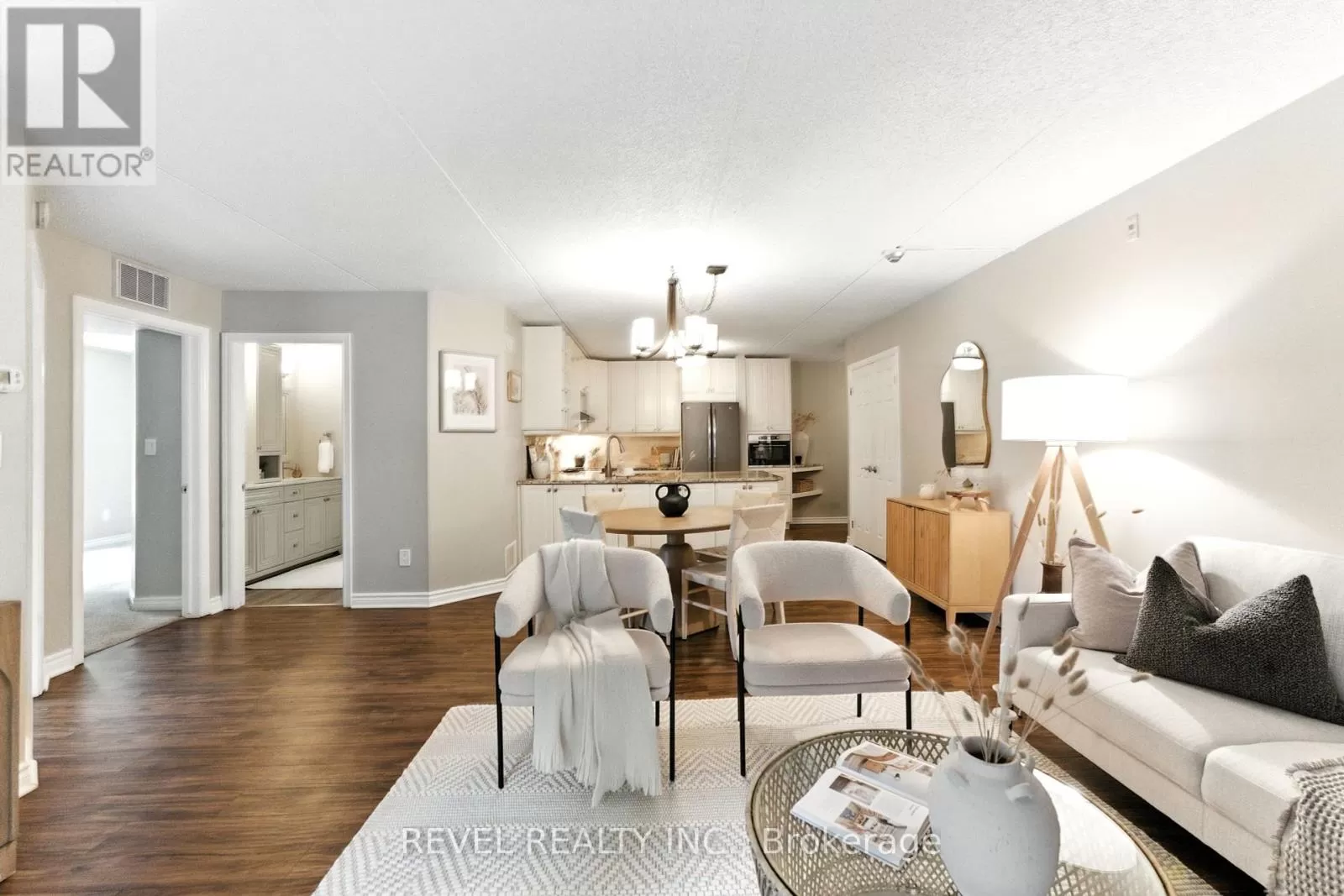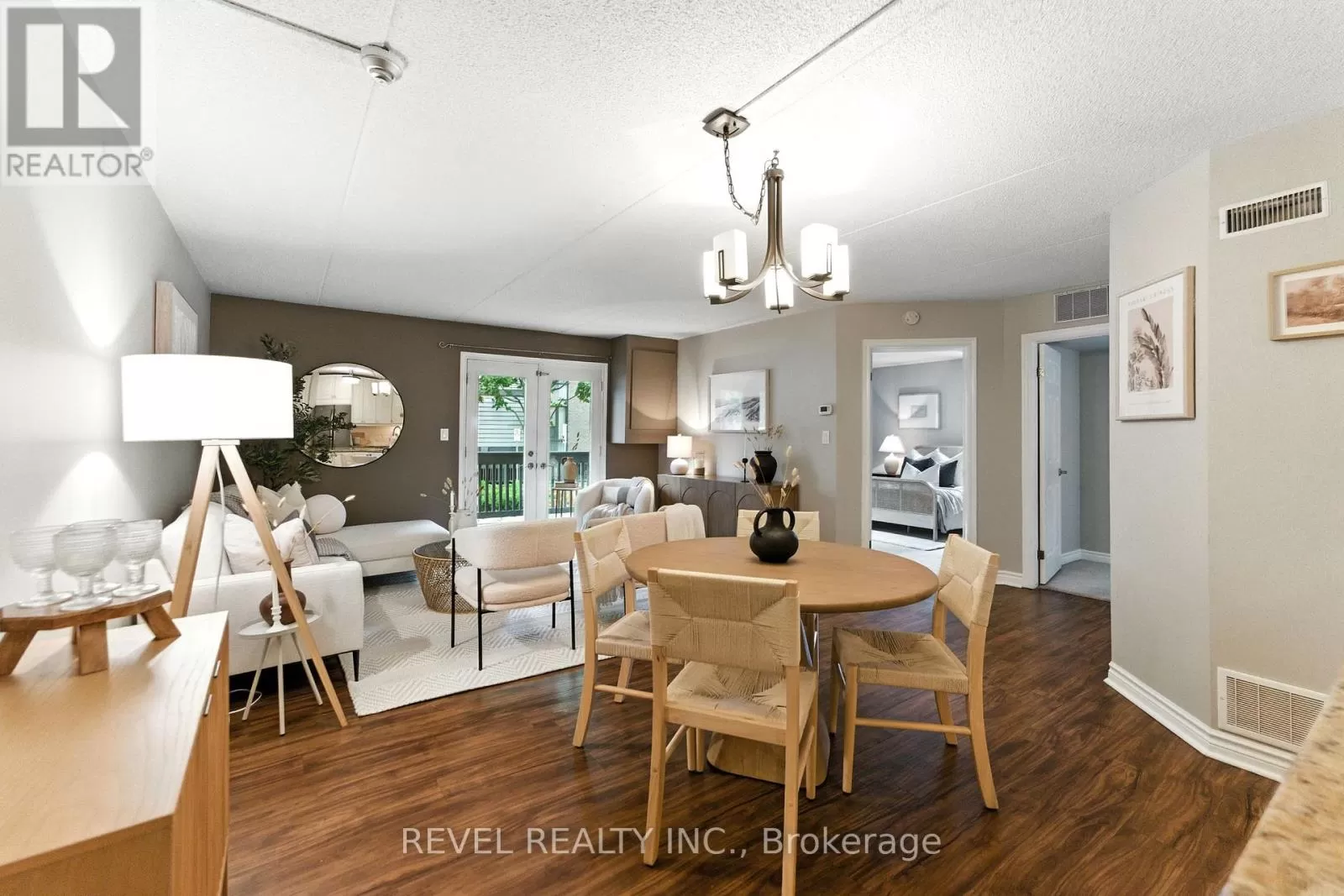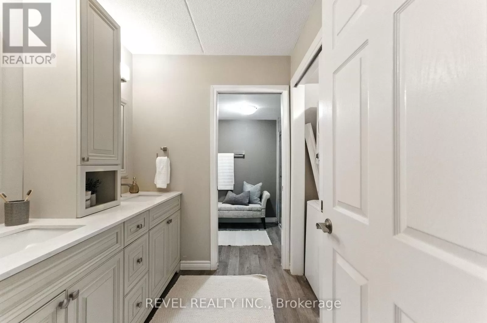 Upper Middle and Cleaver Welcome to Headon Forest! This beautifully updated ground-floor 2-bedroom, 1-bathroom condo in one of Burlingtons most desirable communities. Ideal for retirees or those seeking stair-free living, this bright and spacious unit features an upgraded kitchen with stainless steel appliances, built-in wall oven, granite countertops, and additional cabinetry for extra storage. The modern 4-piece bathroom includes a double sink vanity with granite counters. Enjoy the convenience of two parking spaces one underground and one surface spot plus immediate or flexible closing options. A perfect blend of comfort, style, and accessibility! (id:27476)