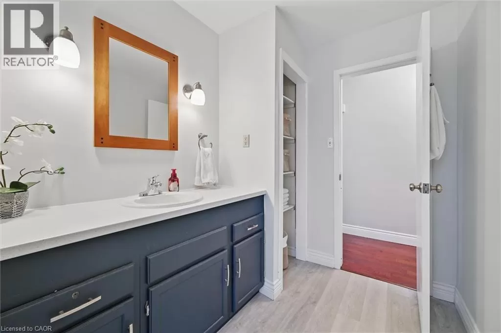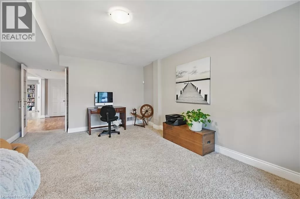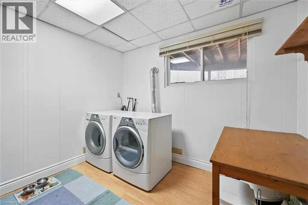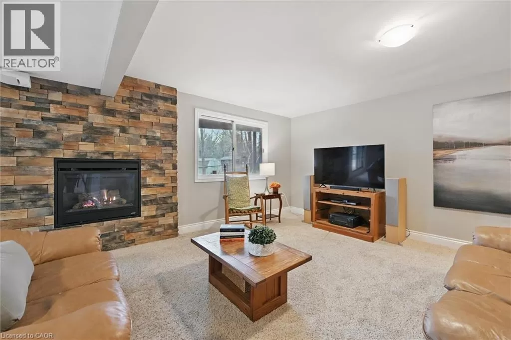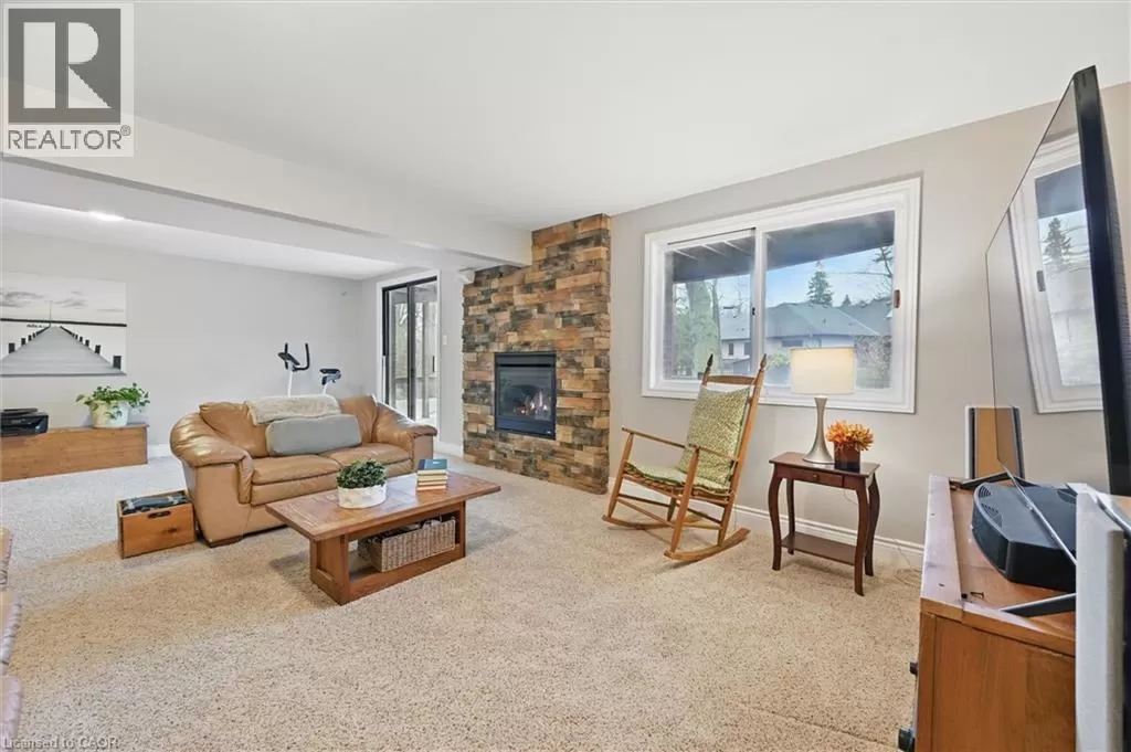 North Shore to King Road Enjoy a unique private cottage setting with all the amenities of city life nearby. Nestled in mature trees with an extra deep lot, this Aldershot home offers high ceilings on 2 floors and a bright, efficient design throughout. The double door entrance leads to a large foyer and main floor with exposed brick, vaulted beamed ceilings, oversized windows and a skylight. The open concept Living and Dining rooms feature gleaming hardwood floors and patio doors leading to a wrap-around multi-level deck. The Kitchen features storage and counter space galore with peninsula and separate breakfast bar area with more patio doors to the deck. The main floor Primary Bedroom features a 3-piece ensuite and oversized closet. Two additional Bedrooms and an updated 4-piece Bathroom complete this level. The Lower level features a spectacular Recreation room with a second fireplace and walkout to the back patio. A renovated 3-piece Bath, Office and Bedroom make it the perfect opportunity for additional family or guests. A separate Laundry room and Utility room with garage access offer even more storage space. With the Bruce Trail in close proximity and Lake Ontario down the road, this fabulous family home is a bird and nature loverâs dream with walkable access to schools, parks, trails, golf, waterfront and shopping. (id:27476)