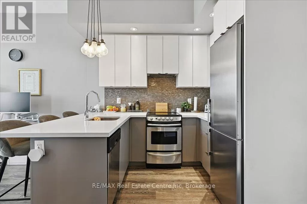 Cross Streets: Waterdown Rd, King Rd. ** Directions: HWY 403 to Waterdown Rd. South on Waterdown, Left on Plains Rd East. Welcome to this immaculate and affordable top floor Condo with a beautiful view of the mature, green and sought after neighbourhood of LaSalle! The location here is ideal for wherever you may have to commute to, as it is just minutes from the 403 and 407, Aldershot GO Station, and perfect distance from all major cities you may need to visit for work or pleasure. This well kept home boasts Quartz countertops, loads of natural light, in suite laundry, On Demand Water Heater, recently replaced AC, 10 foot ceilings, and a smart layout that makes the home feel much larger than it is. The building itself is perfectly kept, clean and equipped with ammenities such as Gym and Exercise room, elegant party room/lounge and kitchen facilities, games area with pool table and a nice patio with communal BBQ's, not to mention the incredible amount of visitor parking in addition to your owned underground parking spot. As mentioned, the location here is key, as it is ideally close to shopping and ammenities such as Mapleview Mall, Costco, Ikea, Golf Courses, walking trails, Burlington Waterfront, Public Transit and Schools. Book your showing today, and come see what this beautiful Condo and area has to offer!! Offers Are Welcome Anytime!! (id:27476)