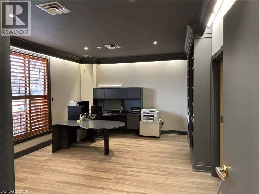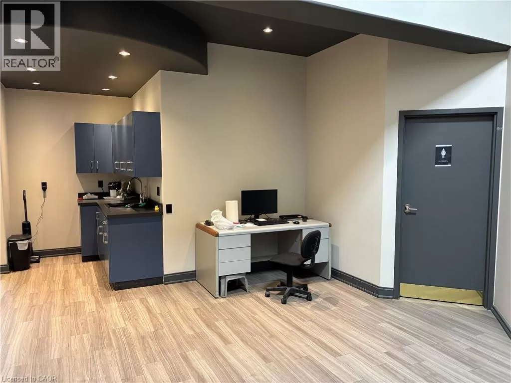 On the Toronto side of KIng Rd (east east) between the train tracks and the 403 overpass. Located on the east side of King Road, this is the front 40% of the building. Comes with spectacular office space of approximately 2500 sq. ft. consisting of 2 Large private offices private each with private washrooms offices. The balance 1800 sq. ft. being fully air conditioned open office/showroom/studio/shop work space. The drive in loading door measures 10' H x 10' W. 4 washrooms 6+ parking. Tenants proportionate share of the Taxes Maintenance and Insurance is estimated to be $5.50 per sq. ft. per annum for 2025. Hydro service is a 100 amps @ 600 volts 3 phase. BONUS FREE OF CHARGE is a 500 sq. ft. mezzanine that can be used for storage or production, employee meeting/training, administration, tool storage and more. (id:27476)