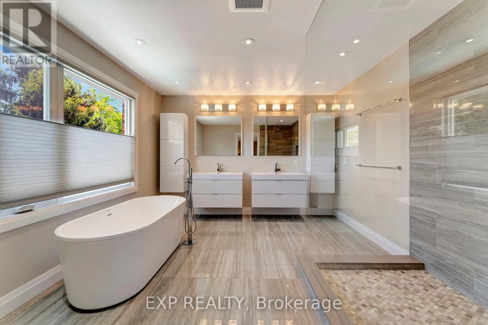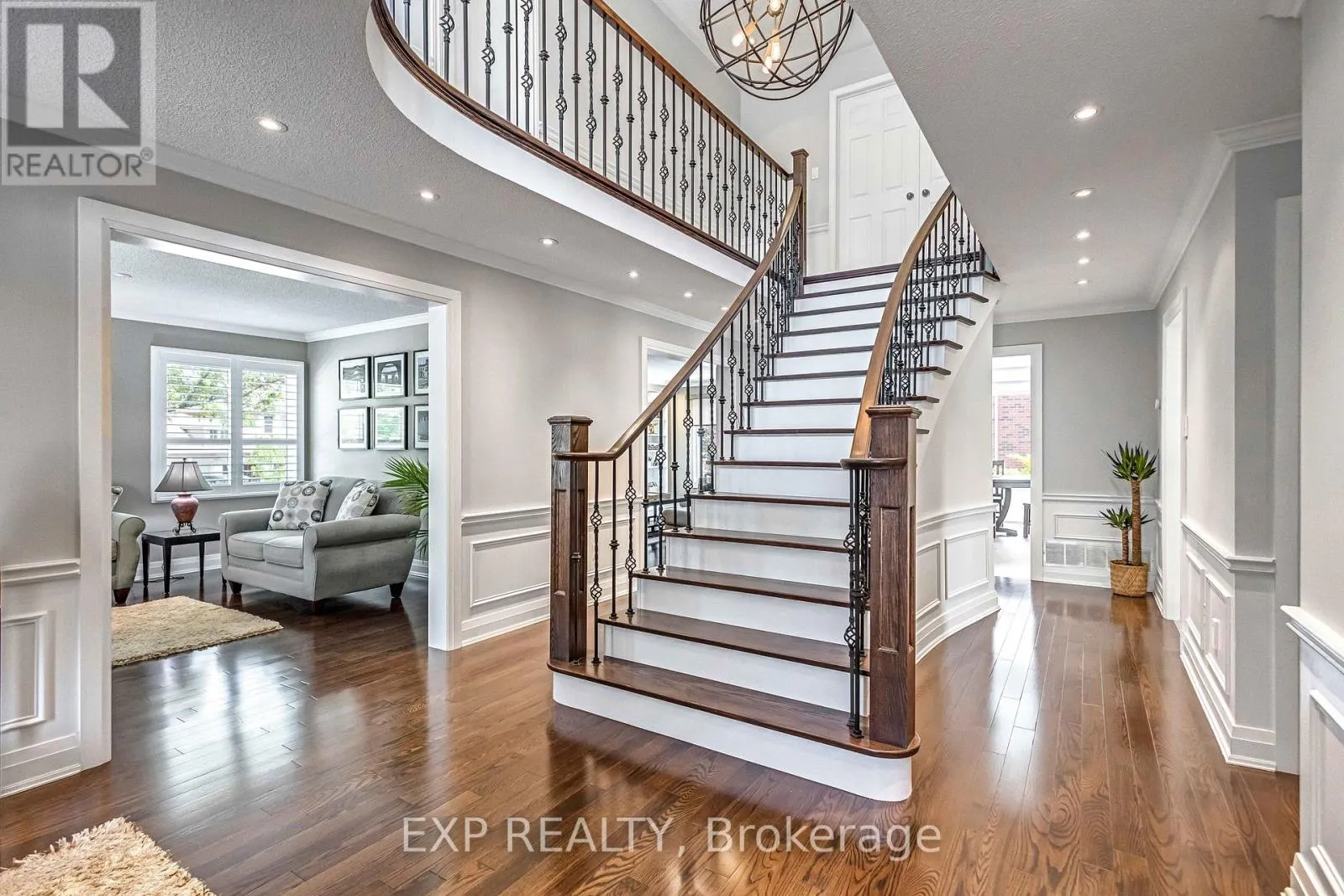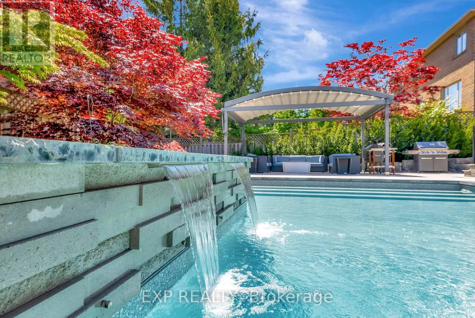 Cross Streets: Kerns Road and Winterberry. ** Directions: North Service Road to Kerns Road to Winterberry Drive. Where timeless elegance meets modern luxury in the heart of Burlingtons prestigious Tyandaga neighbourhood. This fully renovated, four-bed home offers an exceptional blend of sophistication, comfort, and style making it the perfect place to call home. From the moment you arrive, the professionally landscaped front yard sets the tone with its lush perennial gardens, stately armour stones, and inviting stone patioan ideal spot to enjoy your morning coffee under the shade of mature trees. Step inside to a grand foyer highlighted by a sweeping Scarlett OHara staircase. The open-concept kitchen/dining area is the heart of this home, designed for both everyday living and elegant entertaining. Featuring a nine-foot island, cocktail bar with beverage fridge. The main floor also offers a cozy family room with custom built-ins and a sleek, stone-surround fireplace, a spacious formal living room perfect for quiet gatherings, and a large office ideal for working from home. A stylish two-piece bathroom and laundry room complete the main level. Upstairs, the luxurious primary suite features a spa-inspired 5-piece ensuite with a large walk-in shower, a cozy reading nook, and two walk-in closets. Three additional generously sized bedrooms and a beautifully renovated 5-piece bathroom complete the upper level. Step out from the kitchen into your private backyard oasis. Relax beneath the modern pergola with retractable roof perfect for enjoying sunshine or shade all season. The showstopper of the yard is the custom saltwater pool, complete with built-in stairs, a sleek stone water feature, and dual waterfalls - your very own resort-style escape. Additional highlights include a double car garage with inside entry and backyard access, double driveway with ample parking, irrigation system, soffit lighting, hardwood flooring, Lutron SMART lighting system, California shutters, central vacuum, pot lights, new carpet (2025), and fresh paint throughout. Experience luxury living in Tyandaga (id:27476)