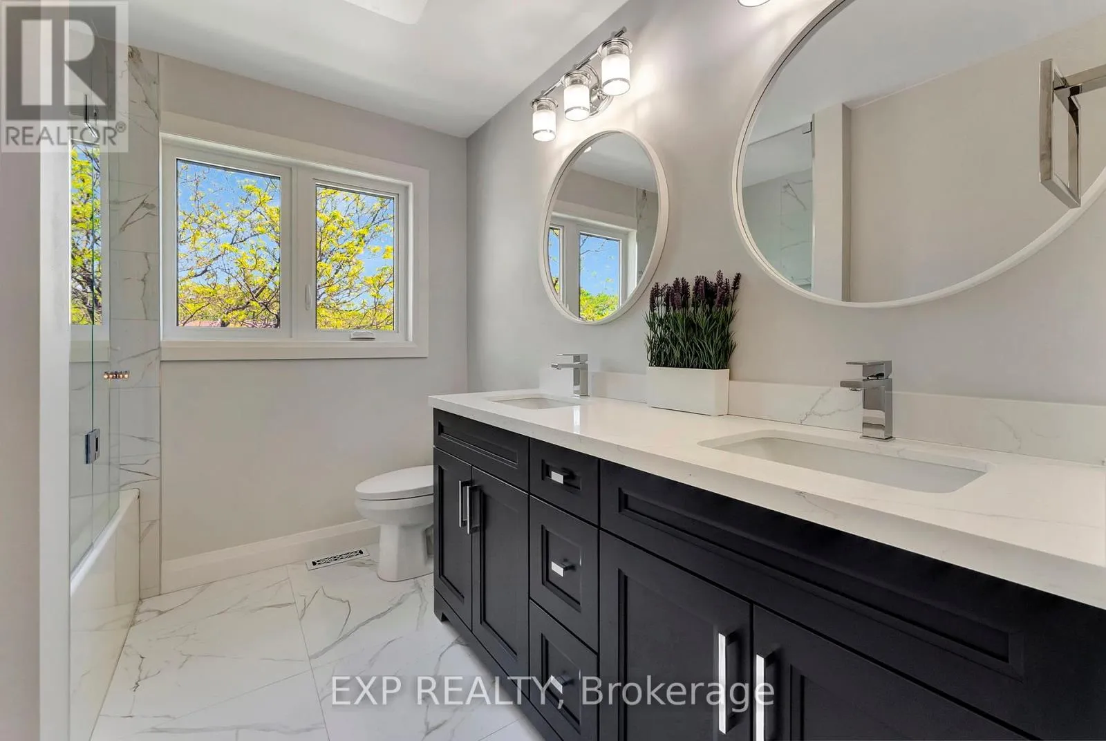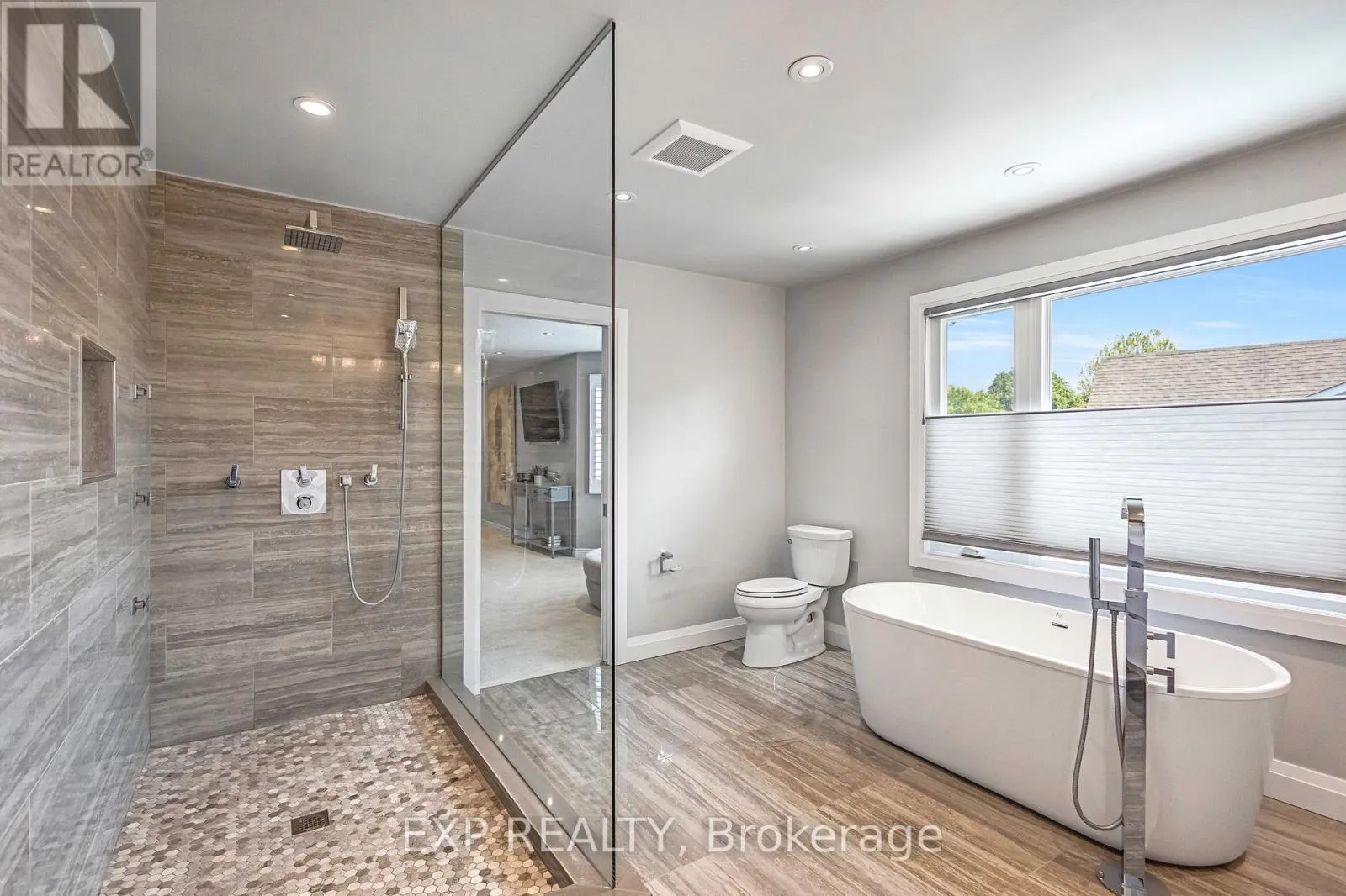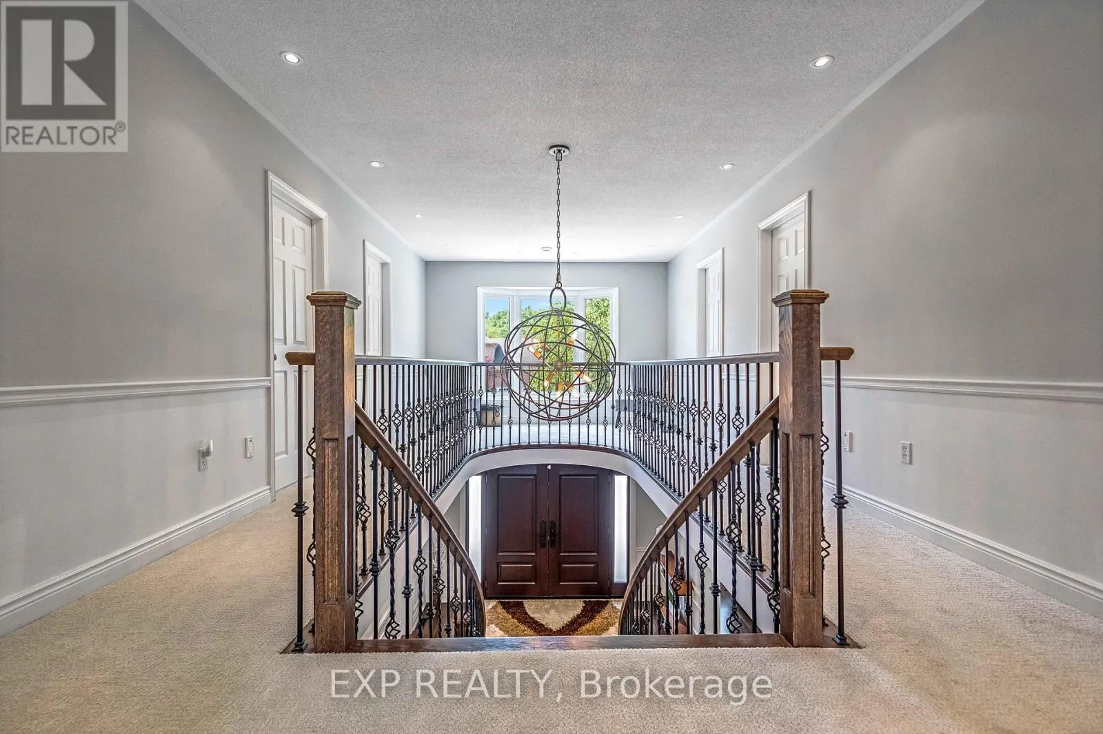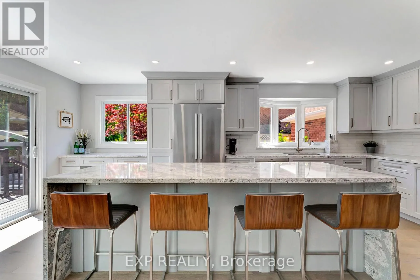 Cross Streets: Kerns Road and Winterberry. ** Directions: North Service Road to Kerns Road to Winterberry Drive. Where timeless elegance meets modern luxury in the heart of Burlingtons prestigious Tyandaga neighbourhood. This fully renovated, four-bed home offers an exceptional blend of sophistication, comfort, and style making it the perfect place to call home. From the moment you arrive, the professionally landscaped front yard sets the tone with its lush perennial gardens, stately armour stones, and inviting stone patioan ideal spot to enjoy your morning coffee under the shade of mature trees. Step inside to a grand foyer highlighted by a sweeping Scarlett OHara staircase. The open-concept kitchen/dining area is the heart of this home, designed for both everyday living and elegant entertaining. Featuring a nine-foot island, cocktail bar with beverage fridge. The main floor also offers a cozy family room with custom built-ins and a sleek, stone-surround fireplace, a spacious formal living room perfect for quiet gatherings, and a large office ideal for working from home. A stylish two-piece bathroom and laundry room complete the main level. Upstairs, the luxurious primary suite features a spa-inspired 5-piece ensuite with a large walk-in shower, a cozy reading nook, and two walk-in closets. Three additional generously sized bedrooms and a beautifully renovated 5-piece bathroom complete the upper level. Step out from the kitchen into your private backyard oasis. Relax beneath the modern pergola with retractable roof perfect for enjoying sunshine or shade all season. The showstopper of the yard is the custom saltwater pool, complete with built-in stairs, a sleek stone water feature, and dual waterfalls - your very own resort-style escape. Additional highlights include a double car garage with inside entry and backyard access, double driveway with ample parking, irrigation system, soffit lighting, hardwood flooring, Lutron SMART lighting system, California shutters, central vacuum, pot lights, new carpet (2025), and fresh paint throughout. Experience luxury living in Tyandaga (id:27476)