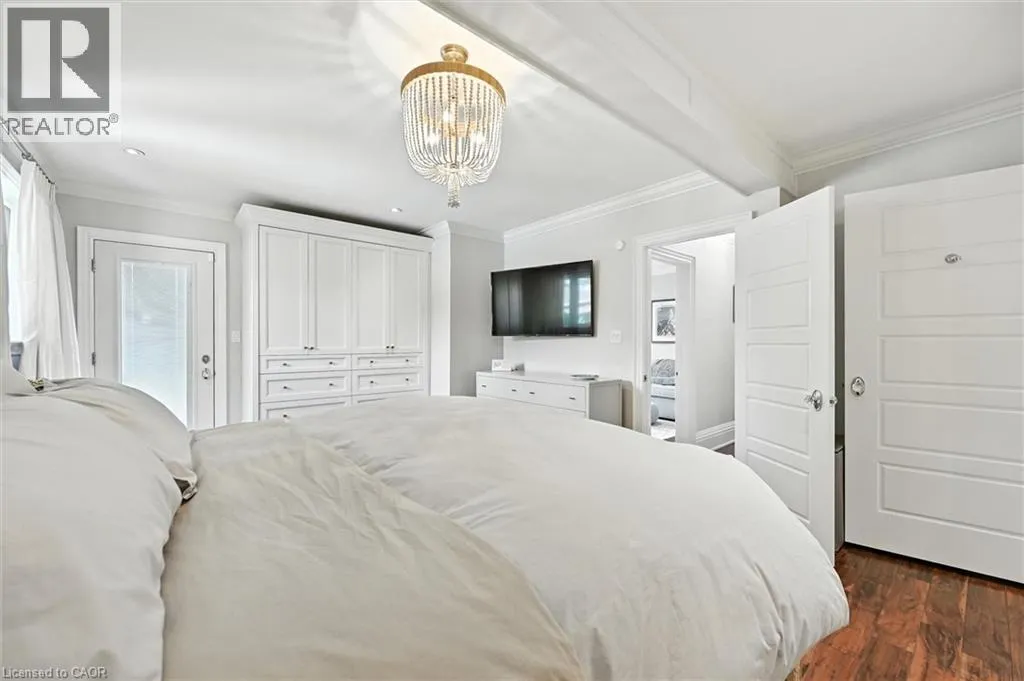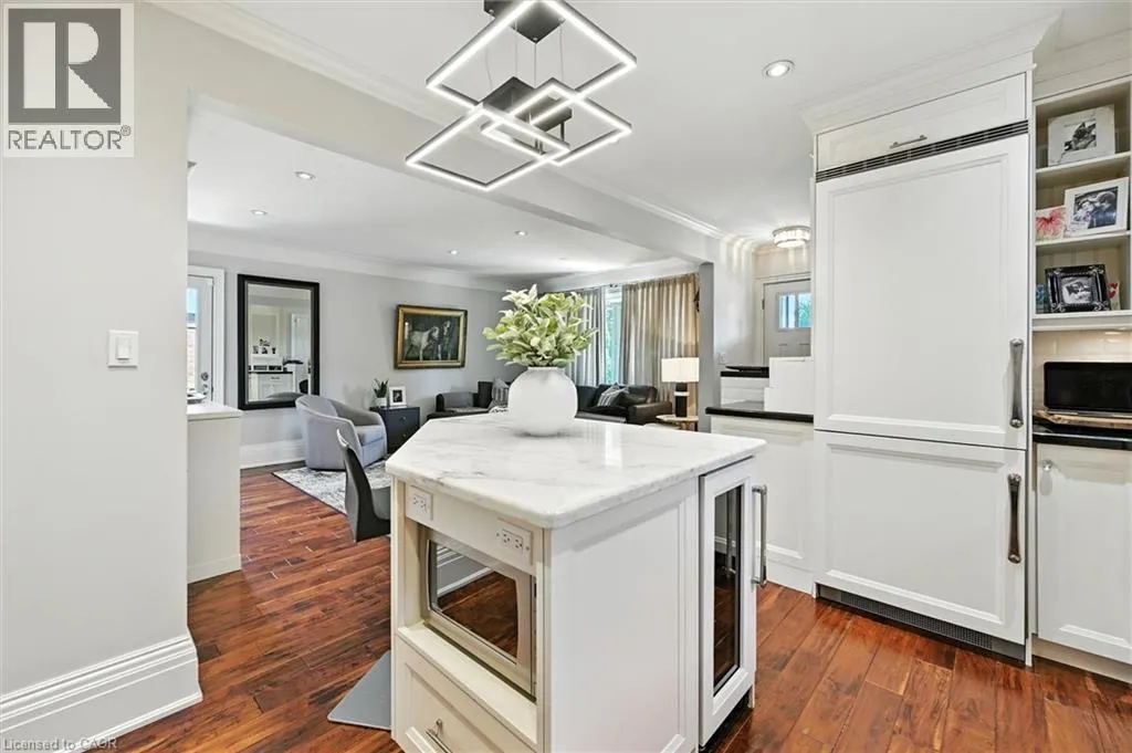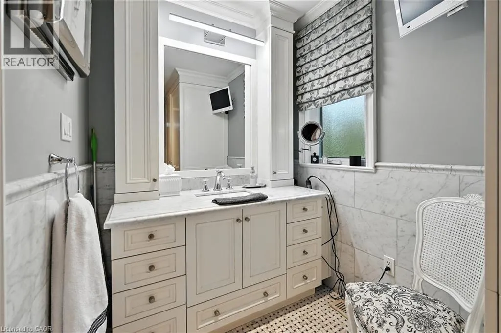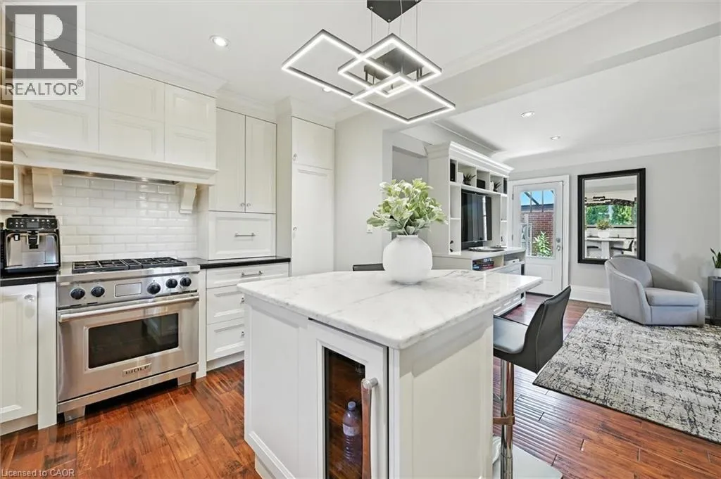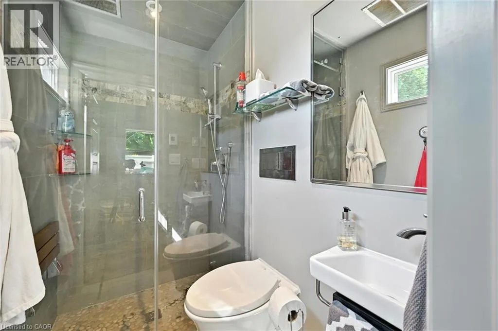 Brant to Ghent This highly customized bungalow in Central Burlington offers the perfect blend of modern luxury, convenience, and lifestyleâideal for downsizers or young professionals seeking turnkey living with exceptional amenities. Step inside to find a thoughtfully designed main floor featuring a custom chefâs kitchen with premium appliances, including a Wolf range, and elegant finishes throughout. The spacious primary retreat offers ensuite privileges to a Carrara marble bathroom with Grohe fixtures, heated floors, and spa-like design. The lower level includes a self-contained one-bedroom in-law suite with a full kitchen, in-suite laundry, and a beautifully finished bathroom in natural slateâperfect for extended family, guests, or rental potential. Outdoors, this property truly shines. A stunning pool house offers additional living space with a full bath featuring a steam shower, a relaxing sauna, built-in speakers and sound system, and a glass garage door that seamlessly opens to the backyard. The saltwater inground pool, hot tub, outdoor bar, and multiple seating areas create an entertainerâs paradise. All of this is set on a beautifully landscaped lot just minutes to downtown Burlington, the lakefront, shops, restaurants, and easy highway access. (id:27476)