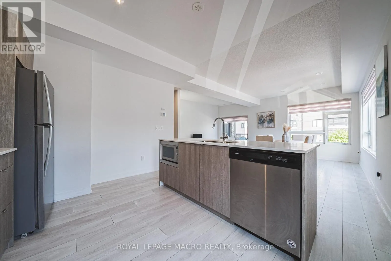 Cross Streets: Plains Road East. ** Directions: Waterdown Rd to Plains Rd E to Cooke Blvd. Location, location, location! This modern 3-bedroom, 1.5-bath, 3-storey corner end-unit townhome condo offers approximately 1,600 sq. ft. of stylish, low-maintenance living in one of Burlington's most desirable and commuter-friendly locations. As a corner unit, it benefits from extra windows that fill the home with natural light. The second floor features a beautifully designed open-concept layout, with a spacious living and dining area that's perfect for entertaining and easy to furnish to suit your style. The kitchen is both functional and elegant, with quartz countertops, a designer backsplash, stainless steel appliances, and a large island with breakfast bar seating ideal for hosting or casual dining. A convenient 2-piece powder room is also located on this level. The third floor includes three bright bedrooms, a full 4-piece bathroom, and bedroom-level laundry for added convenience. The top level boasts an oversized private rooftop terrace with stunning views of Burlington's north and east skyline perfect exposure for enjoying beautiful scenery both day and night. Step out to an additional balcony from the dining area for even more outdoor space. Located just steps from the Aldershot GO Station and minutes from major highways, this home is perfect for commuters. Enjoy close proximity to Lake Ontario, marinas, parks, trails, the Royal Botanical Gardens, Burlington Golf & Country Club, shopping, restaurants, and all the amenities you need. Bright, modern, and move-in ready this home offers the perfect blend of comfort, convenience, and style. (id:27476)