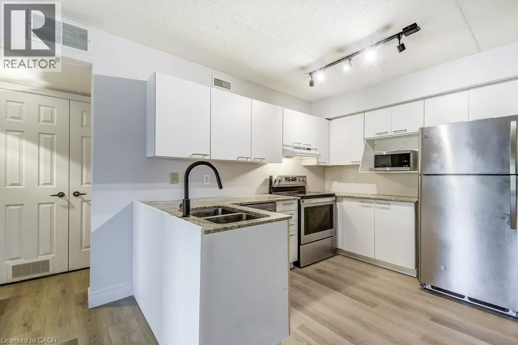 Upper Middle Rd, Cleaver Ave. Terrific opportunity in Headon Forest, Burlington! This bright, newly renovated 1 bedroom + den condo features brand new vinyl flooring, a modern updated bathroom, new washer & dryer, and fresh paint throughout. The open-concept layout includes a spacious bedroom and a versatile denâperfect for a home office, guest space, or workout room. Enjoy the ease of a ground-level entrance, making everyday tasks like carrying groceries a breeze. Step outside to your southeast-facing raised balcony, an inviting spot for morning coffee or evening unwinds. With in-suite laundry, a locker, and one underground parking space, this condo has everything you need. Ideally located within walking distance to restaurants, shops, and Tansley Woods Community Centre, with quick access to the 403, 407, QEW, and both Burlington & Appleby GO Stations. A fantastic choice for commuters and anyone seeking a vibrant, connected lifestyle! (id:27476)