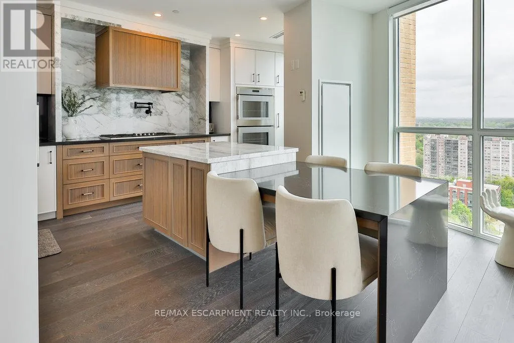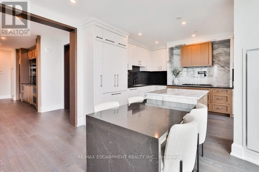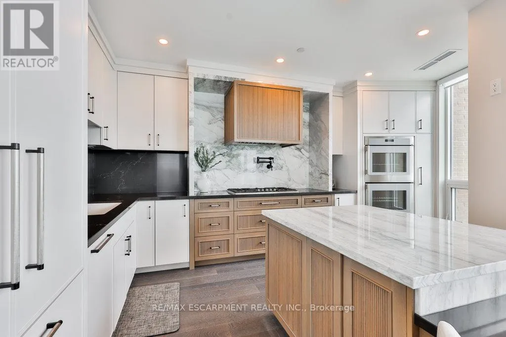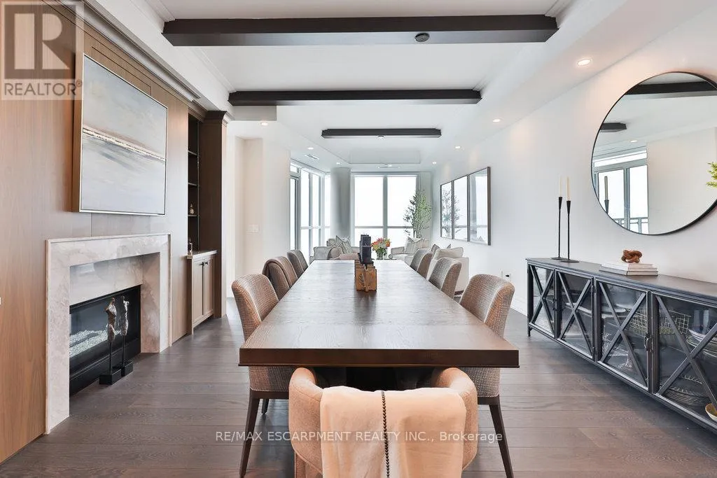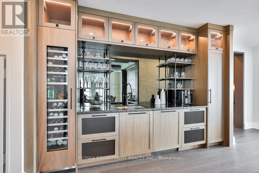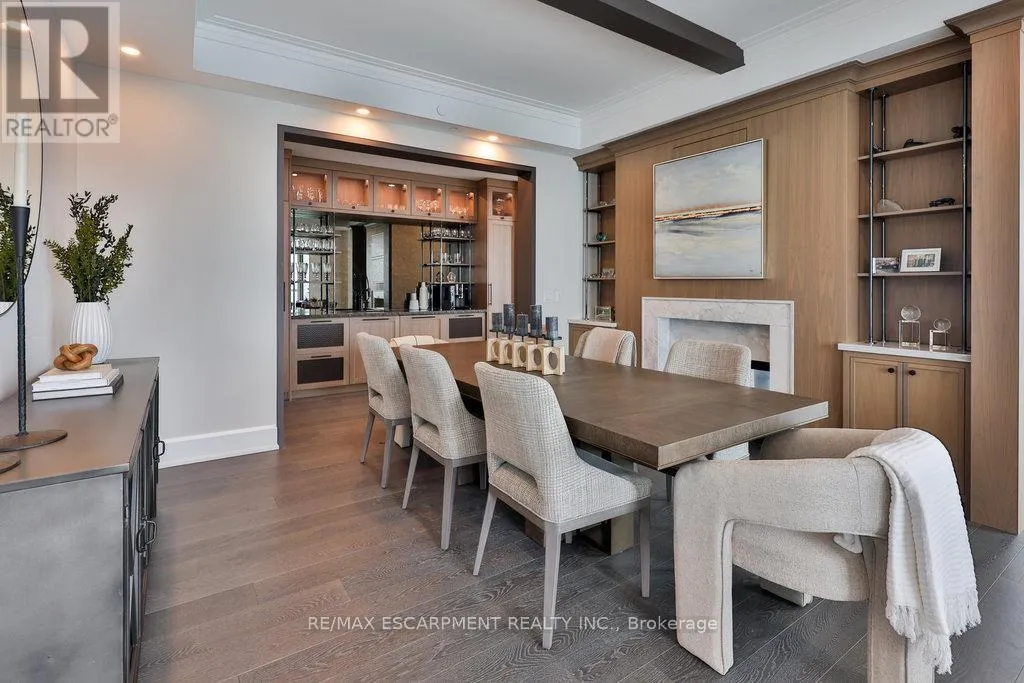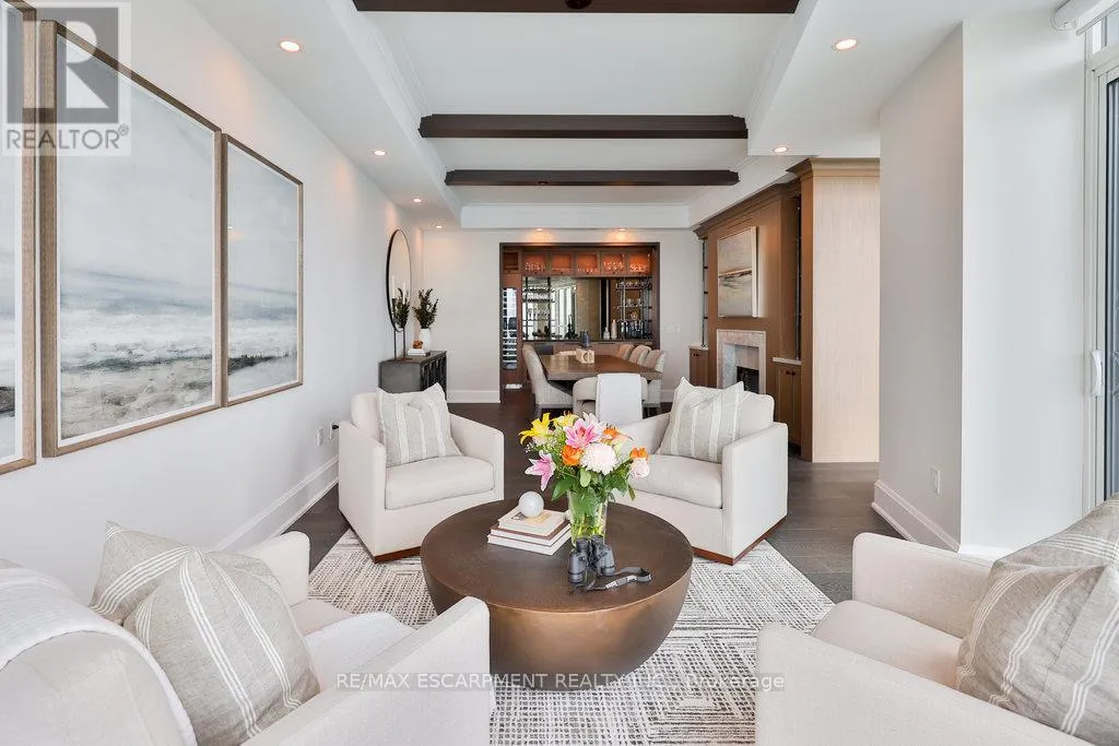 Cross Streets: Brant and Lakeshore. ** Directions: BRANT ST TO LAKESHORE RD. Occupying the entire east side of the Bridgewater Private Residences with The Pearl Hotel, this 3,234 sq ft sub-penthouse offers rare scale, privacy, and panoramic views. Available fully furnished and accessorized just bring your bags and move in. Uninterrupted sightlines span Lake Ontario south to Niagara, east to the CN Tower, and north over Burlington's downtown and the Escarpment. Dual entrances separate living and bedroom wings. Three bedrooms with private ensuites, a home office, wine cellar, and walk-in laundry with sink. Wide-plank hardwood, Restoration Hardware lighting, and a standout primary ensuite with heated floors, gold fixtures, and a lake-facing walk-in shower. Dining area with custom bar and second dishwasher. A glass-wrapped lounge hovers over the shoreline with front-row views. Includes three-car parking. Residents enjoy gym, spa, indoor pool, Isabel's, café, room service, weekly events, and private access to The Pearl Hotel. Steps to the lake and Burlington's best. Luxury Certified. (id:27476)