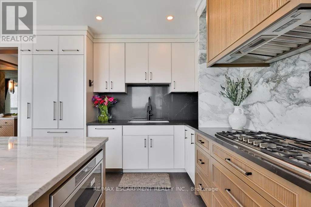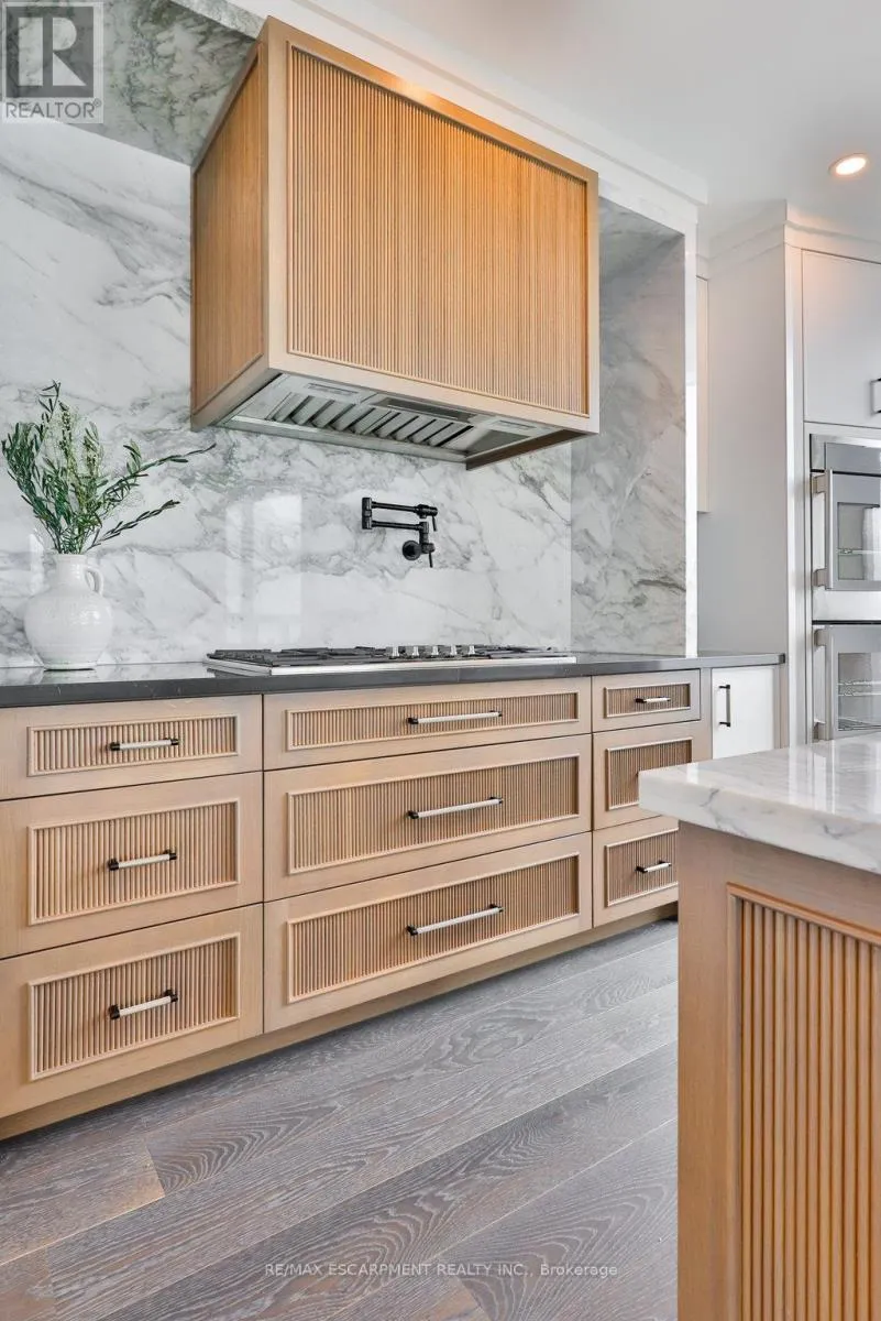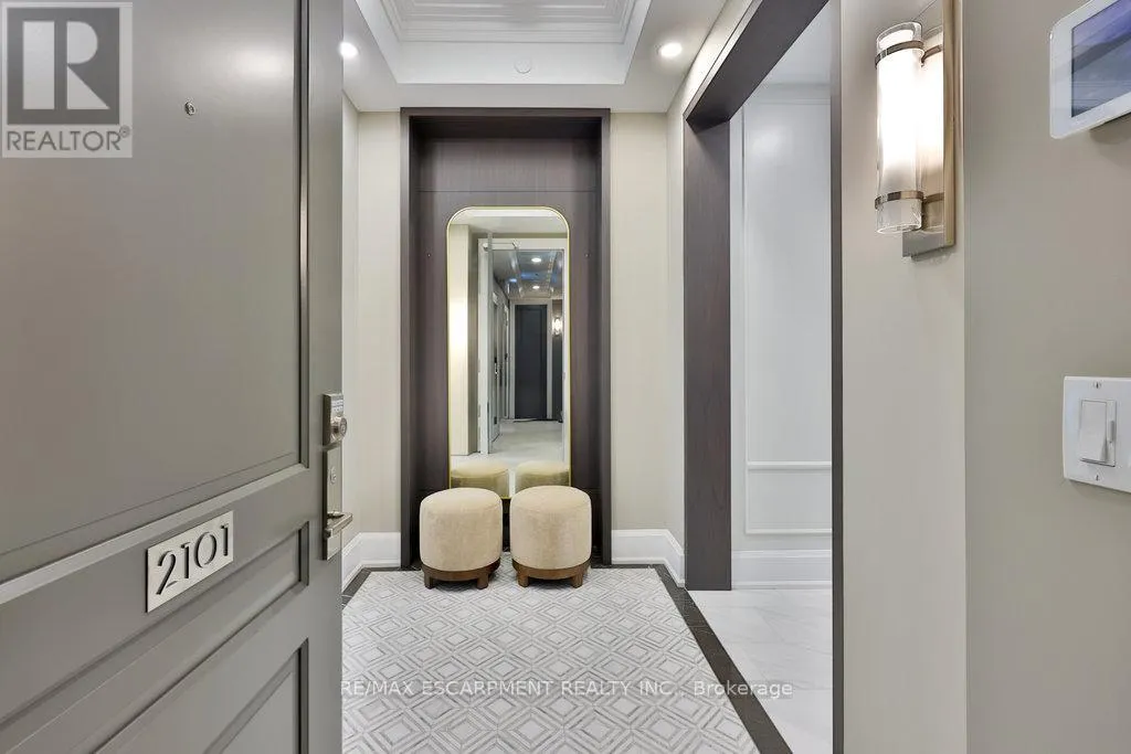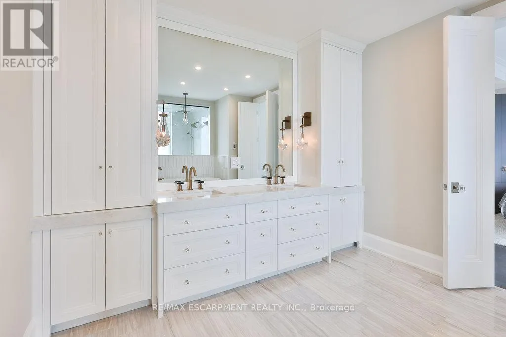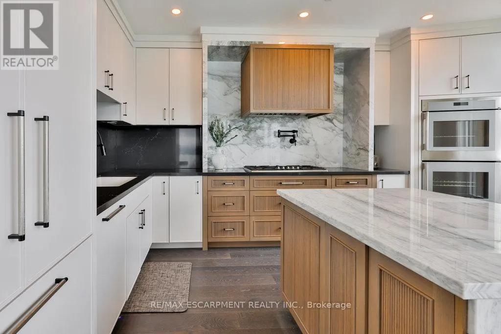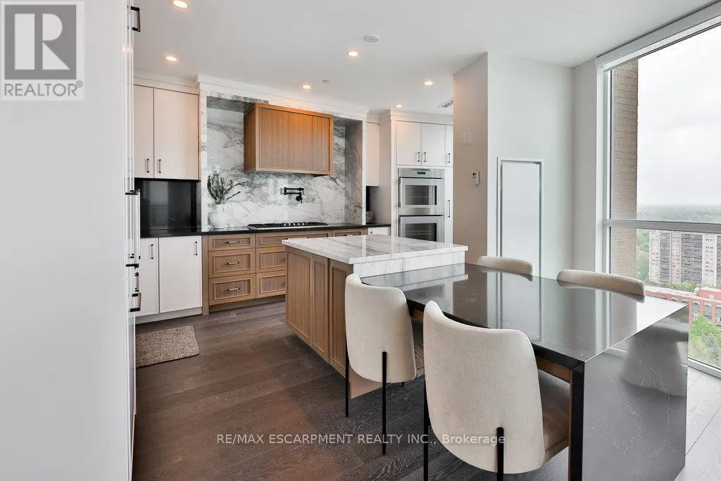 Cross Streets: Brant and Lakeshore. ** Directions: BRANT ST TO LAKESHORE RD. Occupying the entire east side of the Bridgewater Private Residences with The Pearl Hotel, this 3,234 sq ft sub-penthouse offers rare scale, privacy, and panoramic views. Available fully furnished and accessorized just bring your bags and move in. Uninterrupted sightlines span Lake Ontario south to Niagara, east to the CN Tower, and north over Burlington's downtown and the Escarpment. Dual entrances separate living and bedroom wings. Three bedrooms with private ensuites, a home office, wine cellar, and walk-in laundry with sink. Wide-plank hardwood, Restoration Hardware lighting, and a standout primary ensuite with heated floors, gold fixtures, and a lake-facing walk-in shower. Dining area with custom bar and second dishwasher. A glass-wrapped lounge hovers over the shoreline with front-row views. Includes three-car parking. Residents enjoy gym, spa, indoor pool, Isabel's, café, room service, weekly events, and private access to The Pearl Hotel. Steps to the lake and Burlington's best. Luxury Certified. (id:27476)