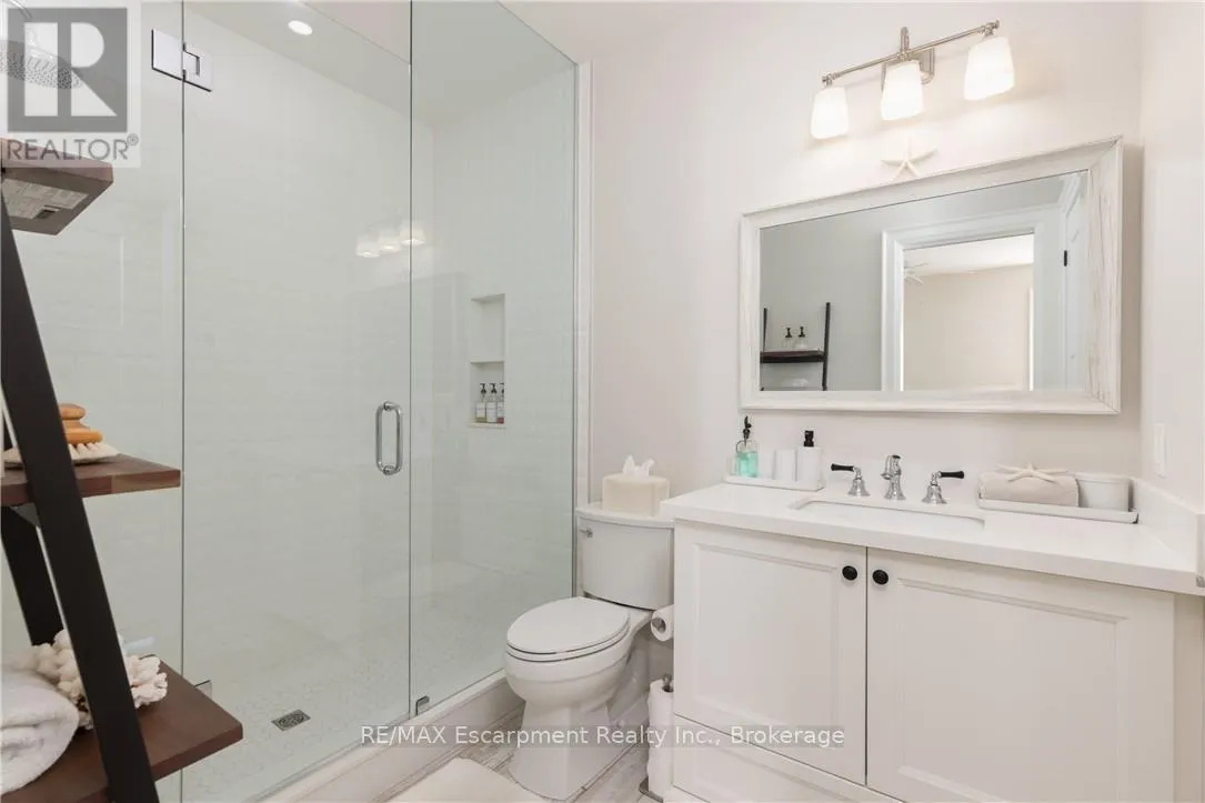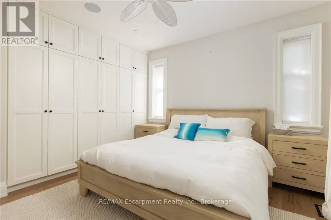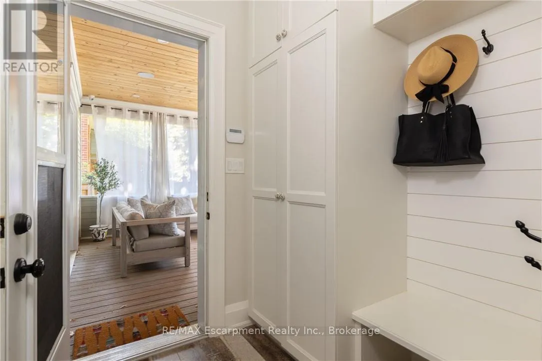 Cross Streets: DRURY LANE & COURTLAND DR. ** Directions: DRURY LANE TO COURTLAND DR. CUSTOM RENOVATION BUNGALOW. This exceptional residence is the perfect blend of modern luxury, thoughtful design, and everyday comfort. The open-concept main floor is bathed in natural light, showcasing high ceilings, wide-plank hardwood floors, and refined designer finishes throughout. The Great Room focal point is the gas fireplace and detailed surround open to the dining room area for easy entertaining. The chefs kitchen is a true showpiece, featuring quartz countertops, a 6-burner gas range, premium stainless-steel appliances, and a cleverly concealed walk-in pantry a seamless balance of beauty and function. The primary suite is a private retreat with a custom PAX closet system and a spa-inspired 3-piece semi-ensuite complete with a glass shower and heated floors. A second bedroom can also be used as a main floor office. From either the primary bedroom or the mudroom, step outside to a 400 sq. ft. covered porch where a fireplace and built-in TV space create a 3 season indoor-outdoor haven. The lower level offers an expansive extension of living space with a welcoming family/games room, a 4-piece bathroom, gym area, laundry room, and two additional bedrooms perfect for guests, hobbies, or a growing family. Outdoors, the fully fenced and landscaped backyard sets the stage for effortless entertaining and relaxation. Additional highlights include 9 ft. ceilings, hardwood flooring throughout, a heated detached double-car garage with easy access to attic storage, and a whole-home integrated security system with cameras and sound system. Every detail has been carefully curated in this exquisitely designed home, offering a move-in-ready lifestyle with upgrades too numerous to list. This is a property you'll want to experience firsthand. Located a short stroll to shops and restaurants of downtown Burlington and close proximity to highway access. (id:27476)