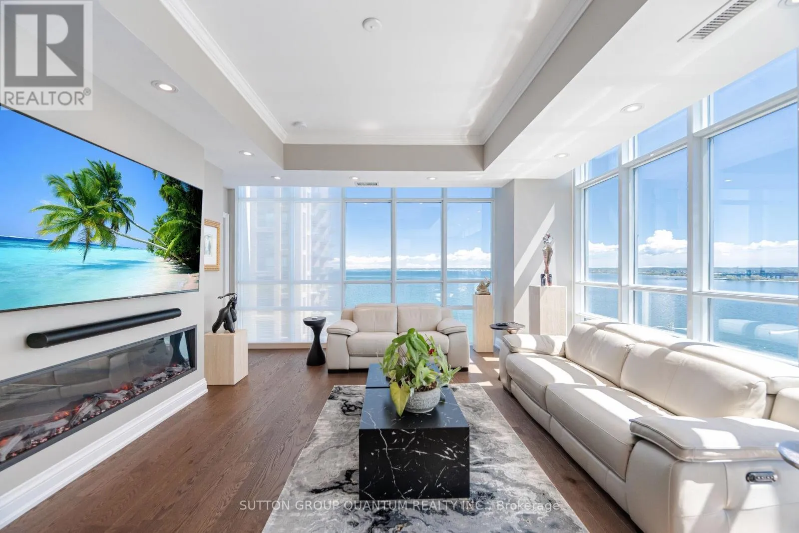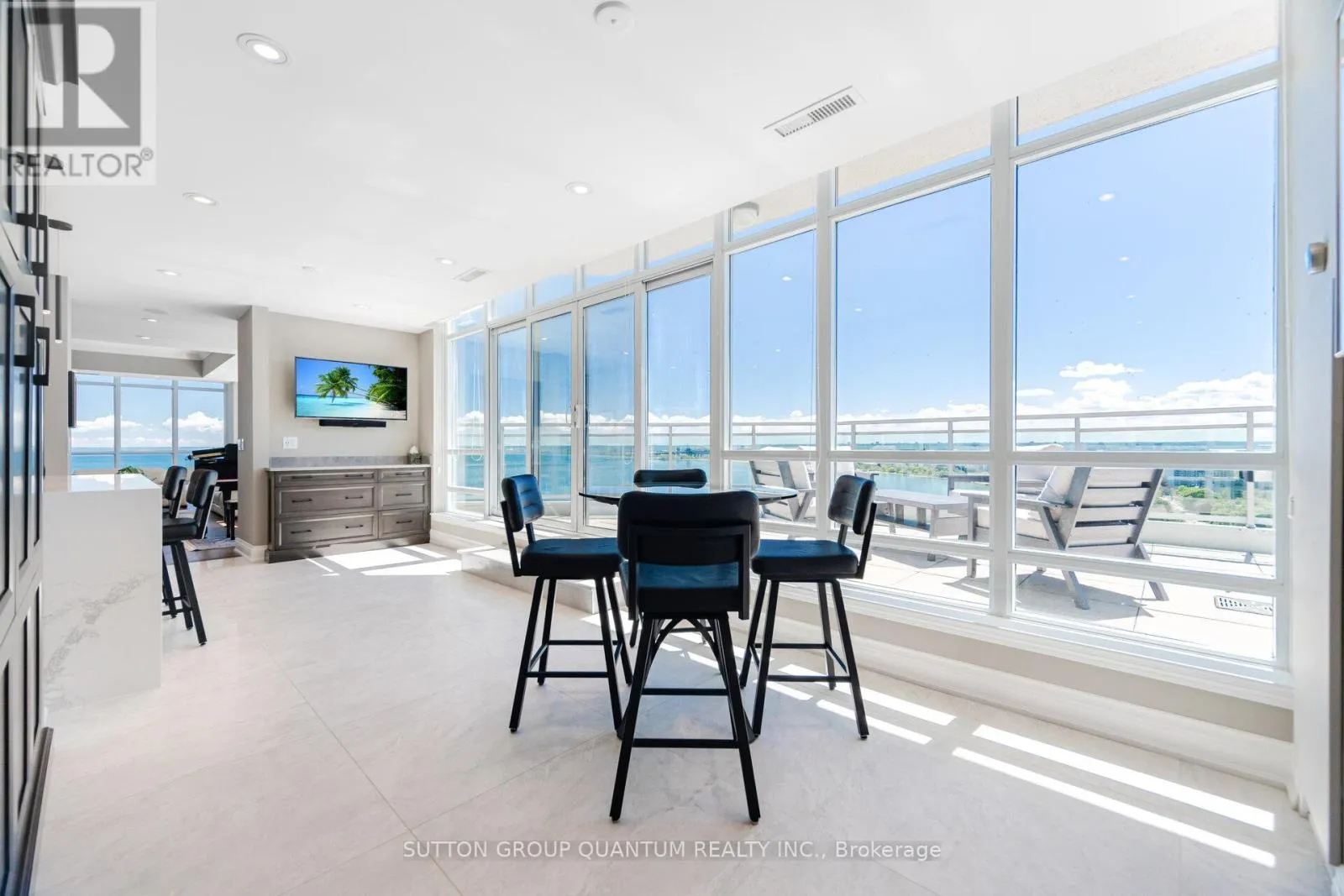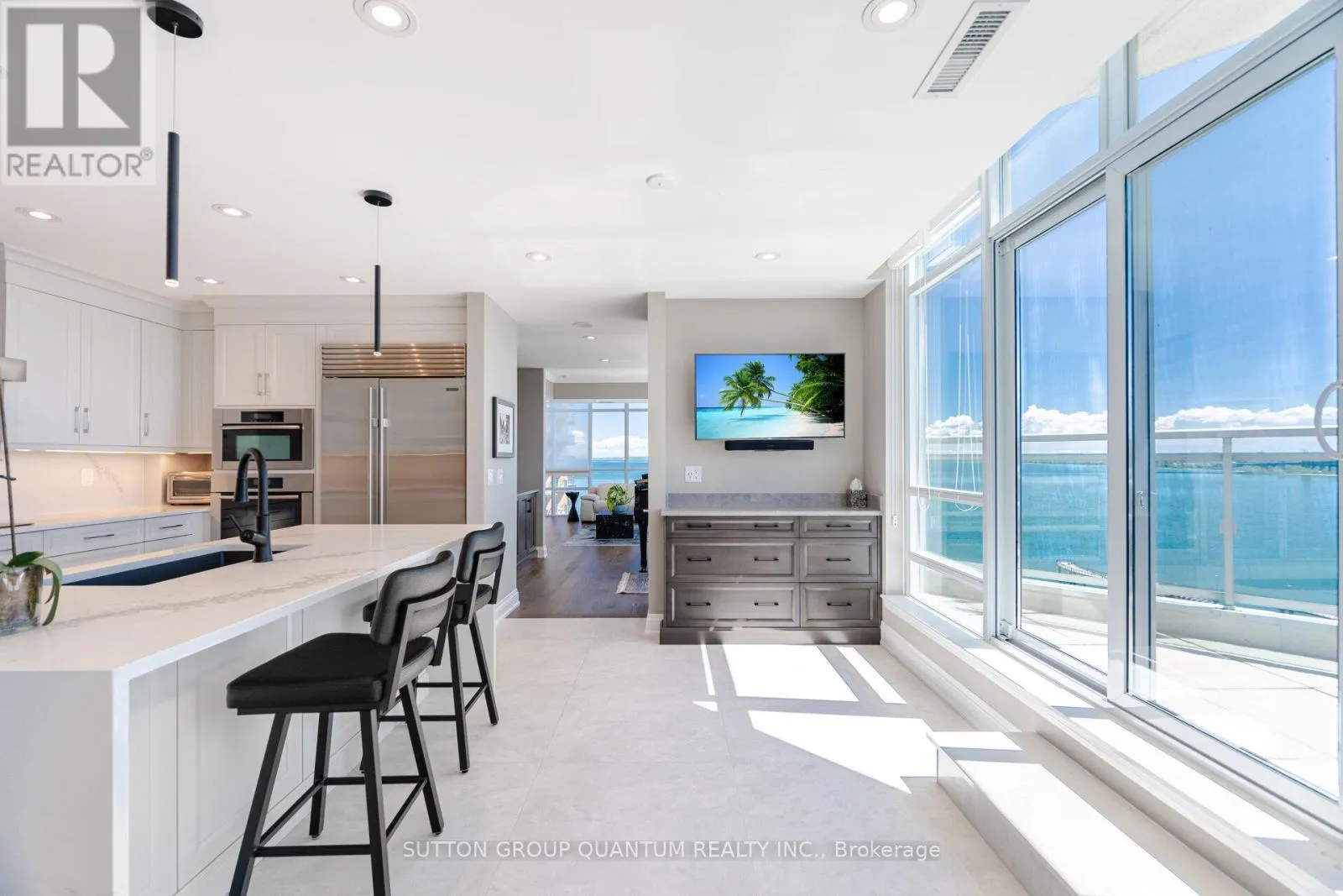 Pearl St/Lakeshore Rd Welcome to "360 on Pearl" a Spectacular condominium Residence, where Luxury meets Waterfront tranquility in Downtown Burlington. This is a stunning, completely renovated, 3 bedroom Penthouse condominium which features over 2400 sq ft of exquisite living space and walk out to a magnificent 500 sqft private terrace (incl Gas & Water), where you can enjoy private BBQs with friends and family with unobstructed views if the Lake or a romantic night on the terrace taking in breathtaking sunsets. This unit offers 3 spacious bedrooms, one has been converted into a beautiful functional office with custom built-ins, with views of the water and a walkout to your oversized terrace. Almost all principle rooms enjoy an unobstructed view of Lake Ontario, the Niagara Escarpment and the Beautiful Town of Burlington. This Designer unit offers high ceilings, floor to ceiling windows, a bright modern style, Crestron lighting system, Modern LED pot lights, Large linear Electric Fireplace, beautiful wood floors throughout , complimented by the large 32" white porcelain tile in the Custom Gourmet kitchen with custom cabinetry, Quartz counter tops, Built-in Sub Zero fridge/freezer, Wolf Induction cooktop (gas available), Miele dishwasher, Miele convection microwave, Miele Oven, Miele warming tray, Built in Sub Zero Wine fridge with 103 botte capacity, Hunter Douglas Motorized Duette Duolite Blinds and more. This is one of only 2 Penthouse apartments with an oversized terrace overlooking the Lake in Burlington. "360 on Pearl" is a unique and highly sought after building, offering a luxurious lifestyle on the Lakefront.....enjoy picturesque parks, vibrant downtown amenities, fine dining, shopping and cultural attractions. (id:27476)