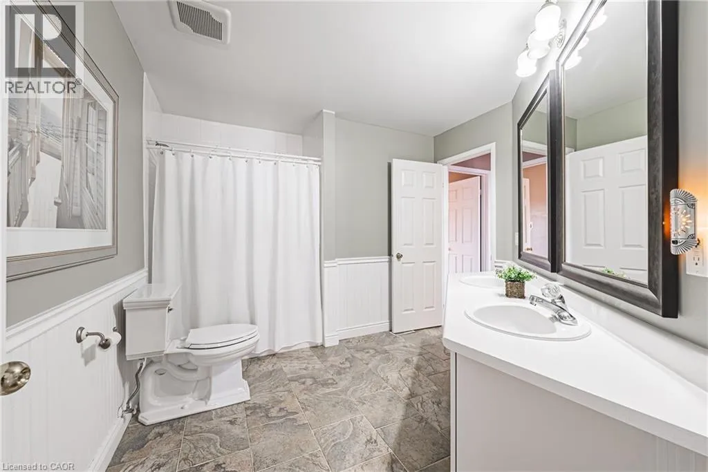 West on New Street, North on Woodview Welcome to 3333 New Street # 9 in the prestigious Roseland Green complex. This immaculately maintained 2562 square foot unit with a double car garage has 3 oversized bedrooms, 4 bathrooms, hardwood floors and vaulted ceilings. The main floor is super spacious and open concept. There is a separate dining room and living room, perfect for entertaining or hosting family meals. The bonus sitting room makes the main floor feel open and inviting. The spacious eat-in kitchen has tons of cabinetry and counter space, and newer stainless steel appliances. The living room has a gas fireplace and glass door that opens to a private garden and patio. The second floor has 3 ginormous bedrooms, main bathroom with double vanity, and a lovely & modern primary suite. This unique primary features a huge walk-in closet and updated 4-piece ensuite bathroom with enough space to add a soaker tub. The massive basement features a full wet bar, recreation room and extra 3-piece bathroom, giving this unit over 3500 square feet of finished living space! Tons of closet space throughout, main floor laundry, inside entry to the garage, updated roof & windows and the list goes on. The location is ideal - you can walk to Marilu's market, the lake, bike path, schools, green space, downtown core & only a few minutes to all major highways and GO stations. This home is perfect for down-sizers or first time home buyers. LET'S GET MOVING!⢠(id:27476)