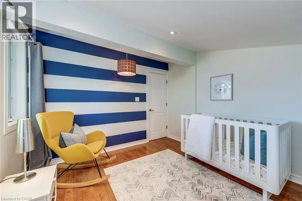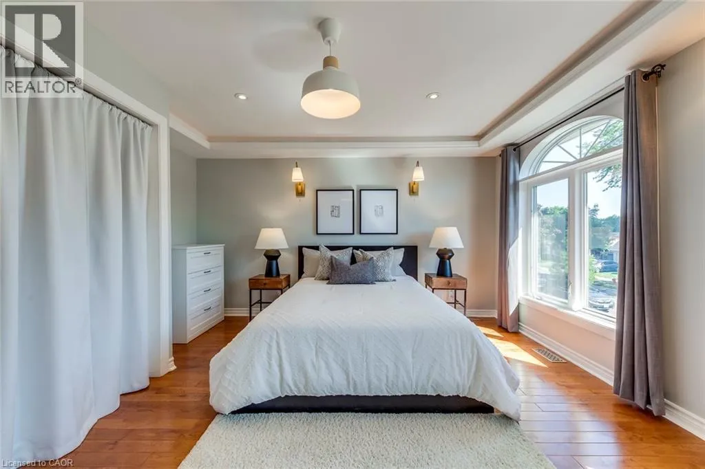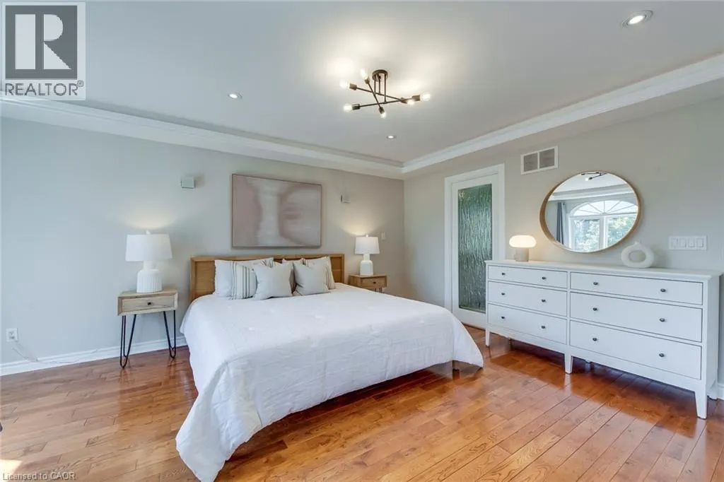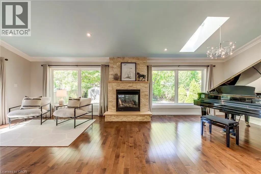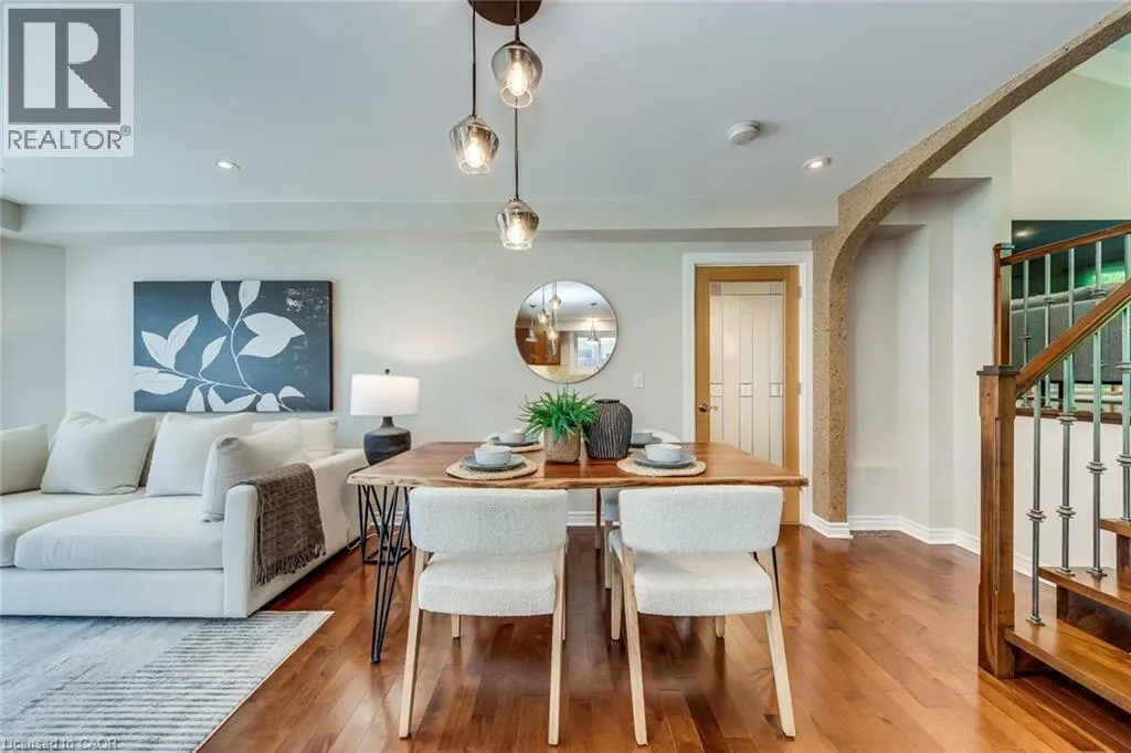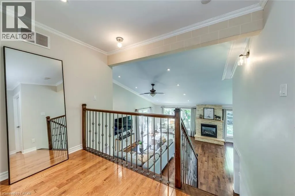 Pinedale to Mullin to Cindy This spacious 3+1 bedroom, 4-bathroom custom-built home sits on a quiet street in Burlingtonâs sought-after Pinedale, just minutes from parks, schools, shopping, and major highways. Offering nearly 2,680 sqft above grade plus a fully finished basement, itâs ideal for growing families. The modern stucco exterior with large windows adds striking curb appeal. Inside, the main floor features an open-concept layout with a bright living room and a large eat-in kitchen showcasing hardwood cabinetry, a generous island, stone counters, and premium stainless steel appliances. The upgraded laundry/mud room provides access to both the garage and backyard. A raised second level impresses with soaring cathedral ceilings, massive windows, and a versatile family/dining space. An elegant open-riser staircase leads to the third floor with a luxurious primary suite offering wall-to-wall custom closets, oversized windows, and a spa-like ensuite with glass shower. Two additional bedrooms share a renovated 4-piece bath. The finished basement boasts above-grade windows, a spacious rec room with wet bar, a fourth bedroom, and full bath. Outdoors, the backyard offers space to relax or entertain amid mature trees and established landscaping. The location is unmatchedâ15 minutes on foot to Fortinos, Shoppers, and Appleby Plaza restaurants; five playgrounds within walking distance; and easy access to Centennial Bikeway, downtown Burlington, the lakefront, Burloak Waterfront Park, and GO transit. Just a short drive to RioCan Centre with shops, restaurants, cinema, and a soon-to-open Costco. Recent upgrades include front and back decks stained (2025), interlock patio (2025), fridge (2024), washer (2022), and microwave (2022). (id:27476)