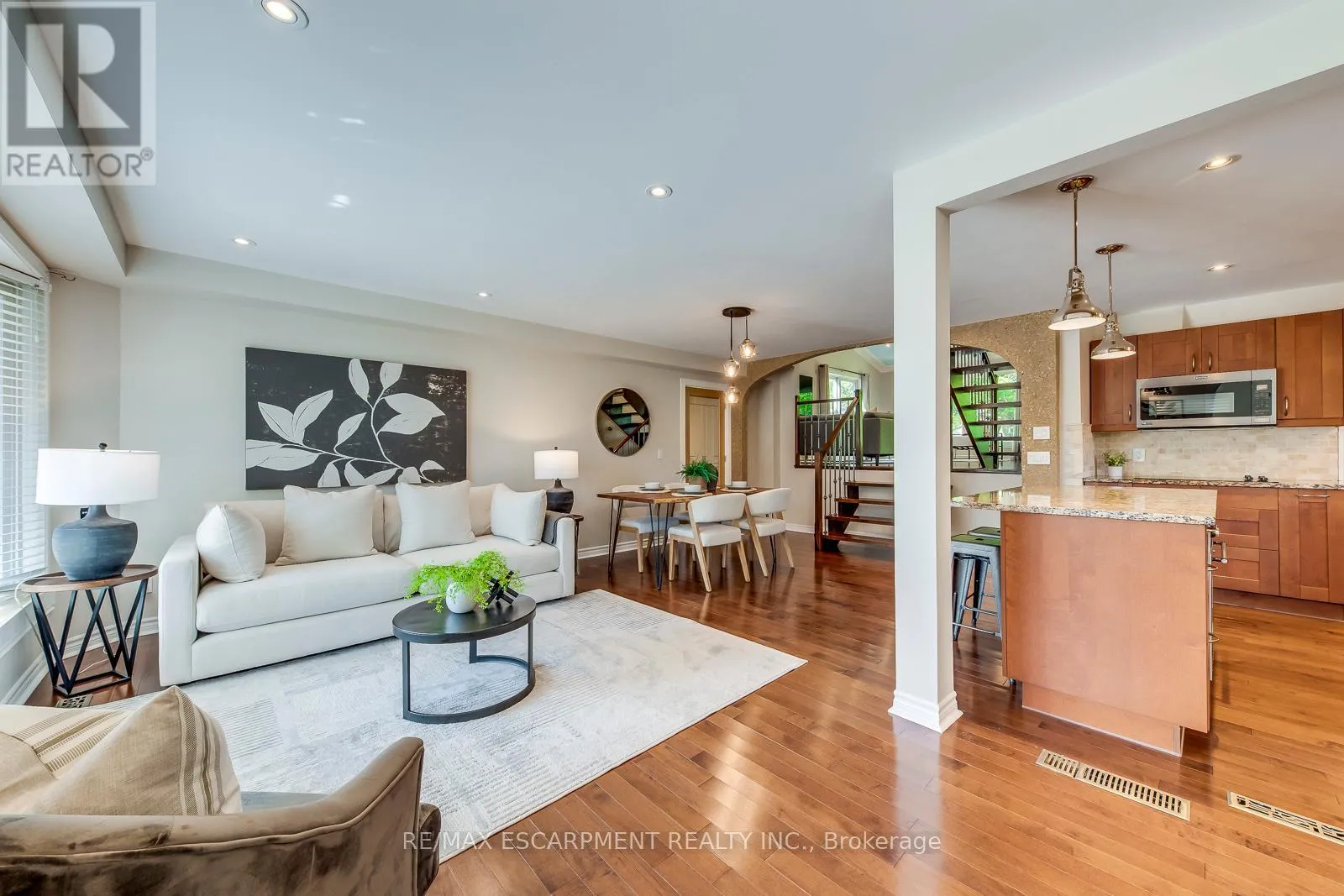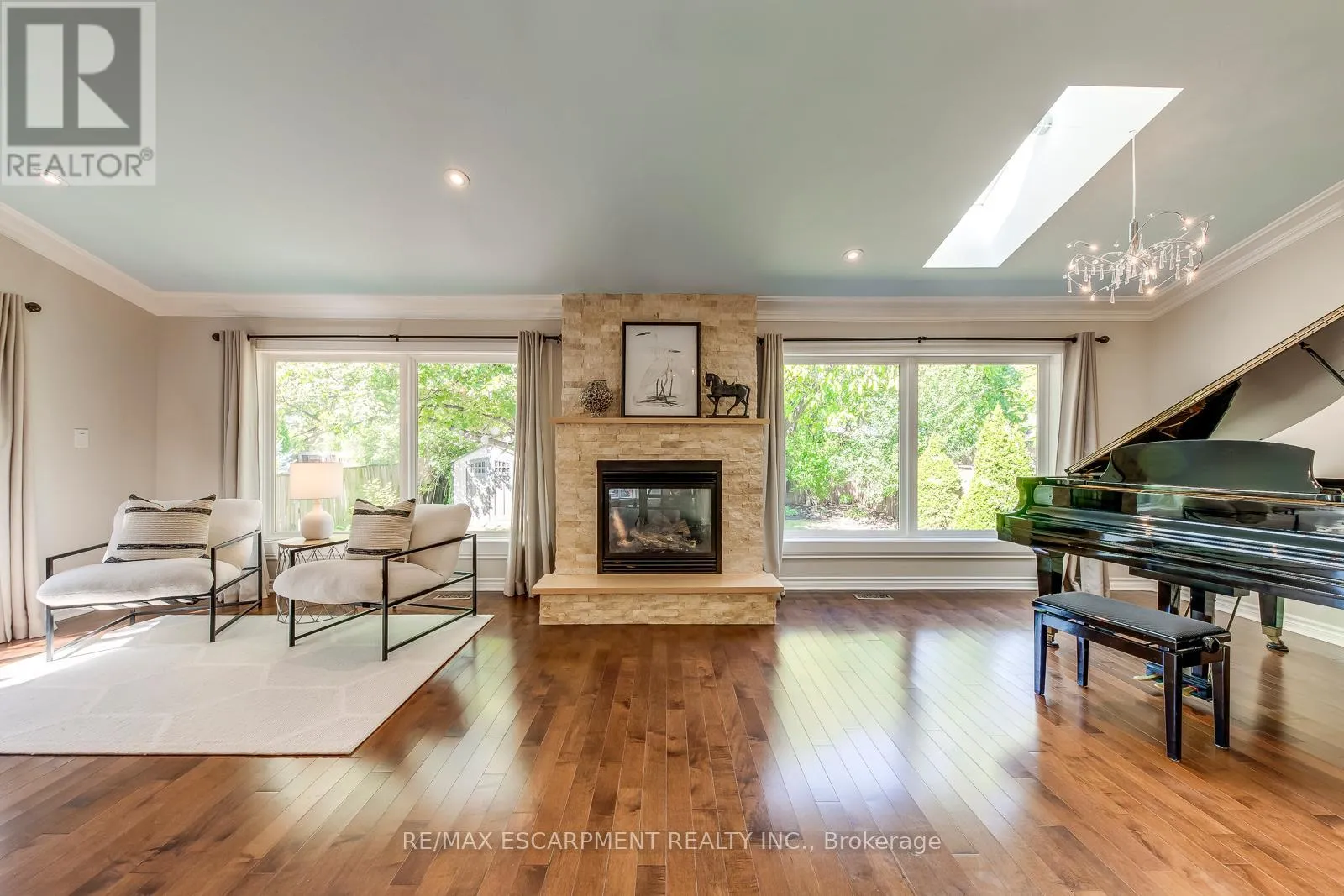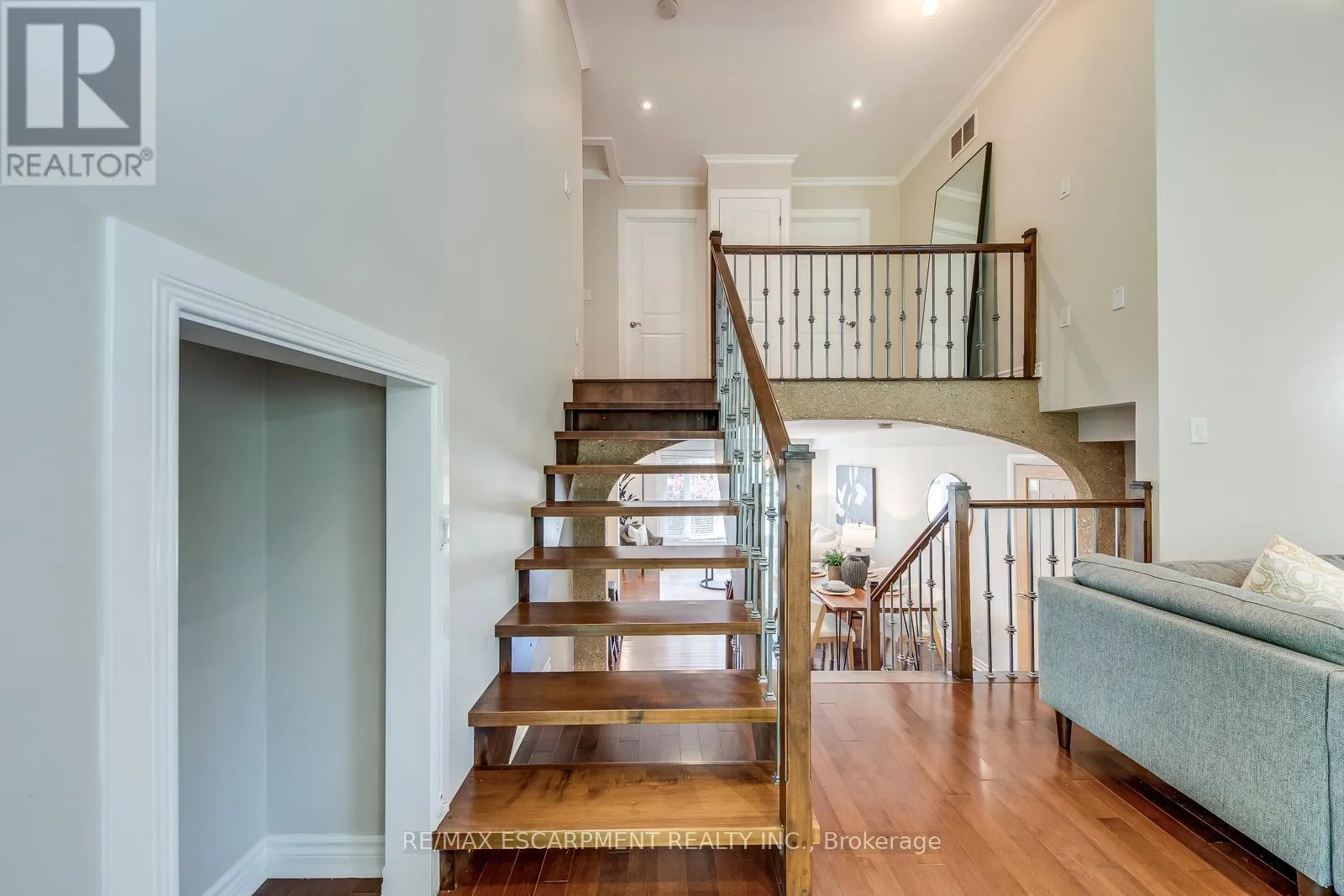 Pinedale to Mullin to Cindy This spacious 3+1 bedroom, 4-bathroom custom-built home sits on a quiet street in Burlingtons sought-after Pinedale, just minutes from parks, schools, shopping, and major highways. Offering nearly 2,680 sqft above grade plus a fully finished basement, its ideal for growing families. The modern stucco exterior with large windows adds striking curb appeal.Inside, the main floor features an open-concept layout with a bright living room and a large eat-in kitchen showcasing hardwood cabinetry, a generous island, stone counters, and premium stainless steel appliances. The upgraded laundry/mud room provides access to both the garage and backyard. A raised second level impresses with soaring cathedral ceilings, massive windows, and a versatile family/dining space. An elegant open-riser staircase leads to the third floor with a luxurious primary suite offering wall-to-wall custom closets, oversized windows, and a spa-like ensuite with glass shower. Two additional bedrooms share a renovated 4-piece bath. The finished basement boasts above-grade windows, a spacious rec room with wet bar, a fourth bedroom, and full bath. Outdoors, the backyard offers space to relax or entertain amid mature trees and established landscaping. The location is unmatched15 minutes on foot to Fortinos, Shoppers, and Appleby Plaza restaurants; five playgrounds within walking distance; and easy access to Centennial Bikeway, downtown Burlington, the lakefront, Burloak Waterfront Park, and GO transit. Just a short drive to RioCan Centre with shops, restaurants, cinema, and a soon-to-open Costco. Recent upgrades include front and back decks stained (2025), interlock patio (2025), fridge (2024), washer (2022), and microwave (2022). (id:27476)