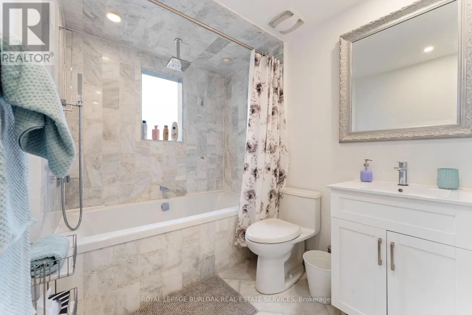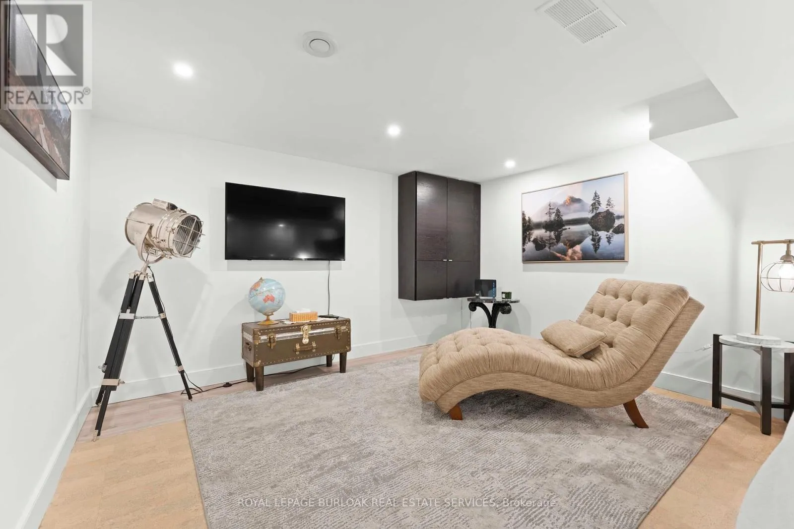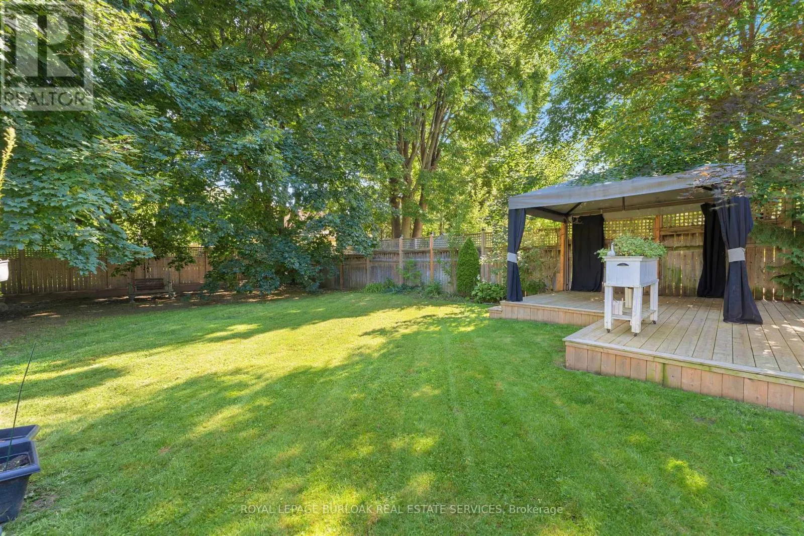 Cross Streets: Regina Dr and Lockhart Rd. ** Directions: Maple Ave to Lockhart Rd to Regina Dr. Walk to the lake! This beautifully renovated home sits on an oversized 150-ft deep, private lot with lush perennial gardens and an interlock patio leading to the front door. Inside, the open-concept main floor features large windows, a stunning gas fireplace, and a custom kitchen with top-of-the-line Viking appliances, including a gas stove, dual-door fridge, panelled dishwasher, and built-in microwave. Patio doors off the dining room open to your private backyard retreat, complete with a custom wood deck and spacious lawn surrounded by mature trees. Upstairs, you'll find two generous bedrooms and a fully renovated 4-piece bath. The finished basement, with its own entrance, kitchen space, open layout, and laundry, adds incredible versatility. All this within walking distance to Spencer Smith Park, Brant Street's boutique shops and restaurants, and just minutes to the QEW, Mapleview Mall, and everyday conveniences. (id:27476)