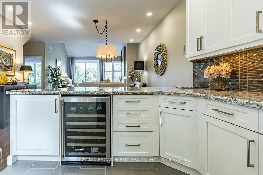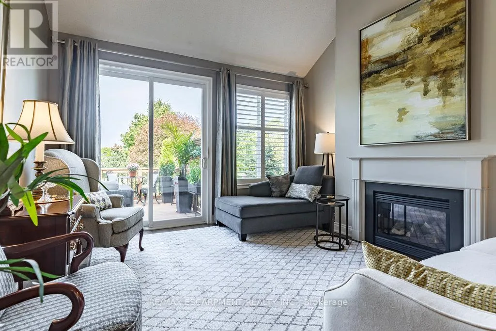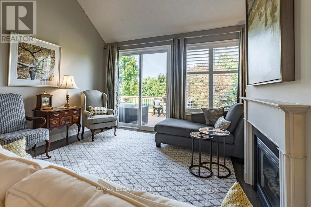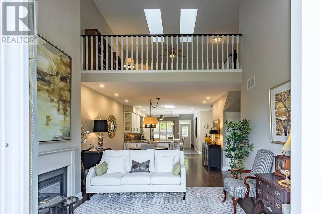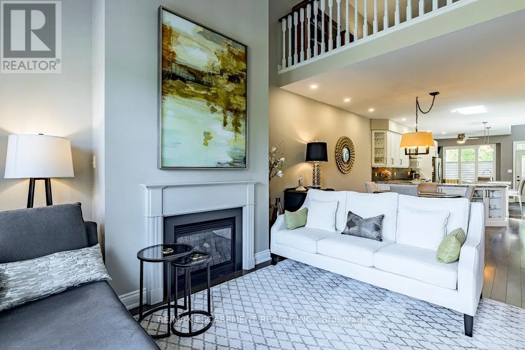 Cross Streets: Berwick Dr. ** Directions: Berwick Dr/Sarazen Dr. Absolutely stunning executive bungaloft in sought-after complex backing on to the 10th fairway of Millcroft Golf Club! 2,281 sq.ft. of beautifully updated open concept living space filled with natural light. Updated eat-in kitchen with stainless steel appliances (including gas stove and wine fridge), island, quartz countertops and glass subway tile backsplash. Spacious living/dining with vaulted ceiling, gas fireplace and walkout to private deck and patio with gas BBQ hookup and stunning golf course setting. Main level primary bedroom with a gorgeous spa-inspired 4-piece ensuite and walk-in closet. Upper level features a large loft/family room, a second bedroom and a 4-piece bathroom. Additional features and high-end finishes include 9' ceilings on the main level, hardwood floors, California shutters, pot lighting, skylights and updated furnace (2024)! Double drive and double garage with inside entry to main level laundry/mudroom. 2 bedrooms and 2.5 bathrooms. (id:27476)