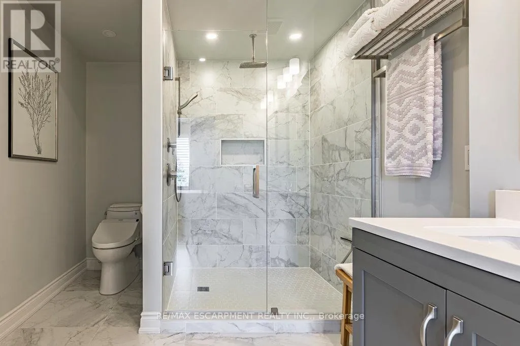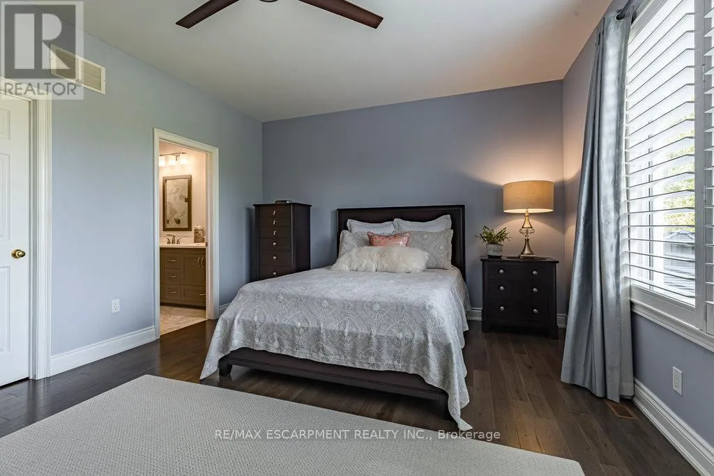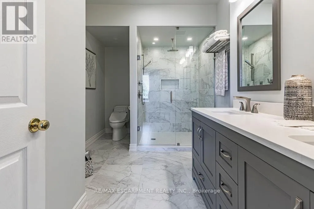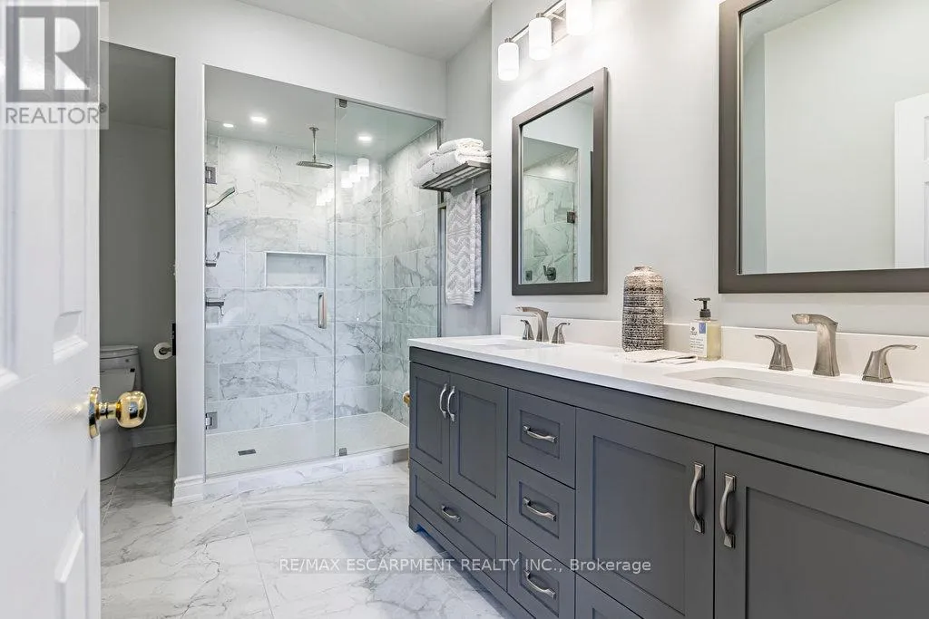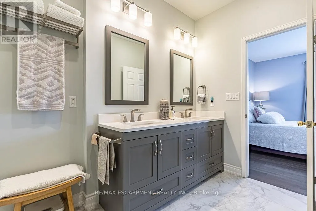 Cross Streets: Berwick Dr. ** Directions: Berwick Dr/Sarazen Dr. Absolutely stunning executive bungaloft in sought-after complex backing on to the 10th fairway of Millcroft Golf Club! 2,281 sq.ft. of beautifully updated open concept living space filled with natural light. Updated eat-in kitchen with stainless steel appliances (including gas stove and wine fridge), island, quartz countertops and glass subway tile backsplash. Spacious living/dining with vaulted ceiling, gas fireplace and walkout to private deck and patio with gas BBQ hookup and stunning golf course setting. Main level primary bedroom with a gorgeous spa-inspired 4-piece ensuite and walk-in closet. Upper level features a large loft/family room, a second bedroom and a 4-piece bathroom. Additional features and high-end finishes include 9' ceilings on the main level, hardwood floors, California shutters, pot lighting, skylights and updated furnace (2024)! Double drive and double garage with inside entry to main level laundry/mudroom. 2 bedrooms and 2.5 bathrooms. (id:27476)