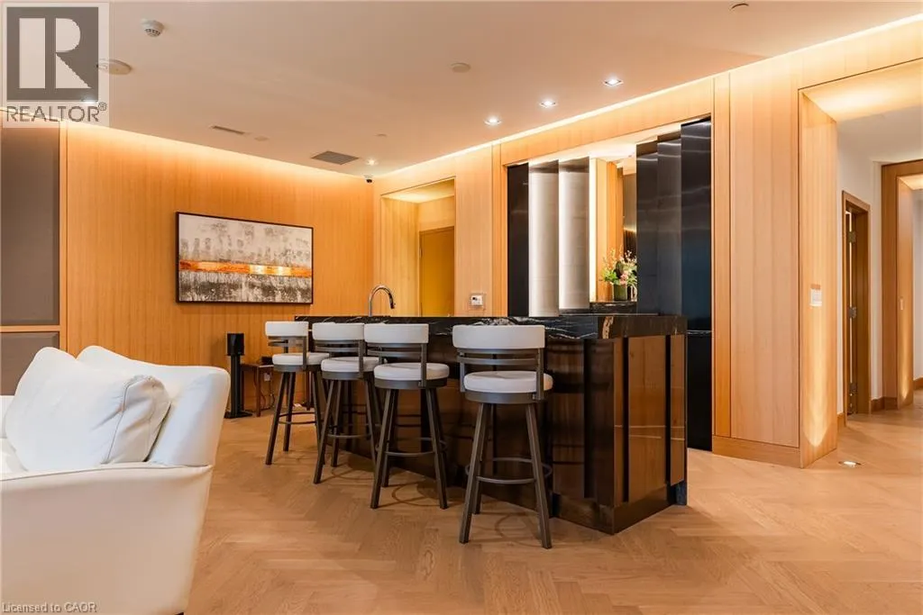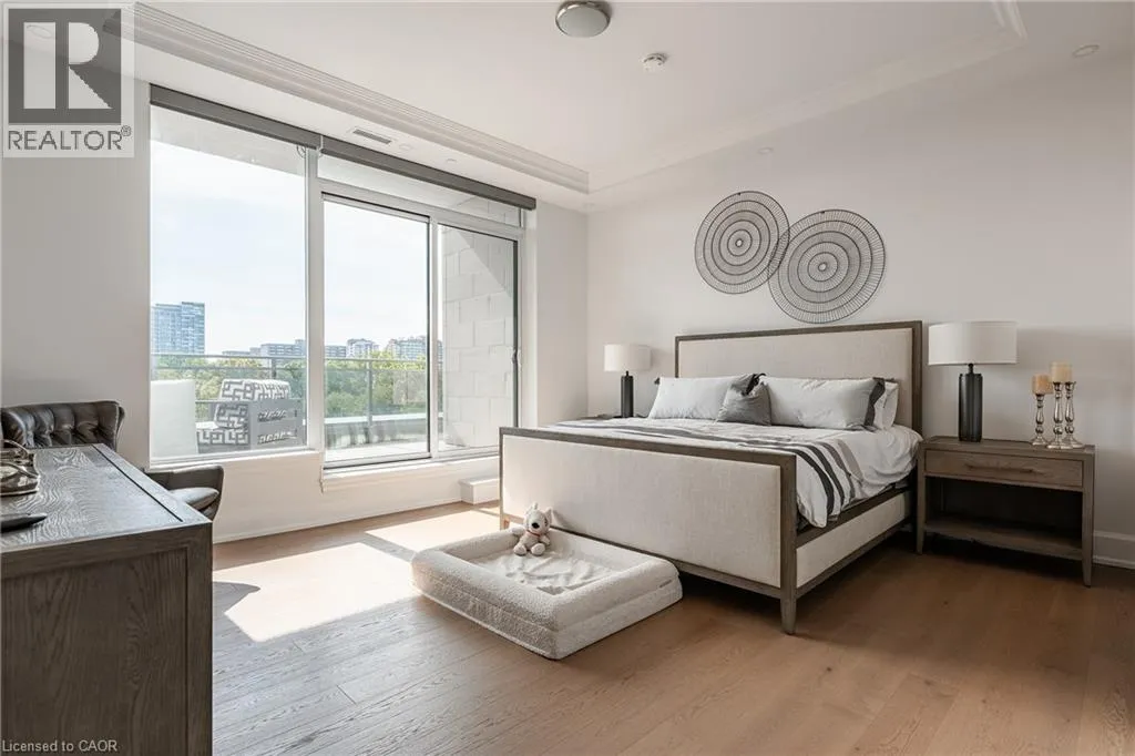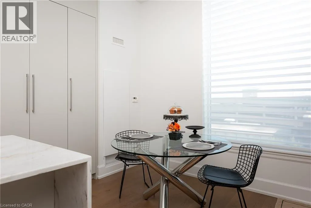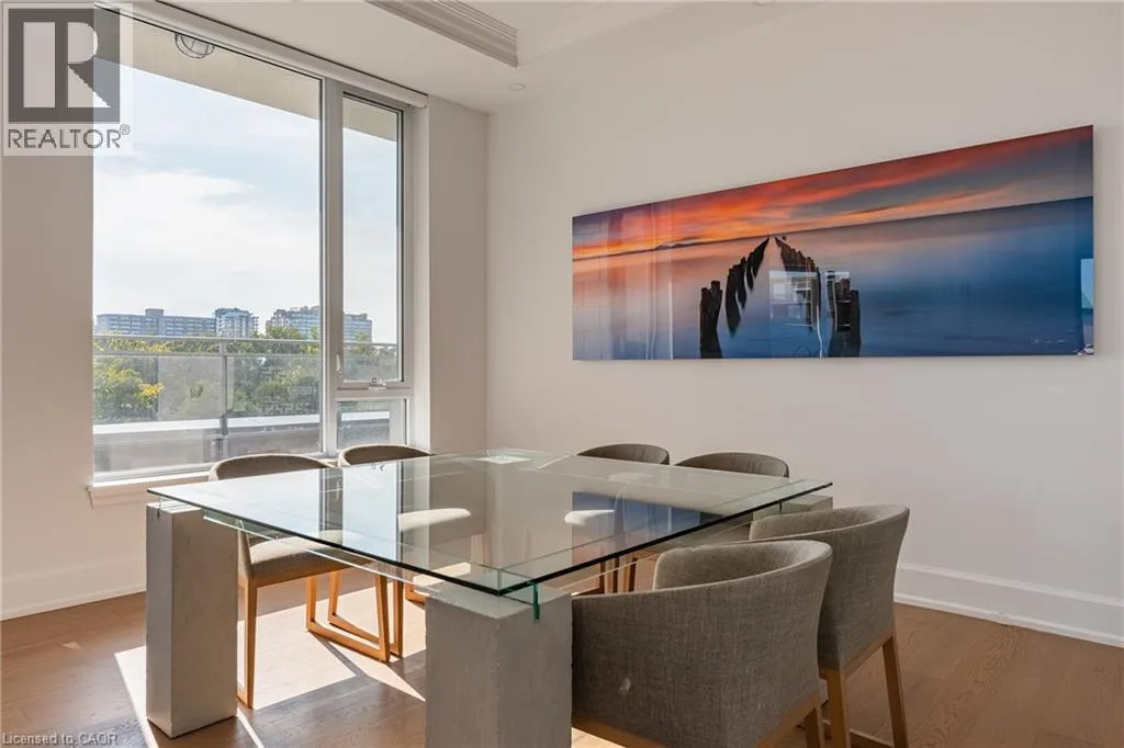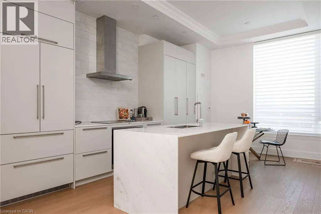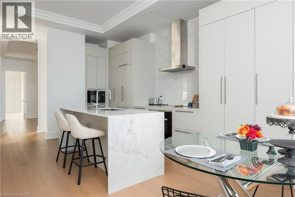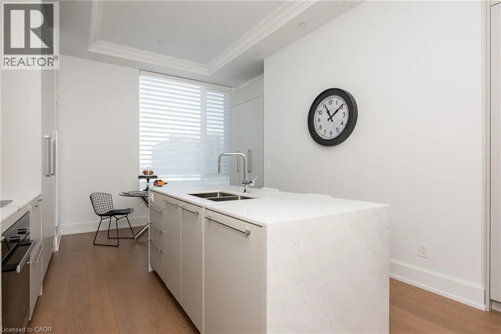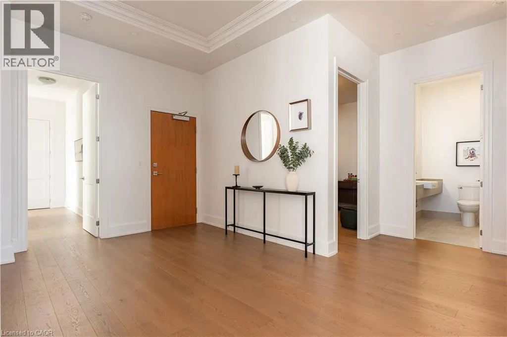 Lakeshore/Locust/Elgin Spanning an impressive 2,554 square feet, this penthouse at the prestigious Saxony offers the ultimate in refined condominium living. Designed with both scale and sophistication, the suite showcases 10-foot ceilings, expansive principal rooms, and a versatile 2+1 bedroom layout, with the den being large enough to be a third bedroom. The great room spans nearly 28 feet, seamlessly connecting to a generous 300 sq. ft. balcony where southwest exposure frames vibrant sunsets and city views. A double-sided fireplace and open dining space create an elegant yet flexible floor planâideal for entertaining! The kitchen, anchored by premium integrated appliances and generous prep surfaces, flows naturally into both dining and living areas. Custom closets and automated blinds underscore the thoughtful upgrades throughout. The primary suite impresses with a walk-in closet and a spa-inspired ensuite, while the second bedroom and den offer equal comfort for family or guests. This residence is complemented by three oversized parking spaces, including an EV charger, along with a large private storage locker. Exclusive building amenitiesâfitness studio, rooftop lounge, and concierge servicesâfurther elevate the experience. Positioned steps from the lake, the Burlington Performing Arts Centre, and the cityâs best shops and restaurants, this penthouse combines the privacy of a home with the convenience of downtown living. (id:27476)