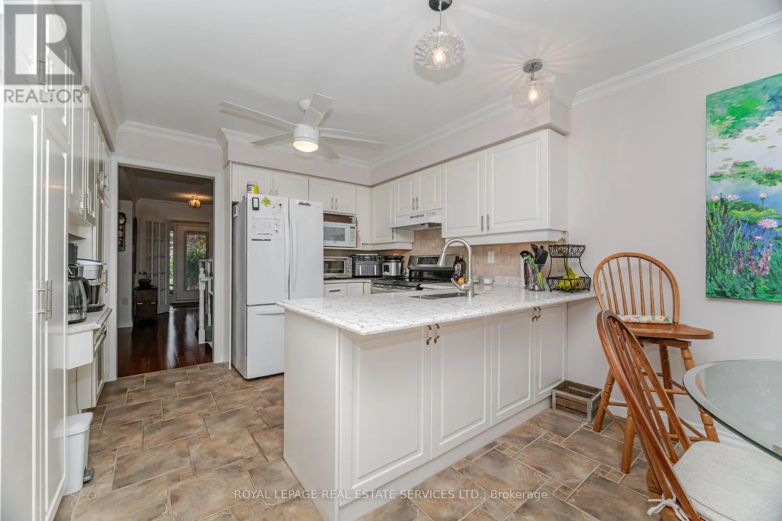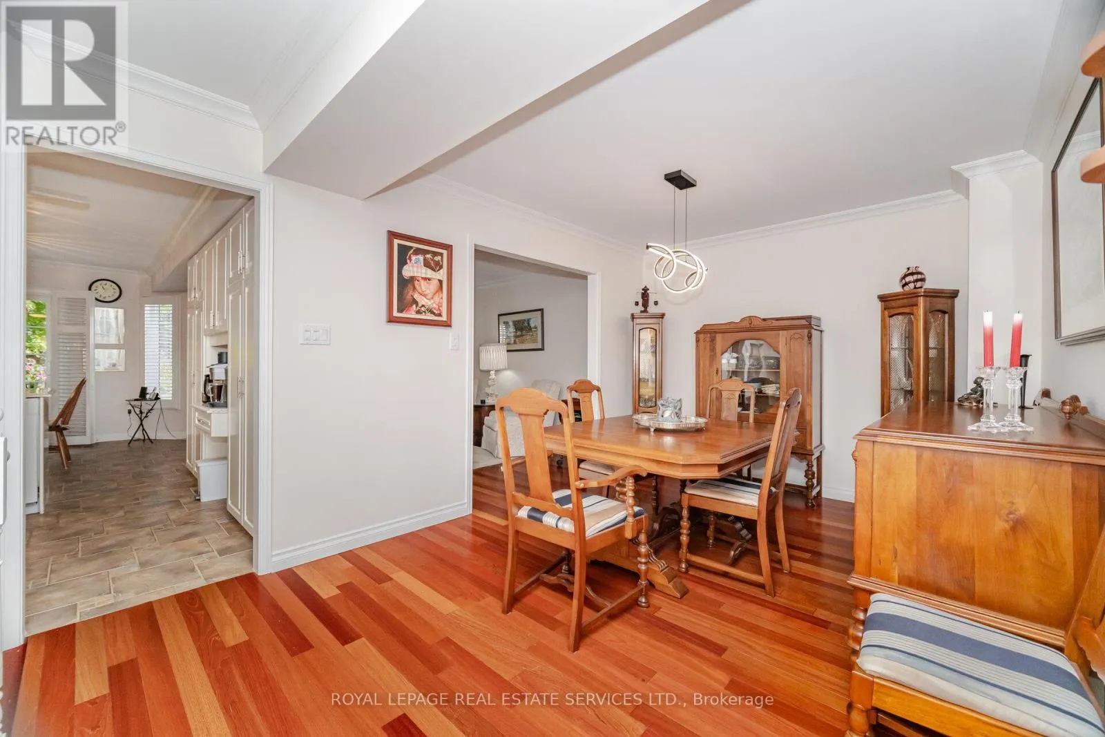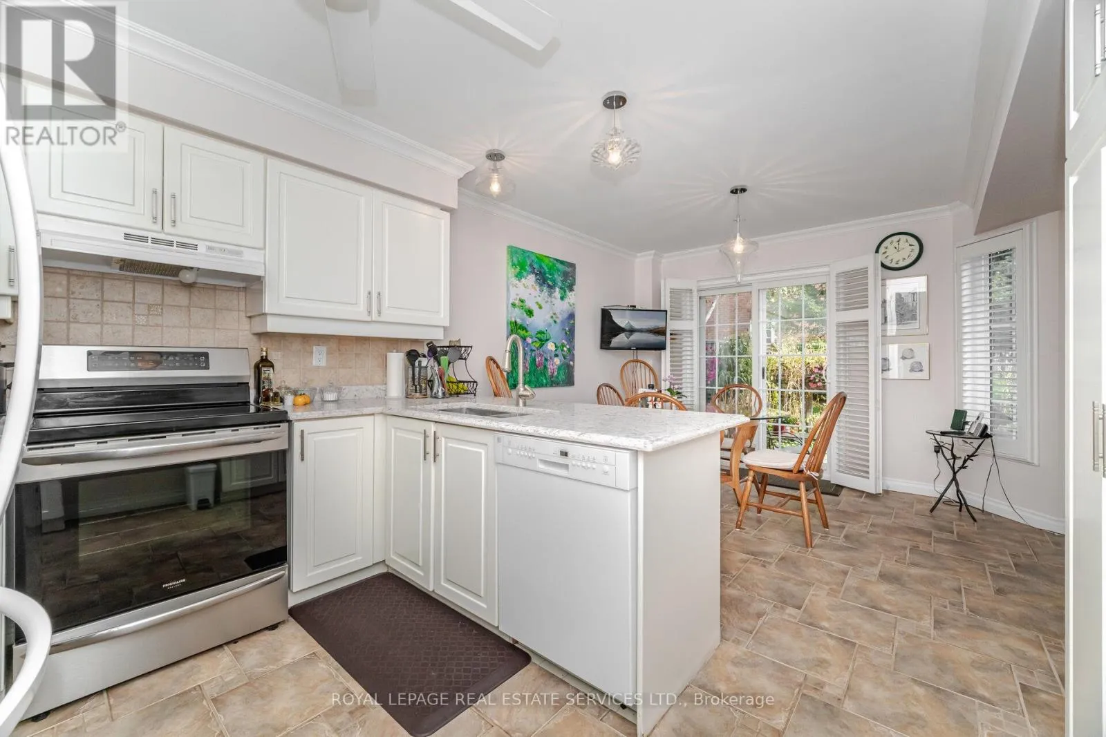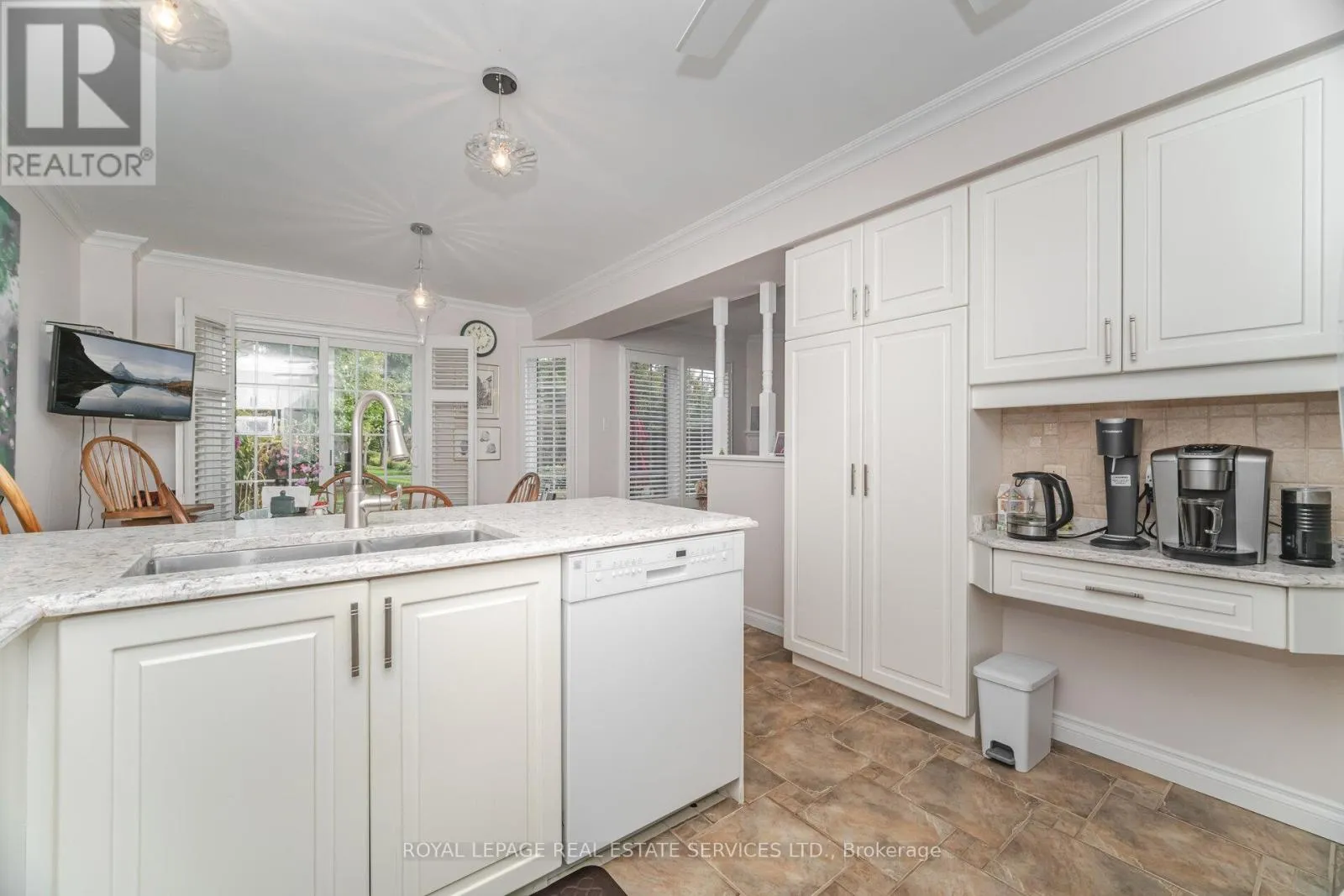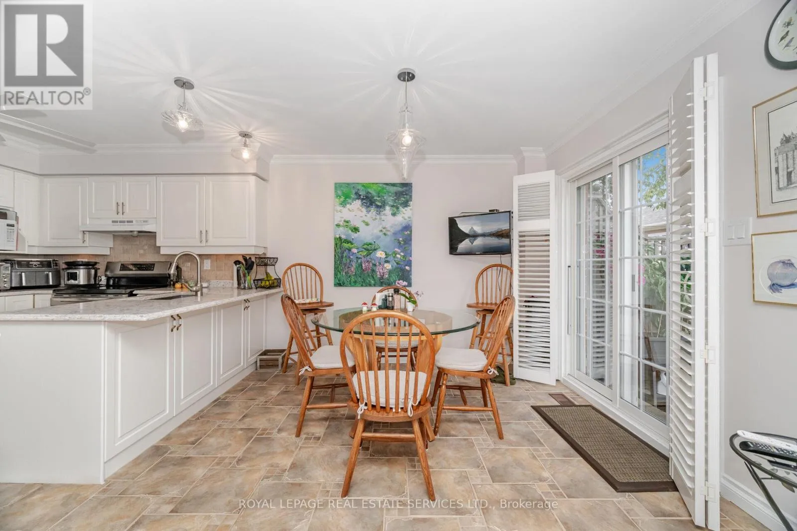 Country Club & Millcroft Park Dr Set in the coveted Millcroft community and surrounded by the manicured fairways of the renowned Millcroft Golf Club, this executive townhome blends elegance, comfort, and everyday convenience. Walk to the golf course, or enjoy being just minutes from shopping, dining, and major highways making this one of Burlington's most desirable locations. Inside, the inviting living room is anchored by a cozy gas fireplace and flows effortlessly into the formal dining area perfect for entertaining or relaxed family gatherings. The spacious eat-in kitchen is highlighted by quartz countertops, updated cabinetry, and plenty of natural light. Additional features include gleaming hardwood floors, timeless California shutters, and a beautifully finished basement that extends your living space. The home also offers two fully updated bathrooms (2018), showcasing sleek quartz finishes and modern cabinetry. With its perfect balance of style, function, and location, this Millcroft townhome presents a rare opportunity to enjoy luxury living in one of Burlington's most prestigious enclaves. (id:27476)