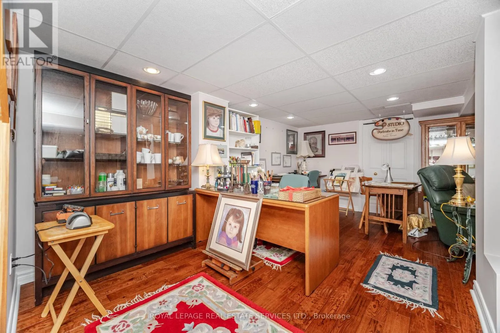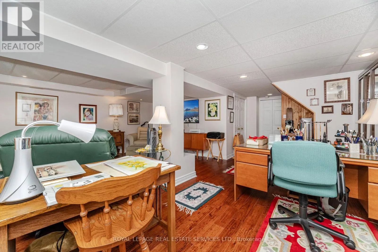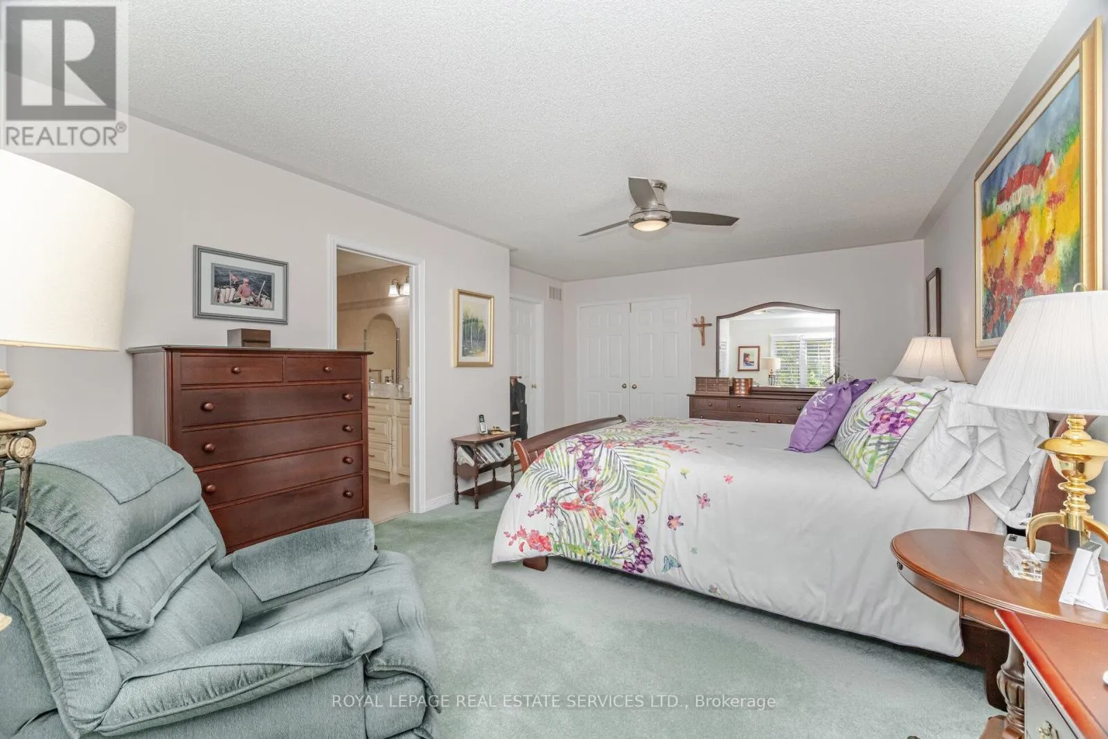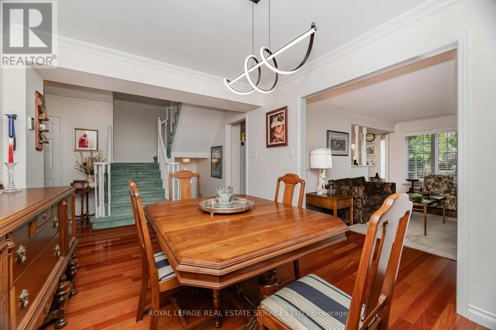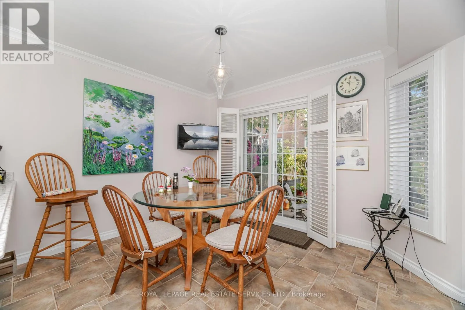 Country Club & Millcroft Park Dr Set in the coveted Millcroft community and surrounded by the manicured fairways of the renowned Millcroft Golf Club, this executive townhome blends elegance, comfort, and everyday convenience. Walk to the golf course, or enjoy being just minutes from shopping, dining, and major highways making this one of Burlington's most desirable locations. Inside, the inviting living room is anchored by a cozy gas fireplace and flows effortlessly into the formal dining area perfect for entertaining or relaxed family gatherings. The spacious eat-in kitchen is highlighted by quartz countertops, updated cabinetry, and plenty of natural light. Additional features include gleaming hardwood floors, timeless California shutters, and a beautifully finished basement that extends your living space. The home also offers two fully updated bathrooms (2018), showcasing sleek quartz finishes and modern cabinetry. With its perfect balance of style, function, and location, this Millcroft townhome presents a rare opportunity to enjoy luxury living in one of Burlington's most prestigious enclaves. (id:27476)