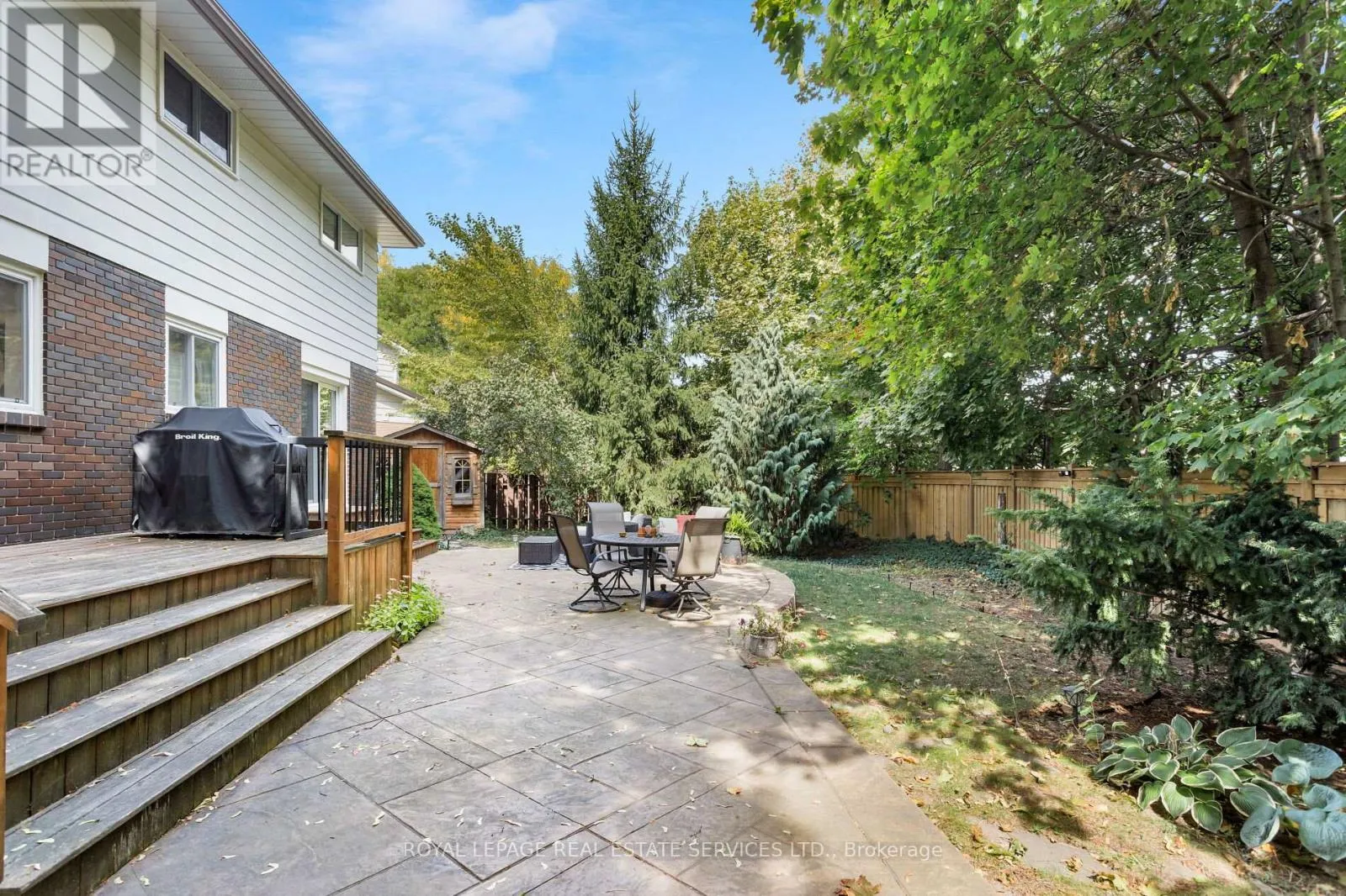 Cross Streets: Prospect - Perry Dr & Redfern Rd. ** Directions: Guelph Line- Prospect St- Perry Dr- Redfern Rd. Welcome to this beautifully updated/renovated 4-bedroom, 3-bathroom, 2-storey home nestled at the top of a quiet court on pie lot in Burlington's popular Brant community. Perfectly located in South-Central Burlington, this property offers a rare blend of tranquillity & conveniencejust steps from restaurants, shopping at Burlington Mall, Winners, & Canadian Tire, with Spencer Smith Park on Lake Ontario, downtown Burlington, major highways, & the GO Station only minutes away. Set on a mature pie-shaped lot, the home features lush, manicured gardens framed with armour stone, a shade tree, & a welcoming front veranda. The double driveway & attached garage with inside entry add everyday convenience. The private backyard is a true outdoor retreat, boasting a stamped concrete patio for entertaining, a water feature, a custom pergola with hot tub, & a charming garden shed, new back fence, all surrounded by mature trees for ultimate privacy. Inside, natural light floods the spacious layout, showcasing hardwood floors across two levels, custom wall accents & built-ins, deep baseboards, updated bathrooms & a refinished staircase. The bright living room with bay window flows into a formal dining room with walkout to the patio, while the updated eat-in kitchen features quartz counters, wood cabinetry, & a breakfast bar and coffee nook with access to the BBQ deck. Upstairs, youll find an updated 4-piece bathroom & 4 bedrooms with hardwood floors, including a primary suite with deluxe wall mouldings & dual closets. The finished lower level extends the living space with wide-plank laminate flooring, a family room with gas fireplace, a gym area, a 3-piece bath with a heated floor, & a large laundry/utility room with ample storage. New Furnace in 2024. Combining charm, style, & functionality in one of Burlingtons most convenient neighbourhoods, this home offers the perfect balance of modern upgrades & timeless comfort. (id:27476)